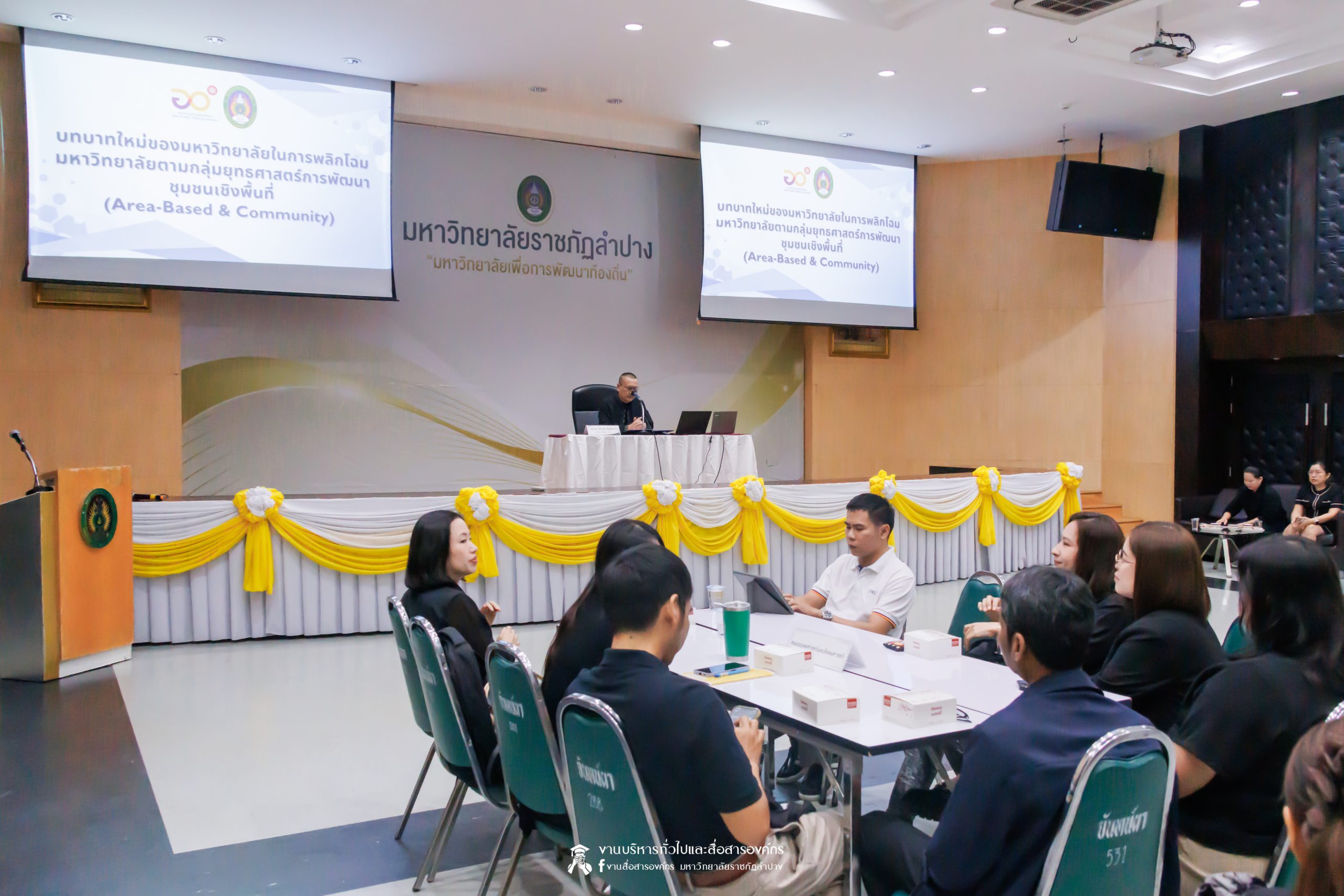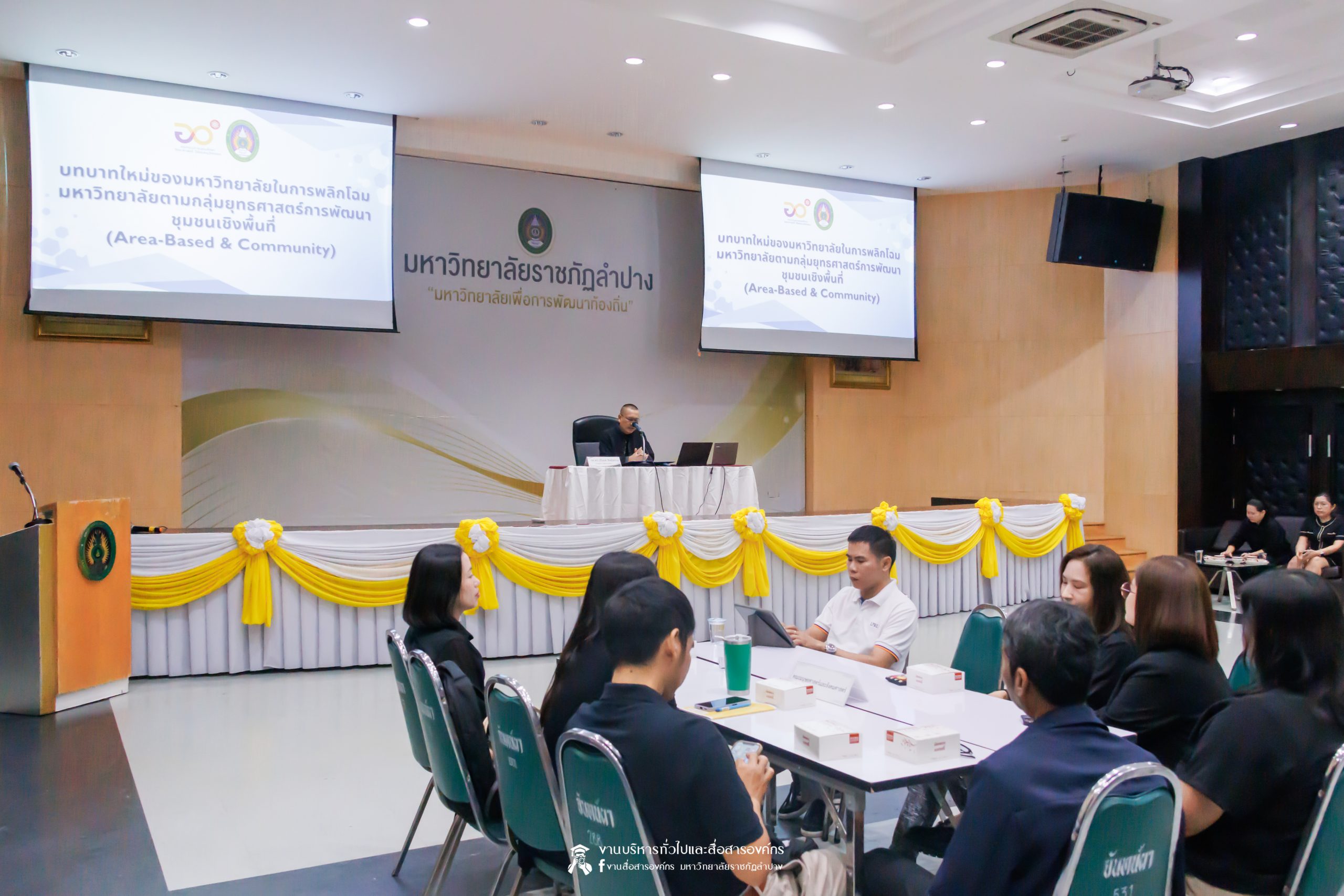 การอบรมในครั้งนี้ เพื่อพัฒนาศักยภาพของบุคลากรด้านการทำงานเชิงพื้นที่ พร้อมทั้งเป็นการพัฒนาความรู้ ทักษะ และความสามารถของบุคลากรให้สามารถทำงานตามภารกิจในพื้นที่ได้อย่างมีประสิทธิภาพ โดยมุ่งเน้นให้บุคลากรมีทักษะการบริหารจัดการ การทำงานร่วมกับผู้อื่นในพื้นที่ การประยุกต์ใช้องค์ความรู้ใหม่ๆ ในการแก้ไขปัญหา และการสร้างสรรค์นวัตกรรมที่ตอบสนองความต้องการของชุมชน ในฐานะบุคลากรของมหาวิทยาลัยกลุ่ม 3 โดยมี รศ.วิไลลักษณ์ พรมเสน รองอธิการบดีฝ่ายวิจัยและวิชาการต่างประเทศ เป็นวิทยากรบรรยายในหัวข้อ บทบาทของมหาวิทยาลัยราชภัฏลำปางกับการทำงานเชิงพื้นที่ และการจัดกลุ่ม Workshop หัวข้อ เครื่องมือ เทคนิค ชุดประสบการณ์การทำงานร่วมกับพื้นที่ อ.อัจฉริยา ครุธาโรจน์ ผู้ช่วยอธิการบดีด้านวิเทศสัมพันธ์ เป็นวิทยากร หัวข้อ TimeLine พัฒนาการจากวิทยาลัยครู สู่ มหาวิทยาลัยราชภัฏลำปาง กับแนวคิดการพัฒนาที่ยั่งยืน (SDGs) ซึ่งมีคณาจารย์เข้ารับการอบกรมกว่า 60 คน