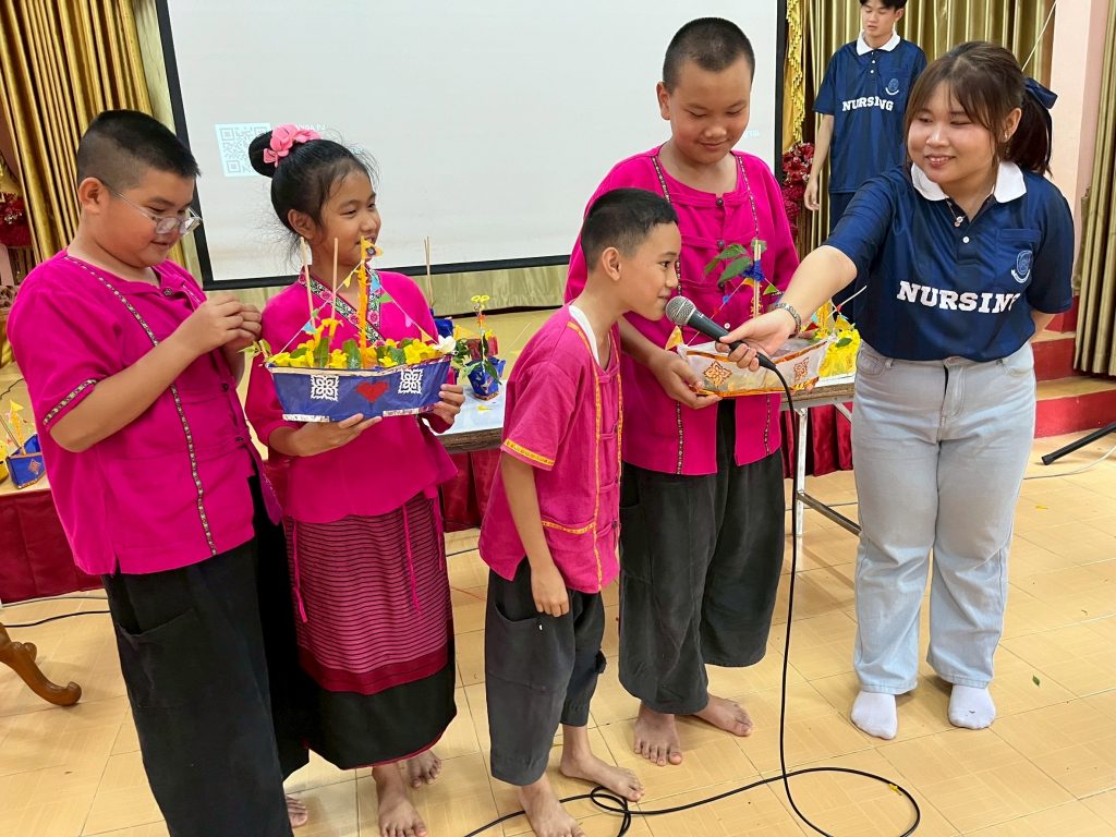 อ.ศศิธร คำมี พร้อมด้วย อ.วรรณ์วิการ์ ใจกล้า อาจารย์ประจำสาขาการพยาบาลเด็กและวัยรุ่น และนักศึกษาคณะพยาบาลศาสตร์ จัดกิจกรรม “สอนน้องประดิษฐ์สะเปาลอยน้ำ” เมื่อวันที่ 7 พฤศจิกายน 2568 ณ ห้องประชุมโรงเรียนวัดหลวงวิทยา อำเภอเมือง จังหวัดลำปาง โดยมี นายอิสระ วัจนะประดิษฐ์ ผู้อำนวยการโรงเรียนวัดหลวงวิทยา กล่าวต้อนรับ