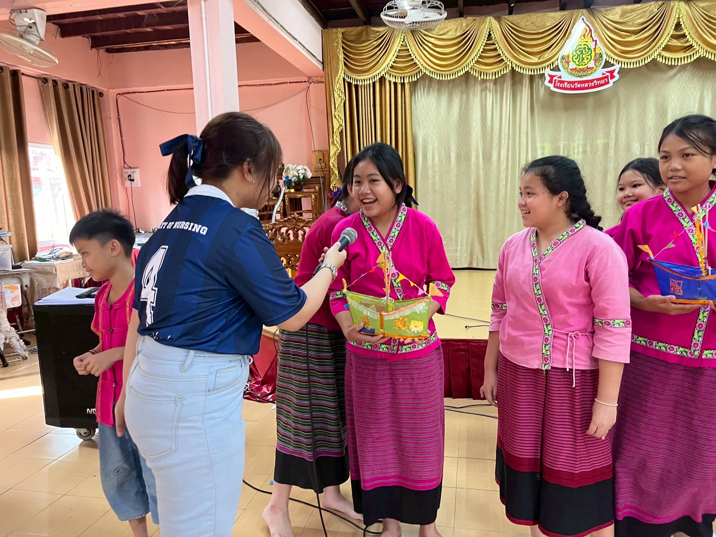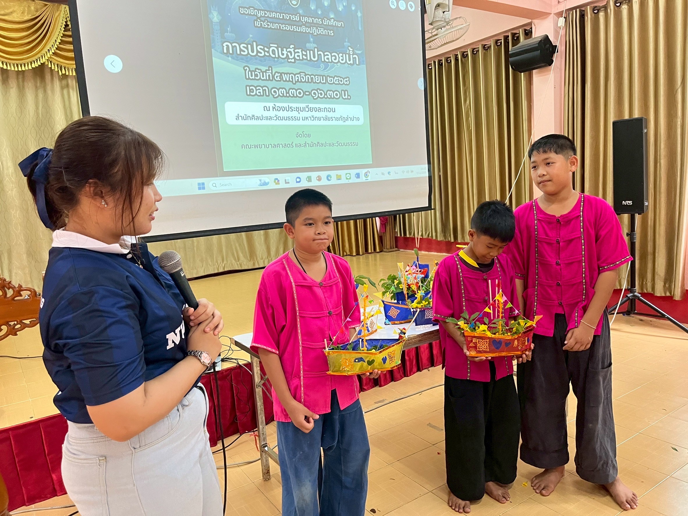 อ.ศศิธร คำมี พร้อมด้วย อ.วรรณ์วิการ์ ใจกล้า อาจารย์ประจำสาขาการพยาบาลเด็กและวัยรุ่น และนักศึกษาคณะพยาบาลศาสตร์ จัดกิจกรรม “สอนน้องประดิษฐ์สะเปาลอยน้ำ” เมื่อวันที่ 7 พฤศจิกายน 2568 ณ ห้องประชุมโรงเรียนวัดหลวงวิทยา อำเภอเมือง จังหวัดลำปาง โดยมี นายอิสระ วัจนะประดิษฐ์ ผู้อำนวยการโรงเรียนวัดหลวงวิทยา กล่าวต้อนรับ