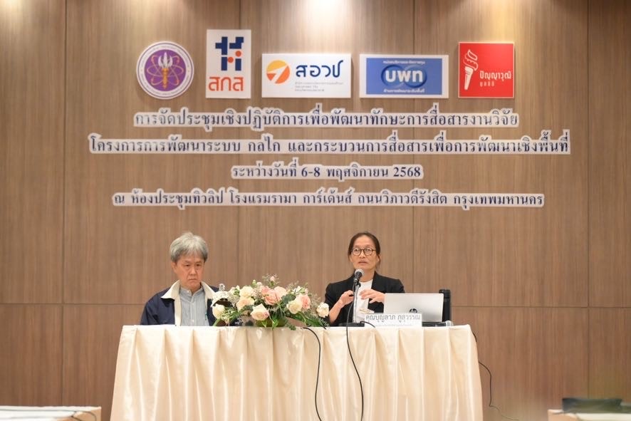 โครงการ “การสร้างกลไกความร่วมมือแบบบูรณาการเพื่อขับเคลื่อนยุทธศาสตร์ขจัดความยากจนและสร้างโอกาสทางสังคม จังหวัดลำปาง” ปีที่ 2 ส่งตัวแทนนักวิจัย ได้แก่ ผศ.ดร.สุภาวดี ยาดี อาจารย์สังกัดสาขาวิชาภาษาไทย หลักสูตรศิลปศาสตรมหาบัณฑิตและหลักสูตรปรัชญาดุษฎีบัณฑิต คณะมนุษยศาสตร์และสังคมศาสตร์ และ น.ส.วิไลรัตน์ วันกมลสวัสดิ์ นักวิจัยจากสถาบันวิจัยและพัฒนา มหาวิทยาลัยราชภัฏลำปาง เข้าร่วมประชุมเชิงปฏิบัติการ “การพัฒนาทักษะการสื่อสารงานวิจัย โครงการพัฒนาระบบ กลไก และกระบวนการสื่อสารเพื่อการพัฒนาเชิงพื้นที่”จัดการอบรมเชิงปฏิบัติการ “Workshop” โดย หน่วยบริหารและจัดการทุนด้านการพัฒนาระดับพื้นที่ (บพท.) ร่วมกับเครือข่ายพันธมิตรด้านวิทยาศาสตร์ วิจัยและสื่อสารสาธารณะ ระหว่างวันที่ 6–8 พฤศจิกายน 2568 ณ โรงแรมรามา การ์เด้นส์ กรุงเทพฯ