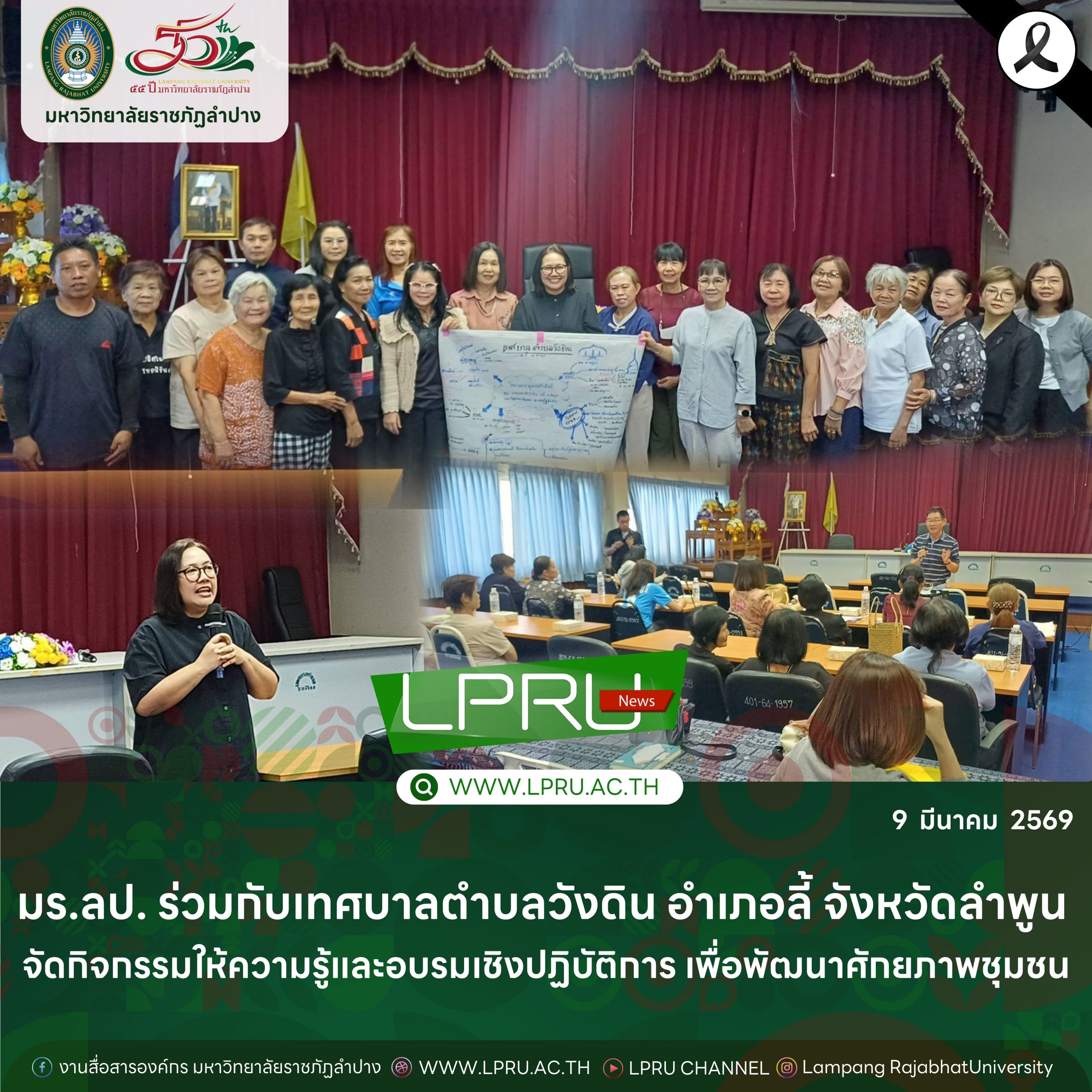 มร.ลป. ร่วมกับเทศบาลตำบลวังดิน อำเภอลี้ จังหวัดลำพูน จัดกิจกรรมให้ความรู้และอบรมเชิงปฏิบัติการ เพื่อพัฒนาศักยภาพชุมชน