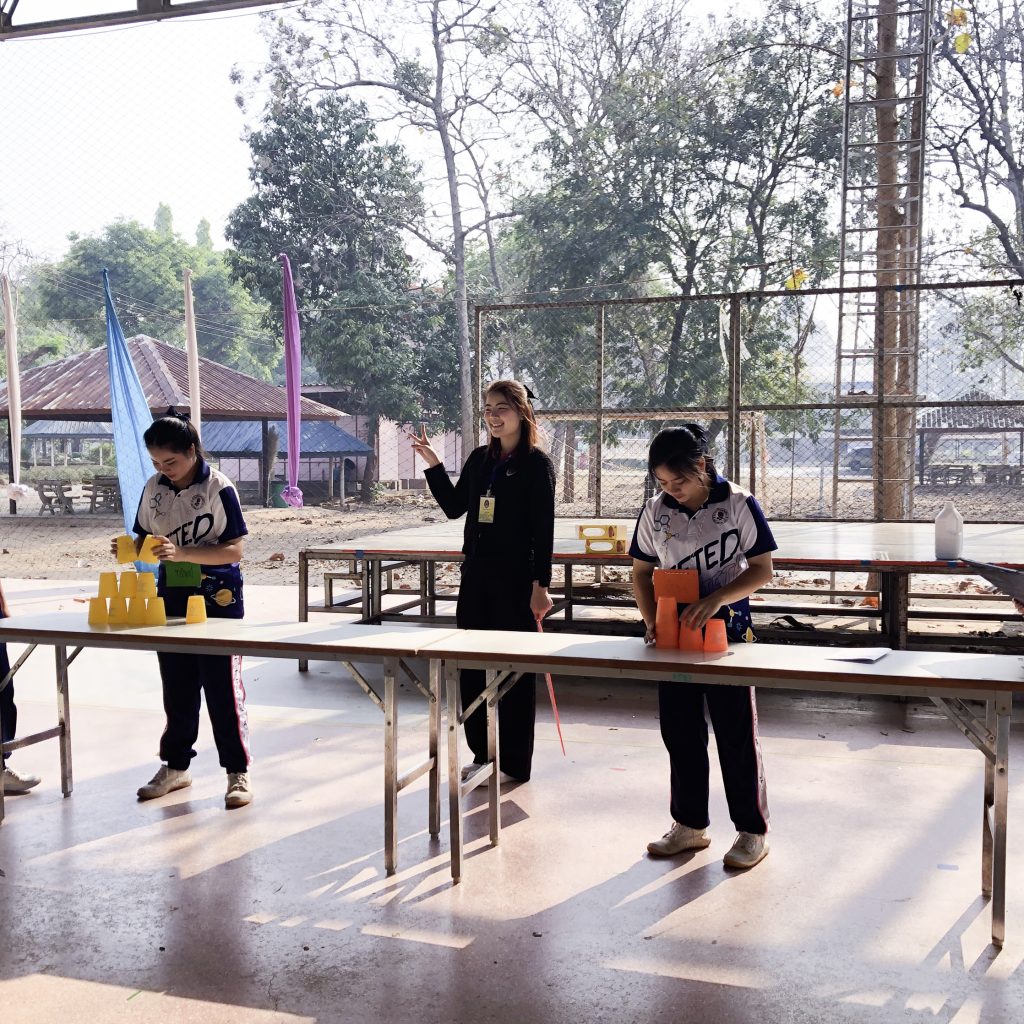 ฐานที่ 1 กิจกรรมนันทนาการเชื่อมสัมพันธ์พี่น้องห้องเรียนพิเศษโรงเรียนวิไลเกียรติอุปถัมภ์ วิทยากรโดย ผศ.รัชนี คะระวาด และ ผศ.ธัญลักษณ์ งามขำ อาจารย์สังกัดสาขาวิชาคณิตศาสตร์