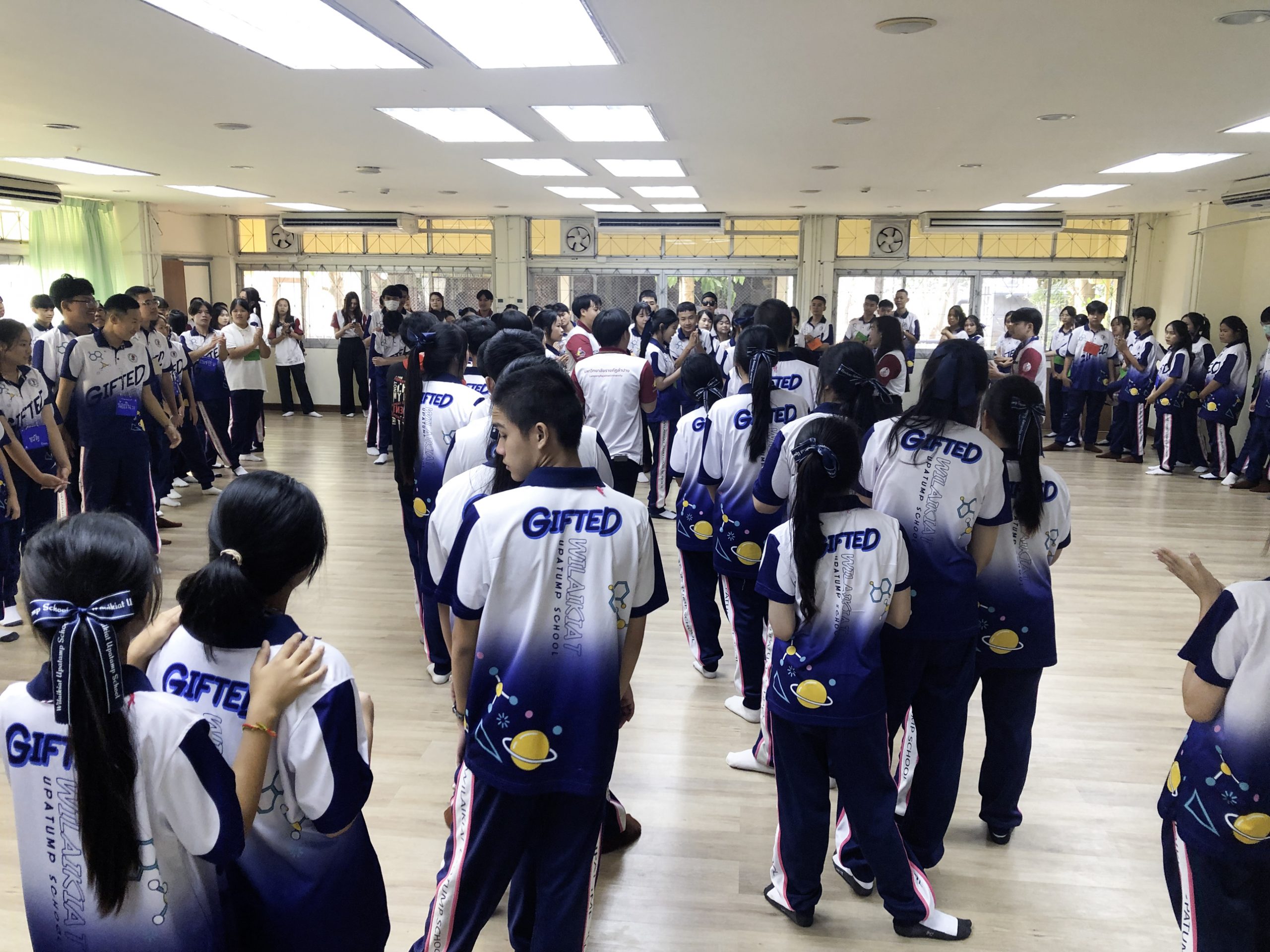 ฐานที่ 1 กิจกรรมนันทนาการเชื่อมสัมพันธ์พี่น้องห้องเรียนพิเศษโรงเรียนวิไลเกียรติอุปถัมภ์ วิทยากรโดย ผศ.รัชนี คะระวาด และ ผศ.ธัญลักษณ์ งามขำ อาจารย์สังกัดสาขาวิชาคณิตศาสตร์
