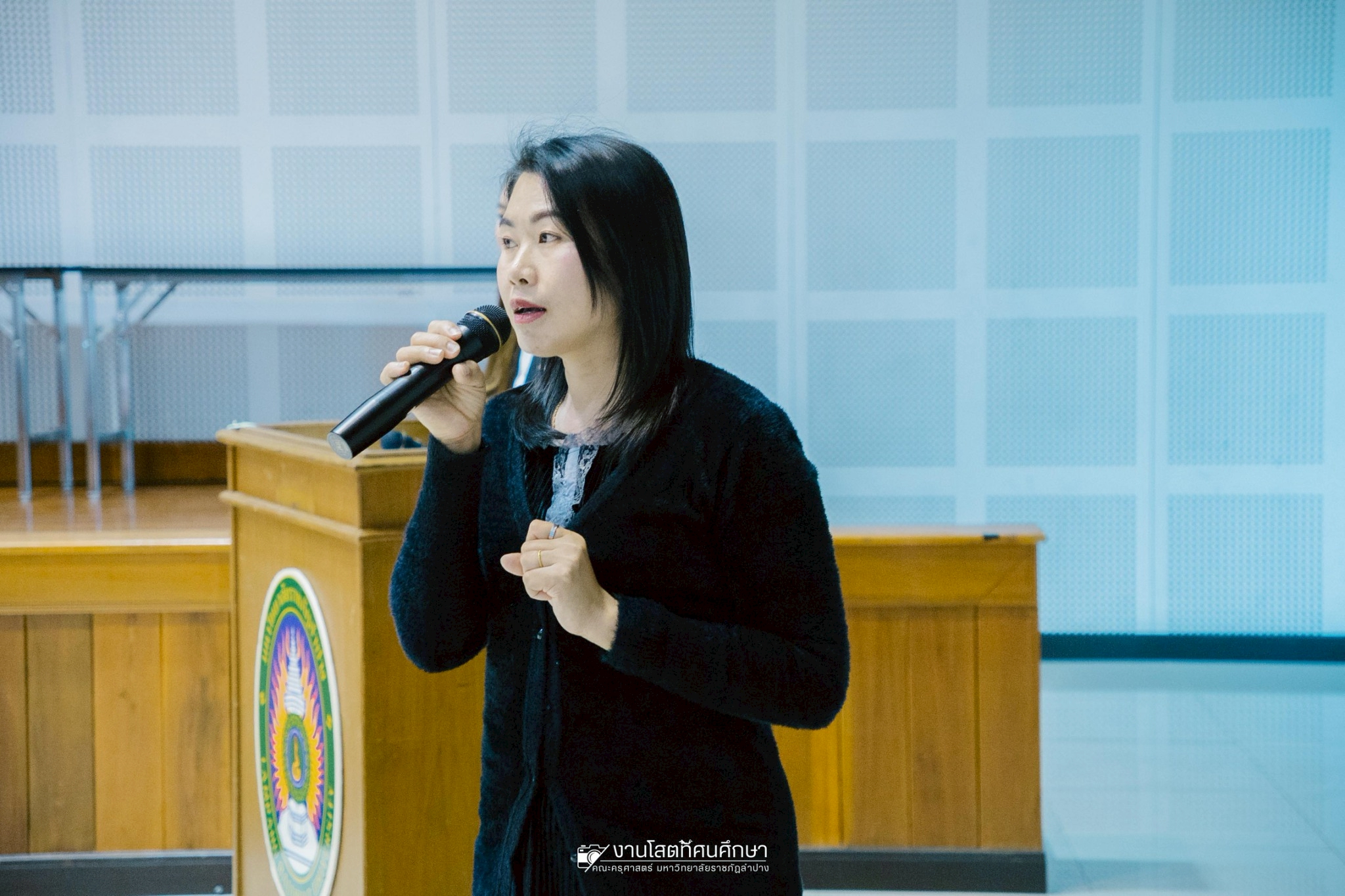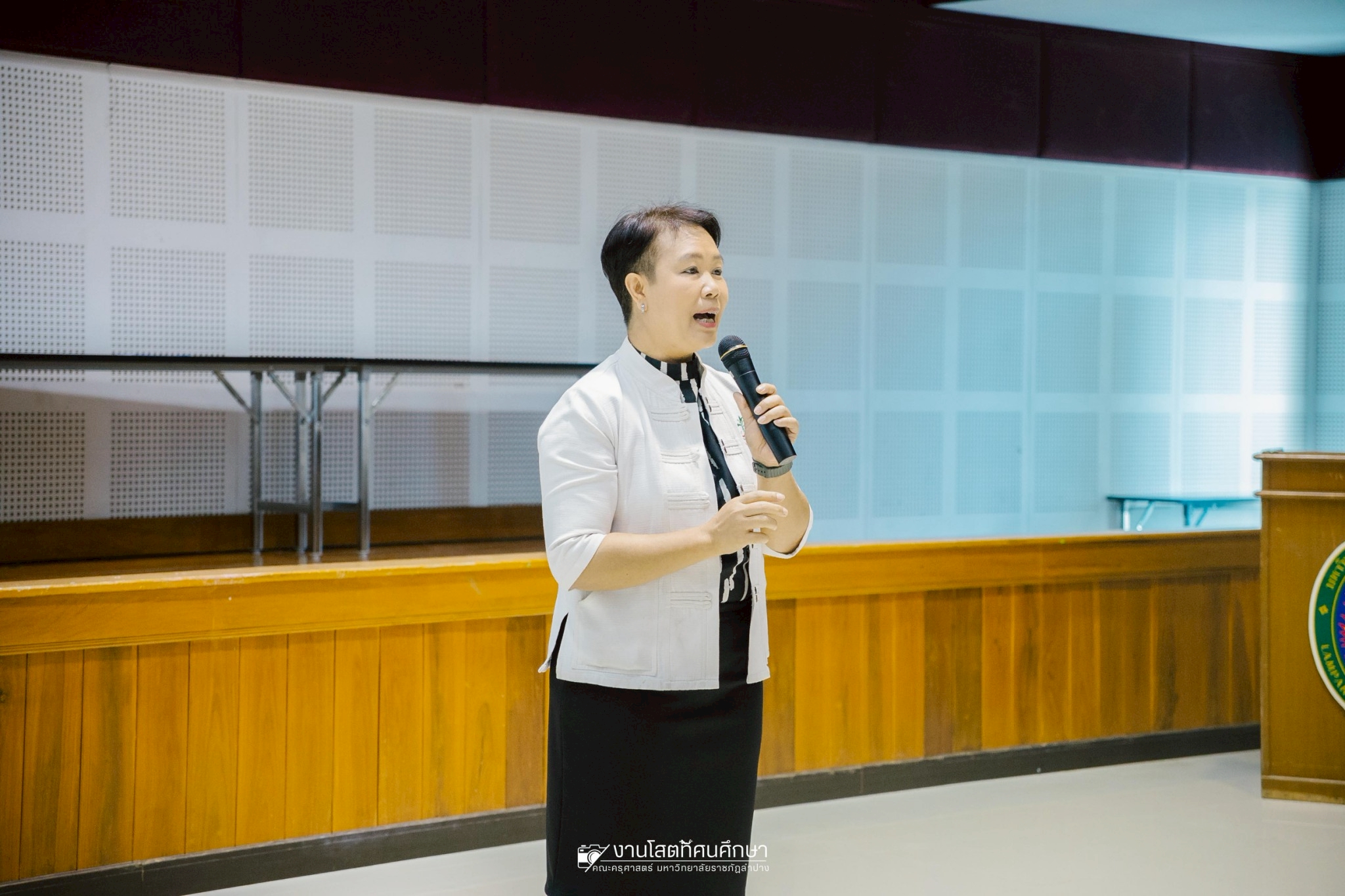รศ.ดร.ฟิสิกส์ ฌอณ บัวกนก คณบดีคณะครุศาสตร์ มหาวิทยาลัยราชภัฏลำปาง เป็นประธานพิธีเปิดกิจกรรมการสัมมนานักศึกษาระหว่างปฎิบัติการสอนในสถานศึกษาประจำภาคเรียนที่ 2/2568 สำหรับนักศึกษาชั้นปีที่ 4 หลักสูตรครุศาสตรบัณฑิต 4 ปี เมื่อวันที่ 9 มกราคม 2569 ณ ห้องประชุมนารีอินทนนท์ ชั้น 5 อาคารบริการวิชาการ มหาวิทยาลัยราชภัฏลำปาง