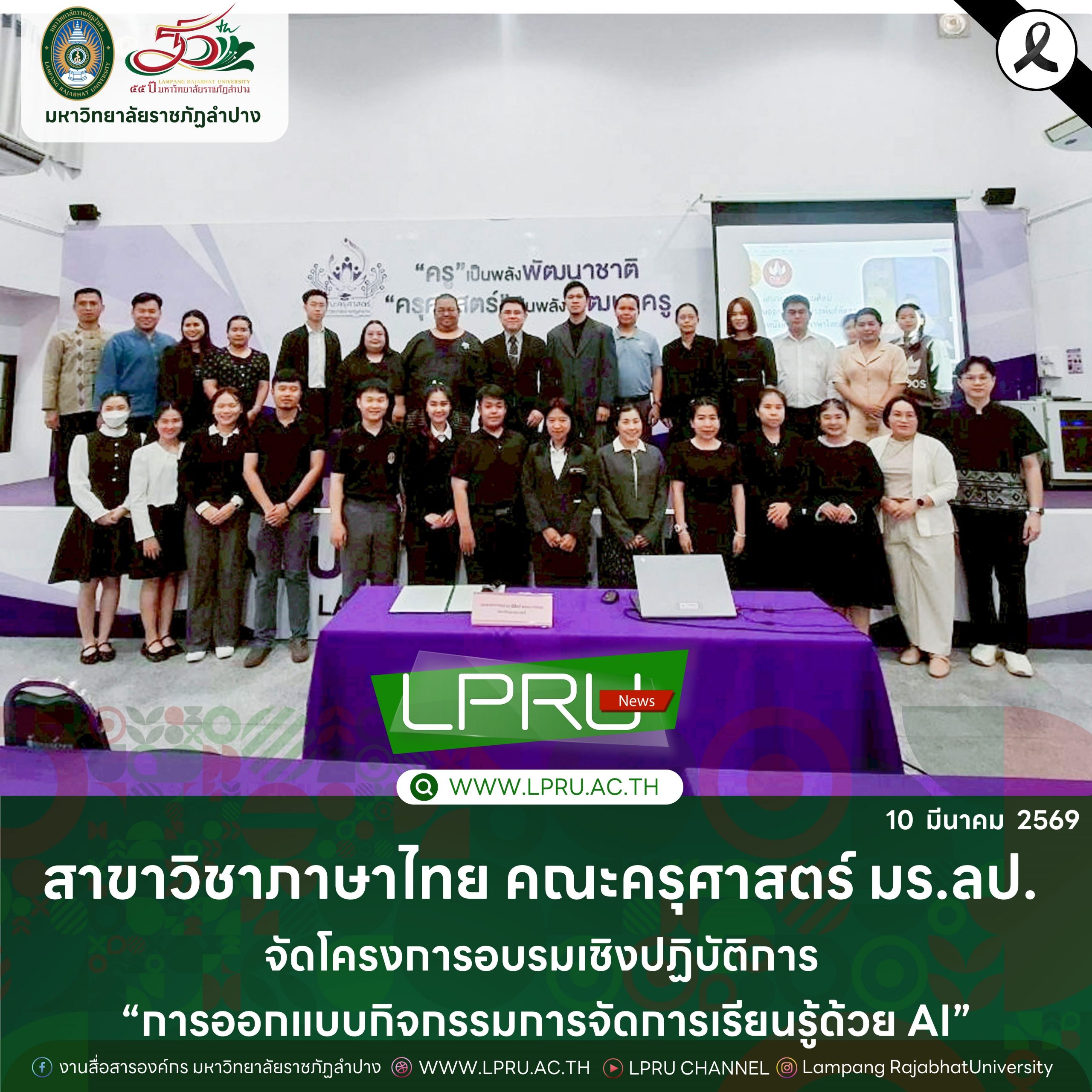 สาขาวิชาภาษาไทย คณะครุศาสตร์ มร.ลป. จัดโครงการอบรมเชิงปฏิบัติการ “การออกแบบกิจกรรมการจัดการเรียนรู้ด้วย AI”