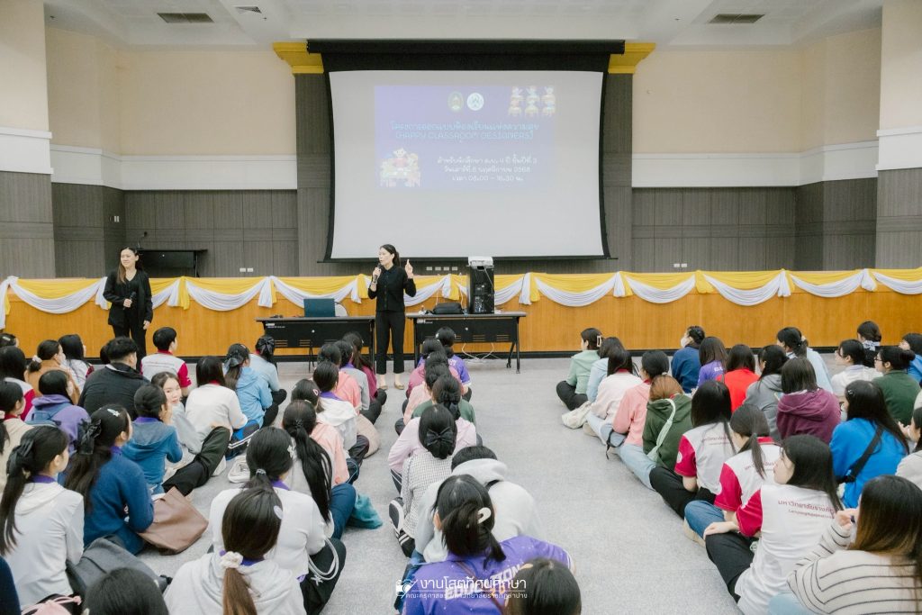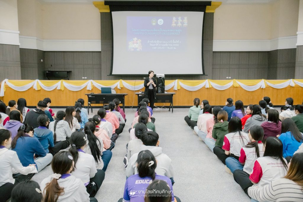ผศ.ดร.พิชชา ถนอมเสียง พร้อมด้วย ผศ.อนงค์รัตน์ รินแสงปิน อาจารย์สังกัดสาขาวิชาจิตวิทยาการปรึษาและการแนะแนว และ อ.กิตติมา สิงสนธิ์ อาจารย์สังกัดสาขาวิชาภาษาอังกฤษ คณะครุศาสตร์ จัดการอบรมโครงการออกแบบห้องเรียนแห่งความสุข (Happy Classroom Designers)ให้แก่นักศึกษาหลักสูตรครุศาสตรบัณฑิต (ค.บ. 4 ปี) ชั้นปีที่ 3 เมื่อวันที่ 8 พฤศจิกายน 2568 โดยแบ่งห้องการอบรมแยกตามสาขา ณ ห้องประชุมเอื้องหลวง อาคาร 52 คณะครุศาสตร์และคณะมนุษยศาสตร์และสังคมศาสตร์ และห้องประชุมนารีอินทนนท์ ชั้น 5 อาคารบริการวิชาการ
