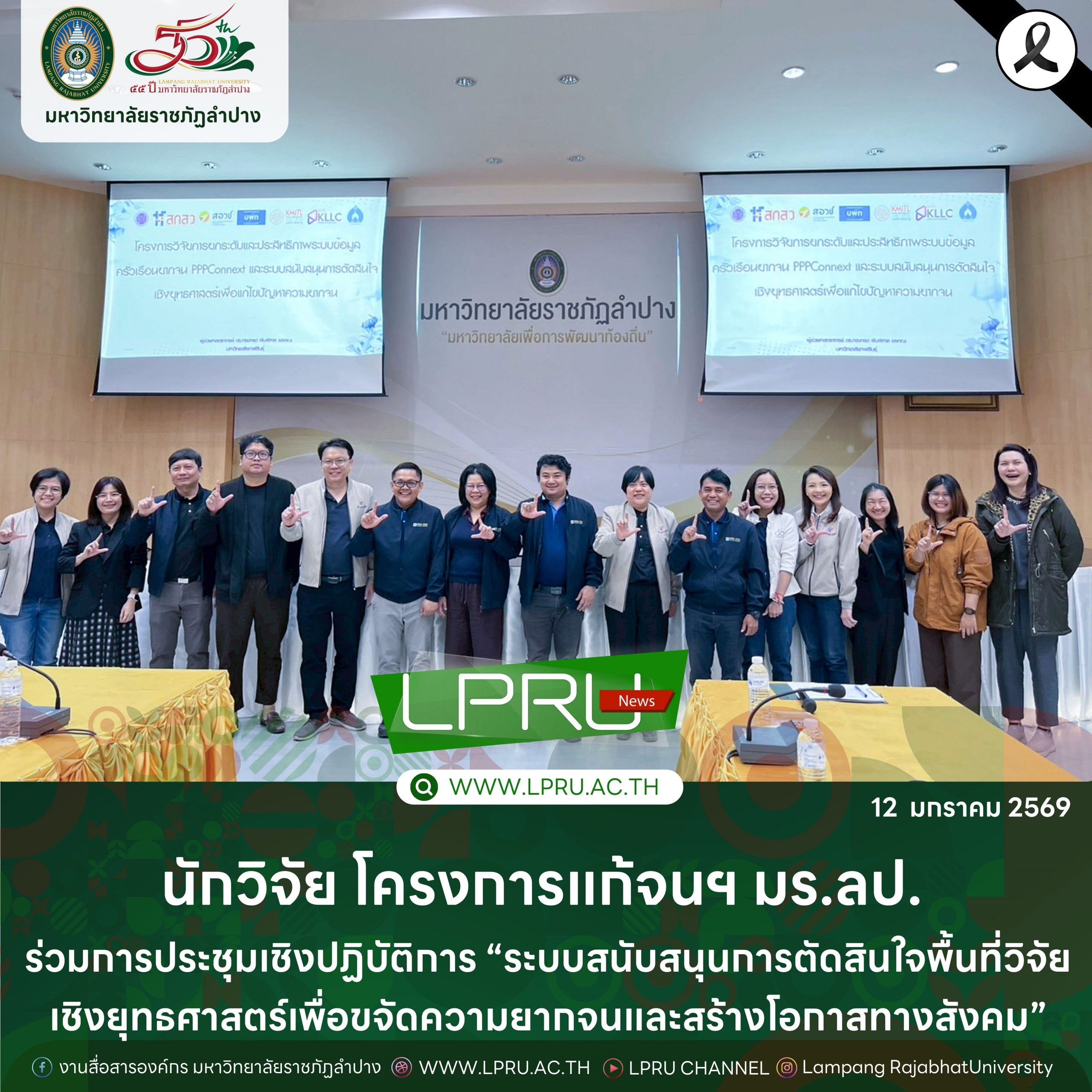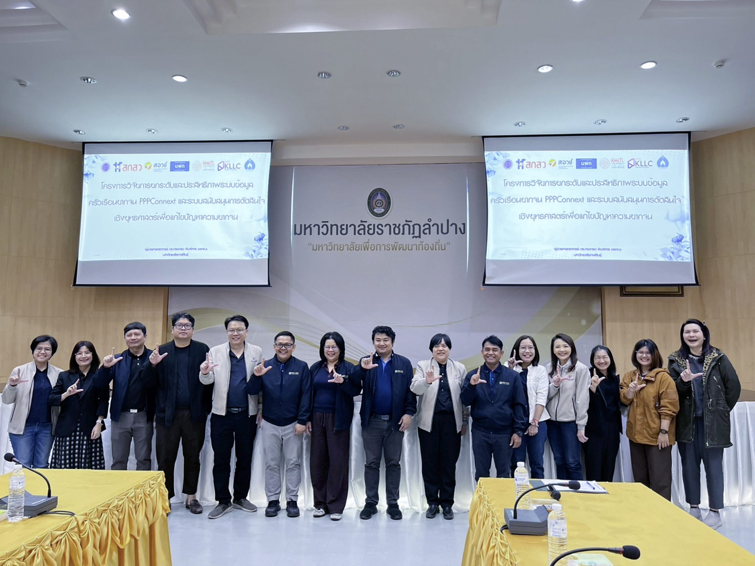 ทีมนักวิจัย โครงการการสร้างกลไกความร่วมมือแบบบูรณาการเพื่อขับเคลื่อนยุทธศาสตร์ขจัดความยากจนและสร้างโอกาสทางสังคมของจังหวัดลำปาง ปีที่ 2 และนักวิจัยมหาวิทยาลัยราชภัฏลำปาง จำนวน 23 คน และ ร่วมการประชุมเชิงปฏิบัติการ “ระบบสนับสนุนการตัดสินใจพื้นที่วิจัยเชิงยุทธศาสตร์เพื่อขจัดความยากจนและสร้างโอกาสทางสังคม” ณ ห้องประชุมโอฬารรมย์ ชั้น 1 อาคารโอฬารโรจน์หิรัญ มหาวิทยาลัยราชภัฏลำปาง