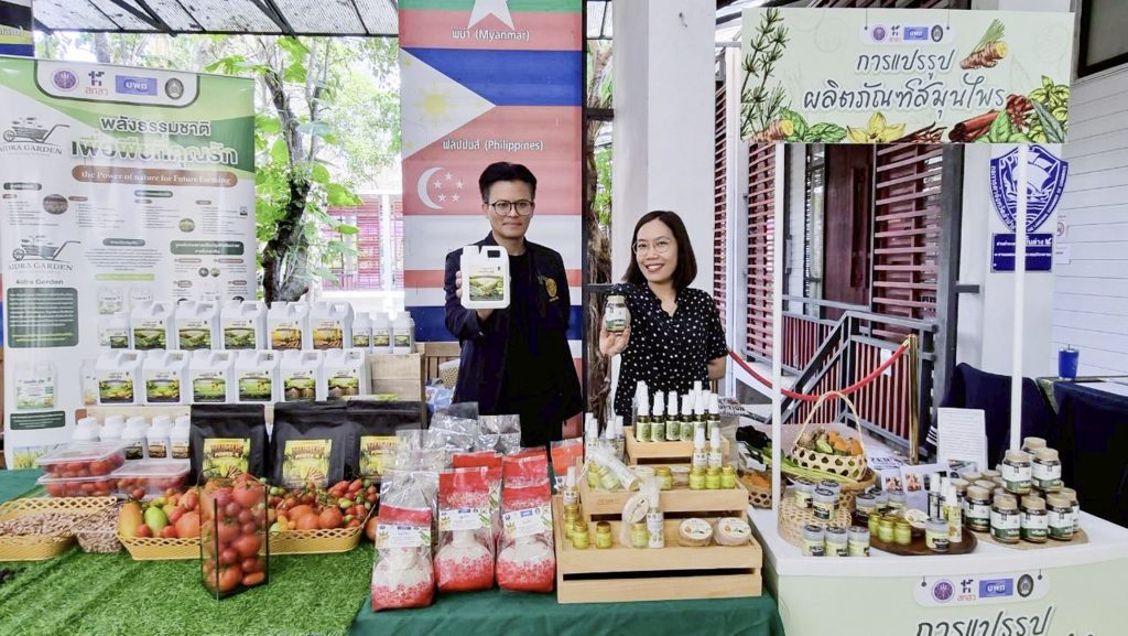 ผศ.ดร.ณรงค์ คชภักดี รองผู้อำนวยการสถาบันวิจัยและพัฒนา พร้อมด้วย อ.ดร.อังคณา เชื้อเจ็ดตน อาจารย์สังกัดสาขาวิชาชีววิทยา คณะวิทยาศาสตร์ นักวิจัยภายใต้โครงการ การสร้างกลไกความร่วมมือแบบบูรณาการเพื่อขับเคลื่อนยุทธศาสตร์ ขจัดความยากจน และสร้างโอกาสทางสังคมของจังหวัดลำปาง ร่วมจัดนิทรรศการผลิตภัณฑ์สมุนไพรแก้จน และสารปรับปรุงดิน ในการประชุมหอการค้าภาคเหนือ ครั้งที่ 1/2569 เมื่อวันที่ 7-8 มีนาคม 2569 ณ ห้องกุญชรศุภศรี ศูนย์อนุรักษ์ช้างไทย จังหวัดลำปาง