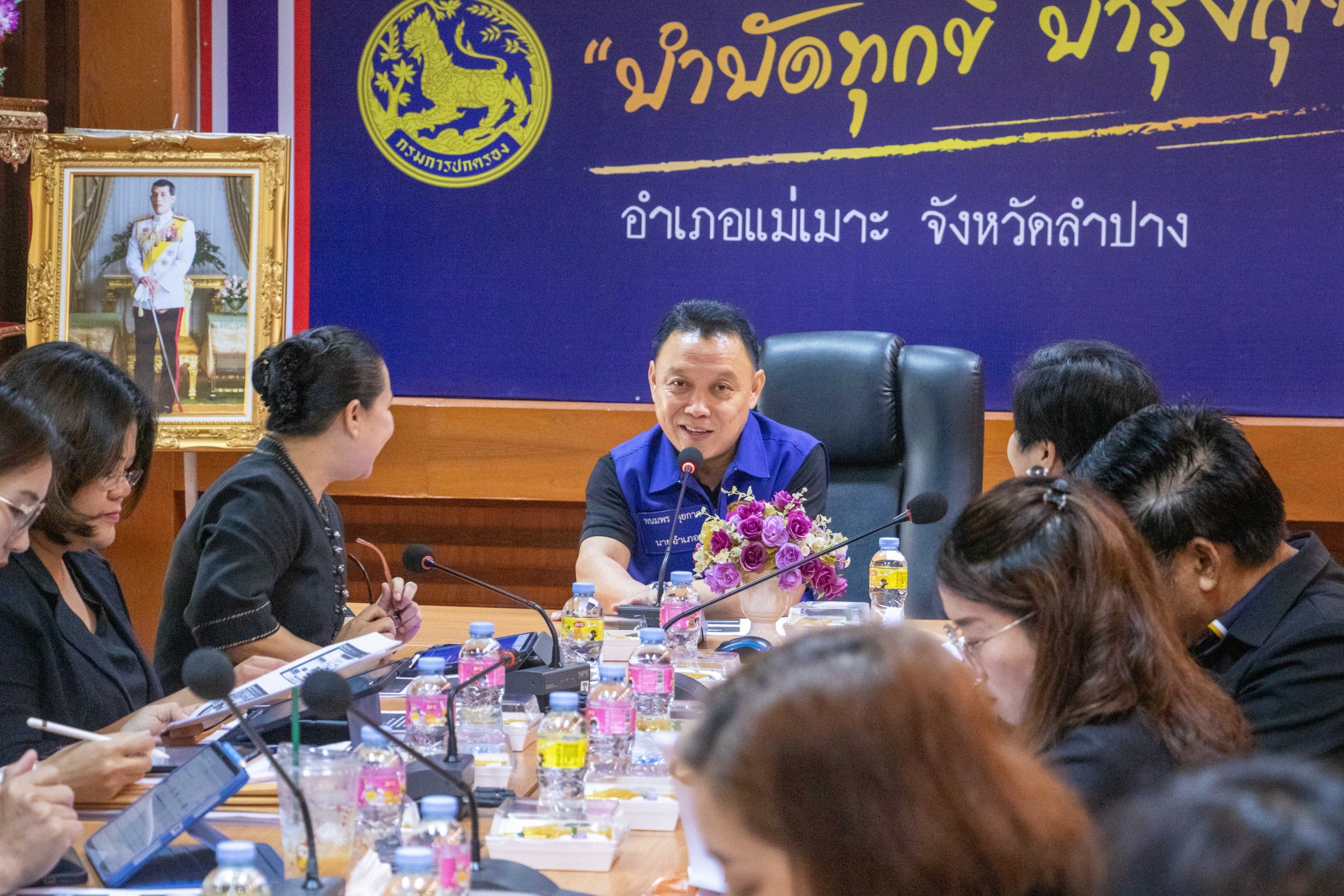 เมื่อวันที่ 11 พฤศจิกายน 2568 ณ ห้องประชุมชั้น 2 ที่ว่าการอำเภอแม่เมาะ จังหวัดลำปาง รศ.วิไลลักษณ์ พรมเสน รองอธิการบดีฝ่ายวิจัยและวิชาการต่างประเทศ มหาวิทยาลัยราชภัฏลำปาง พร้อมคณะนักวิจัยโครงการ “การสร้างกลไกความร่วมมือแบบบูรณาการเพื่อขับเคลื่อนยุทธศาสตร์ขจัดความยากจนและสร้างโอกาสทางสังคม จังหวัดลำปาง” ปีที่ 2 เข้าร่วมประชุมชี้แจงแนวทางดำเนินงาน “อำเภอแก้จนต้นแบบ (Prototype Area)” โดยมี นายพนมพร ตุ้ยกาศ นายอำเภอแม่เมาะ เป็นประธานเปิดการประชุม