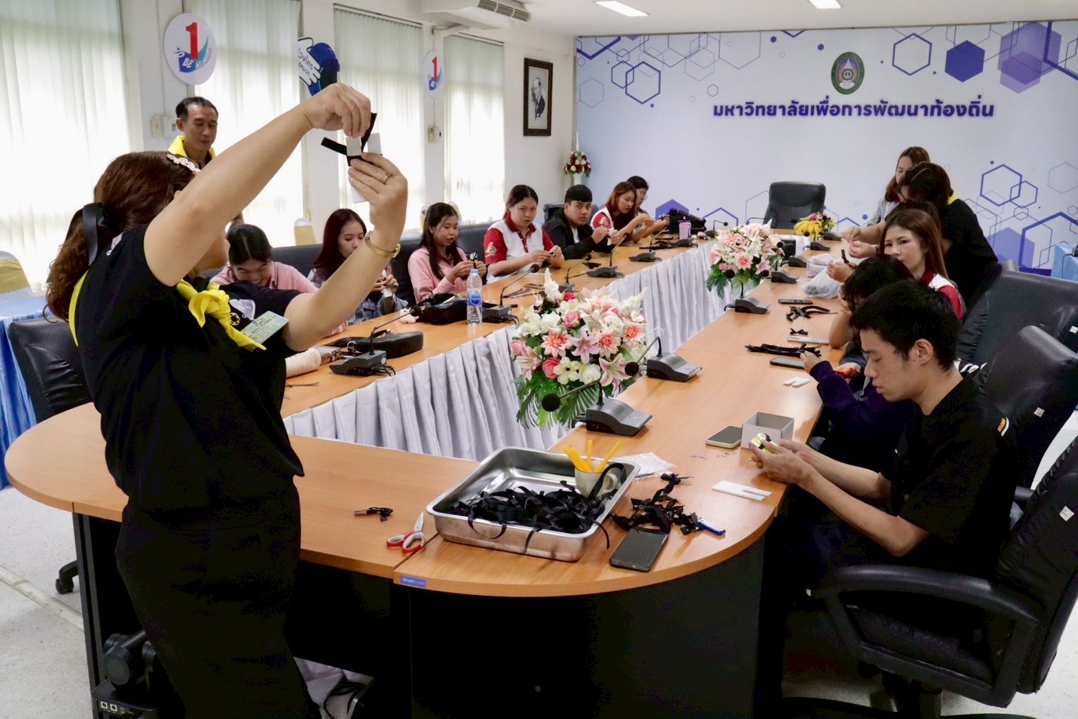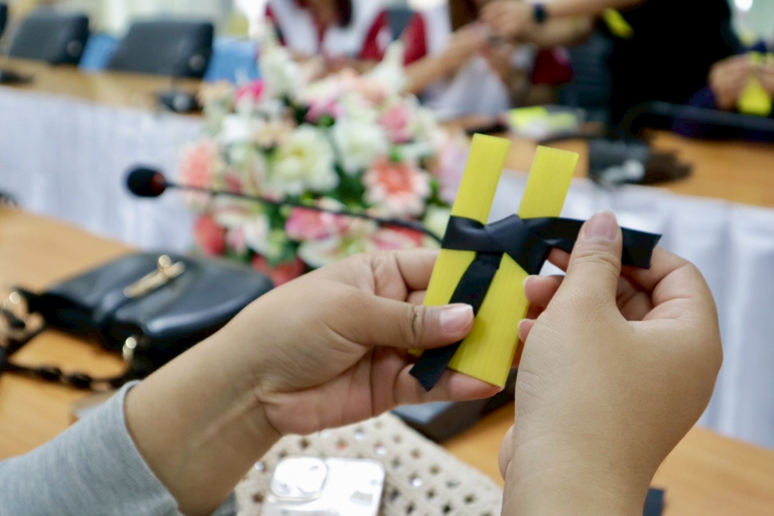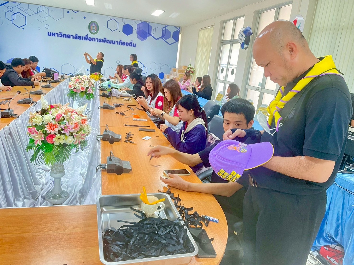 นอกจากนี้ยังมีกิจกรรมจิตอาสาจัดทำริบบิ้น แสดงความอาลัยแด่สมเด็จพระนางเจ้าสิริกิตติ์ พระบรมราชินีนาถ พระบรมราชชนนีพันปีหลวง นำโดย ผศ.วิไลวรรณ กลิ่นถาวร ประธานสาขาวิชาการศึกษาปฐมวัย อ.ชลจิรา สัมพุทธานนท์ อ.พัชรา พานทองรักษ์ อาจารย์สังกัดสาขาวิชาการศึกษาปฐมวัย นำนักศึกษาสาขาวิชาการศึกษาปฐมวัย คณะครุศาสตร์ จำนวน 32 คน และ ผศ.กาญจนา คุมา อาจารย์สังกัดสาขาวิชาการบัญชี นำนักศึกษาสาขาวิชาการบัญชี คณะวิทยาการจัดการ จำนวน 25 คน ร่วมทำริบบิ้นในครั้งนี้ ทั้งนี้ขอเชิญชวน คณะผู้บริหาร คณาจารย์ บุคลากร และนักศึกษาร่วมกิจกรรมจิตอาสาจัดทำริบบิ้นแสดงความอาลัยฯ 9,300 ชิ้น ณ อาคารกองพัฒนานักศึกษา ตั้งแต่บัดนี้ – 14 พฤศจิกายน 2568 เวลา 10.00 – 12.00น. สำหรับผู้มีความประสงค์ร่วมสมทบวัสดุ อุปกรณ์ในการจัดทำริบบิ้น หรือนำส่งริบบิ้นสำเร็จรูป สามารถนำส่งได้ที่ อาคารกองพัฒนานักศึกษา โดยริบบิ้นดังกล่าวจะแจกให้กับนักศึกษา บุคลากร และประชาชนทั่วไปในลำดับต่อไป