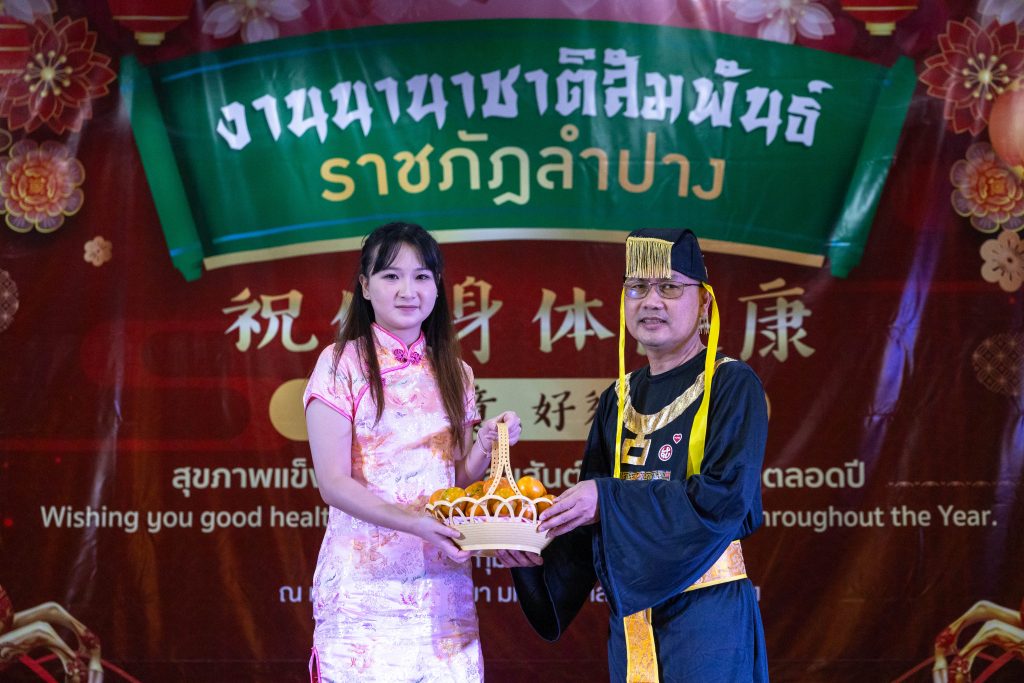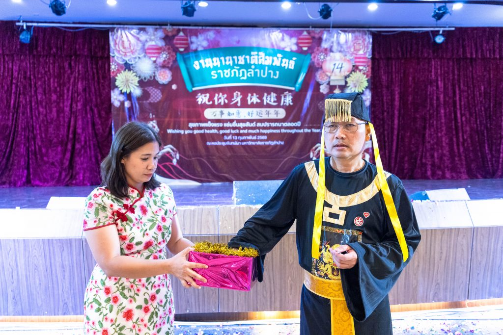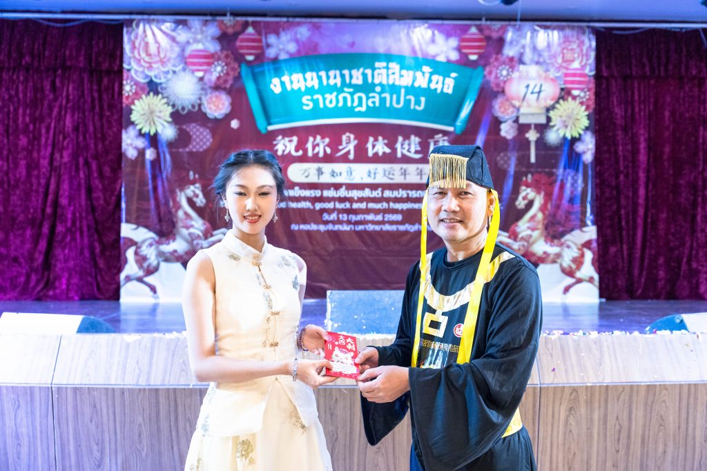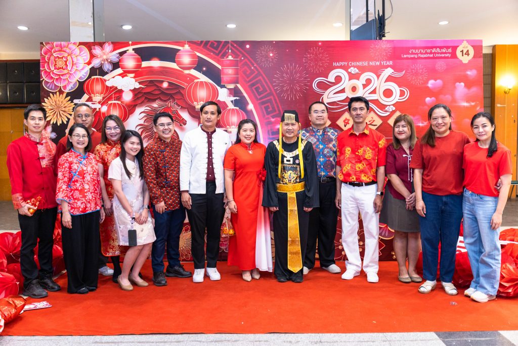รศ.ดร.ปริเยศ สิทธิสรวง รองอธิการบดีฝ่ายบริหาร มหาวิทยาลัยราชภัฏลำปาง เป็นประธานเปิดงานนานาชาติสัมพันธ์ ราชภัฏลำปาง ครั้งที่ 14 พร้อมกล่าวอวยพรในโอกาสเทศกาลตรุษจีน แก่นักศึกษา และผู้เข้าร่วมงาน ณ ห้องประชุมจันทน์ผา มหาวิทยาลัยราชภัฏลำปาง เมื่อวันที่ 13 กุมภาพันธ์ 2569 โดยมี อ.อัจฉริยา ครุธาโรจน์ ผู้ช่วยอธิการบดีด้านวิเทศสัมพันธ์ กล่าวรายงาน