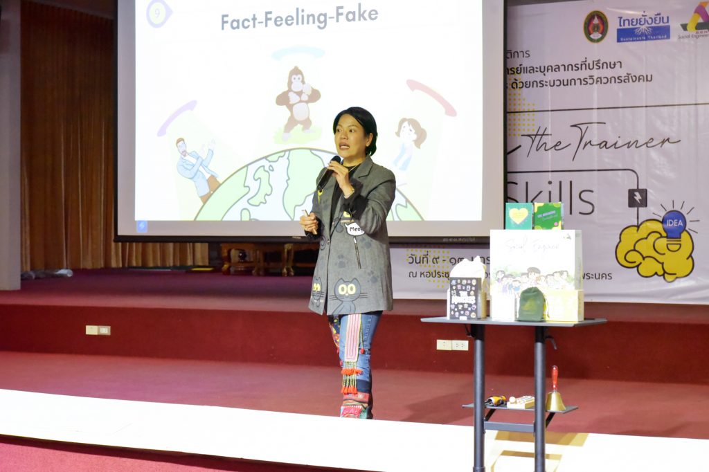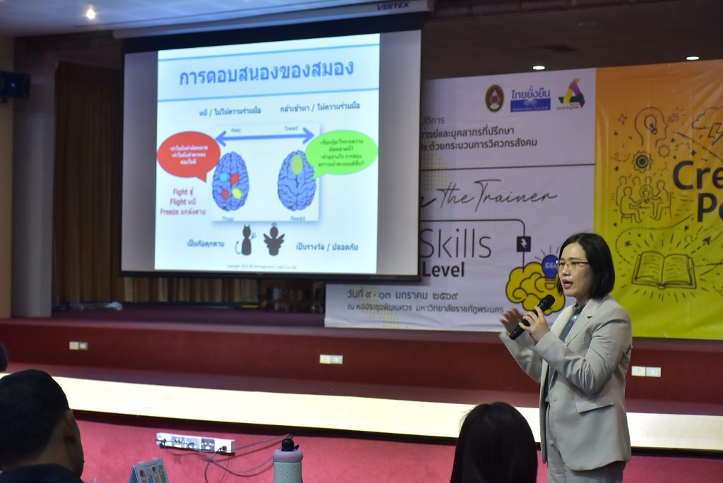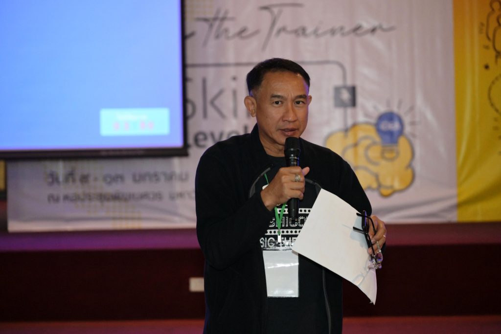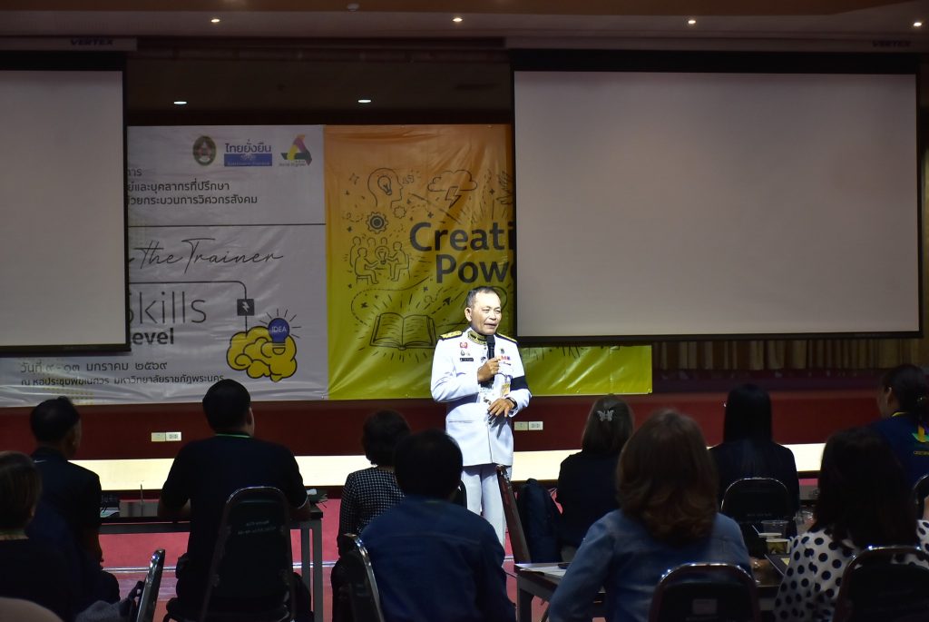 การจัดอบรมในครั้งนี้ มหาวิทยาลัยราชภัฏพระนครเป็นเจ้าภาพและเป็นศูนย์กลางการฝึกอบรม The Real Trainer ให้กับมหาวิทยาลัยราชภัฏทั้ง 38 แห่ง เพื่อเป็นการพัฒนา Upskill Reskill และประเมินทักษะบุคลากรและอาจารย์ของมหาวิทยาลัยราชภัฏทั่วประเทศให้สามารถเป็นวิทยากรด้านการพัฒนา Soft Skills ด้วยกระบวนการวิศวกรสังคม โดยการถ่ายทอดองค์ความรู้และประสบการณ์ขององค์กรสู่บุคลากร และนักศึกษาอย่างมืออาชีพ โดยได้รับเกียรติจาก ดร.นงรัตน์ อิสโร ที่ปรึกษาที่ประชุมอธิการบดีมหาวิทยาลัยราชภัฏ และประธานมูลนิธิไทยยั่งยืน พร้อมด้วย น.ส.ขนิษฐา หล่อลักษณ์ อ.สุวัชชัย แก้วทรัพย์ศักดิ์ สถาบัน BE Management Coach นายรัชชานนท์ วนิชสมบัติ ทีมผู้ก่อตั้ง Game Flexx นักออกแบบการเล่นและผู้เชี่ยวชาญการเล่าเรื่องผ่านเกม และน.ส.ประกายดาว พิมพา ทีมผู้ก่อตั้ง Game Flexx ผู้เชี่ยวชาญด้านการพัฒนามนุษย์ ร่วมเป็นวิทยากร ในหัวข้อ การโค้ช หัวข้อ ทักษะการใช้ Social Engineer Board Game หัวข้อ All Kind of Tools for Upgrading Social Engineer Skills หัวข้อ ทักษะการใช้ Powerful Questioning Skill หัวข้อ Criticize Feedback Skill หัวข้อ KM 5 เครื่องมือวิศวกรสังคม และหัวข้อ เครื่องมือการโค้ช โดยมีคณะผู้บริหาร คณาจารย์ และบุคลากรจากมหาวิทยาลัยราชภัฏทั่วประเทศ ร่วมกิจกรรมกว่า 80 คน
