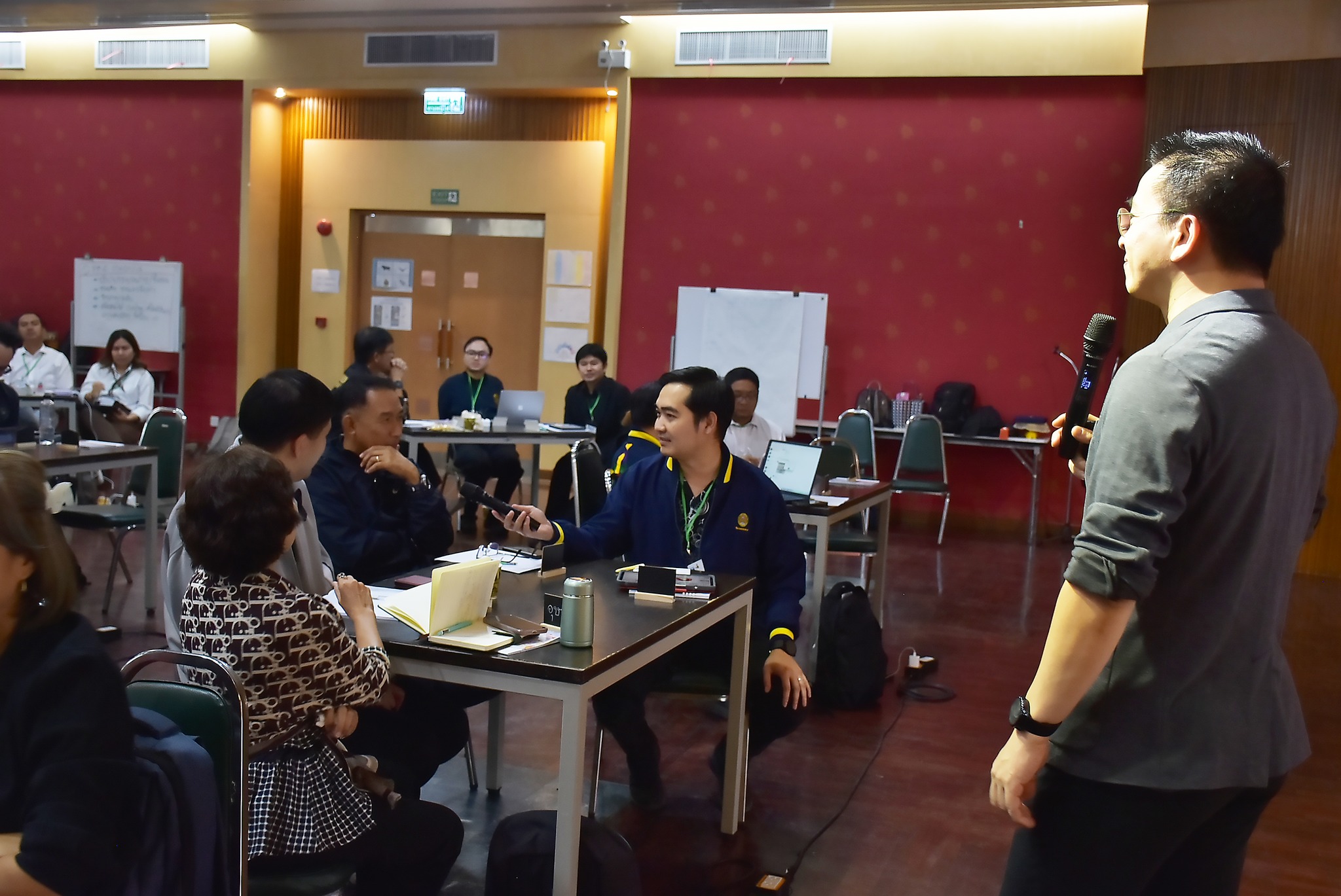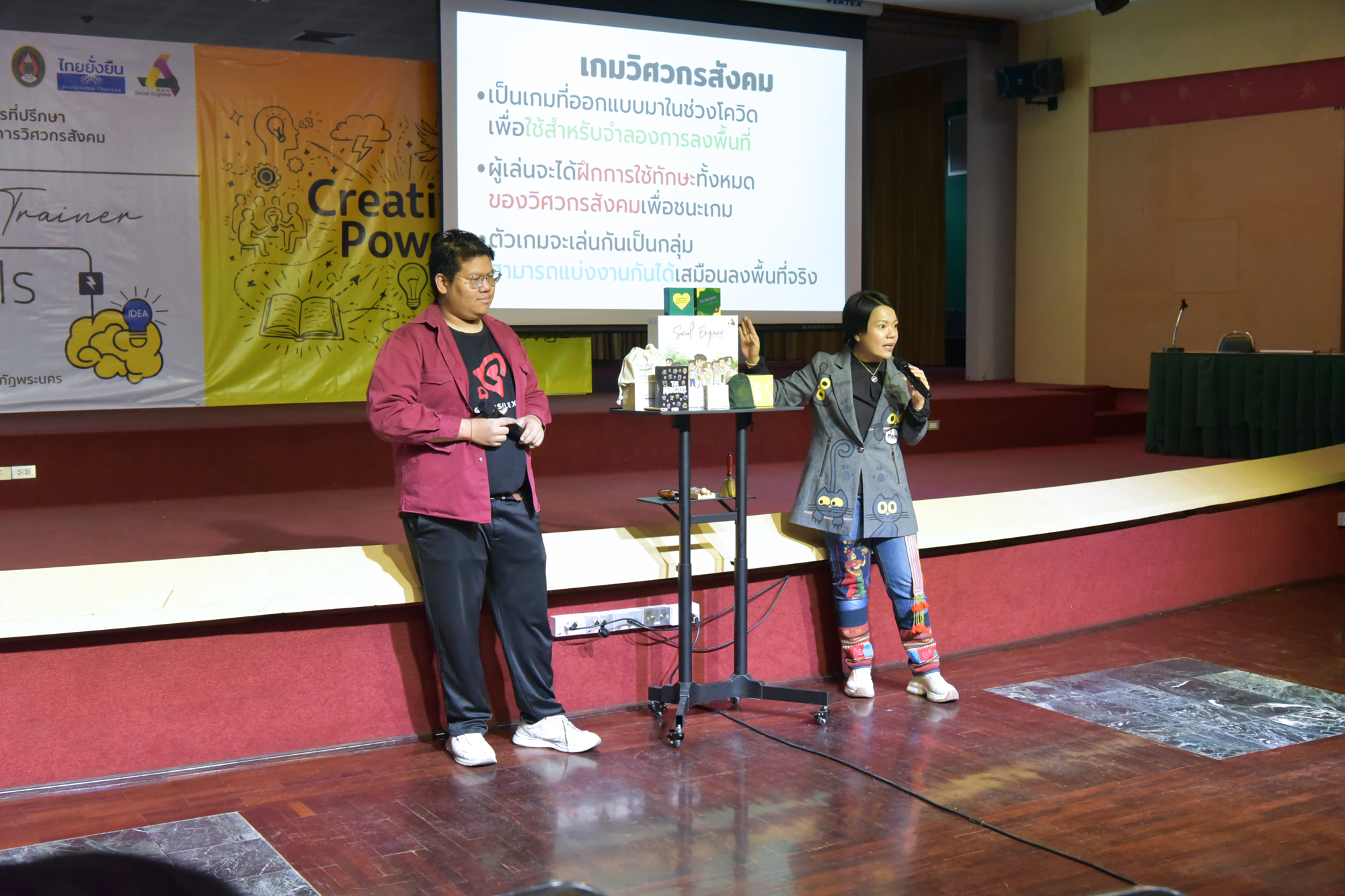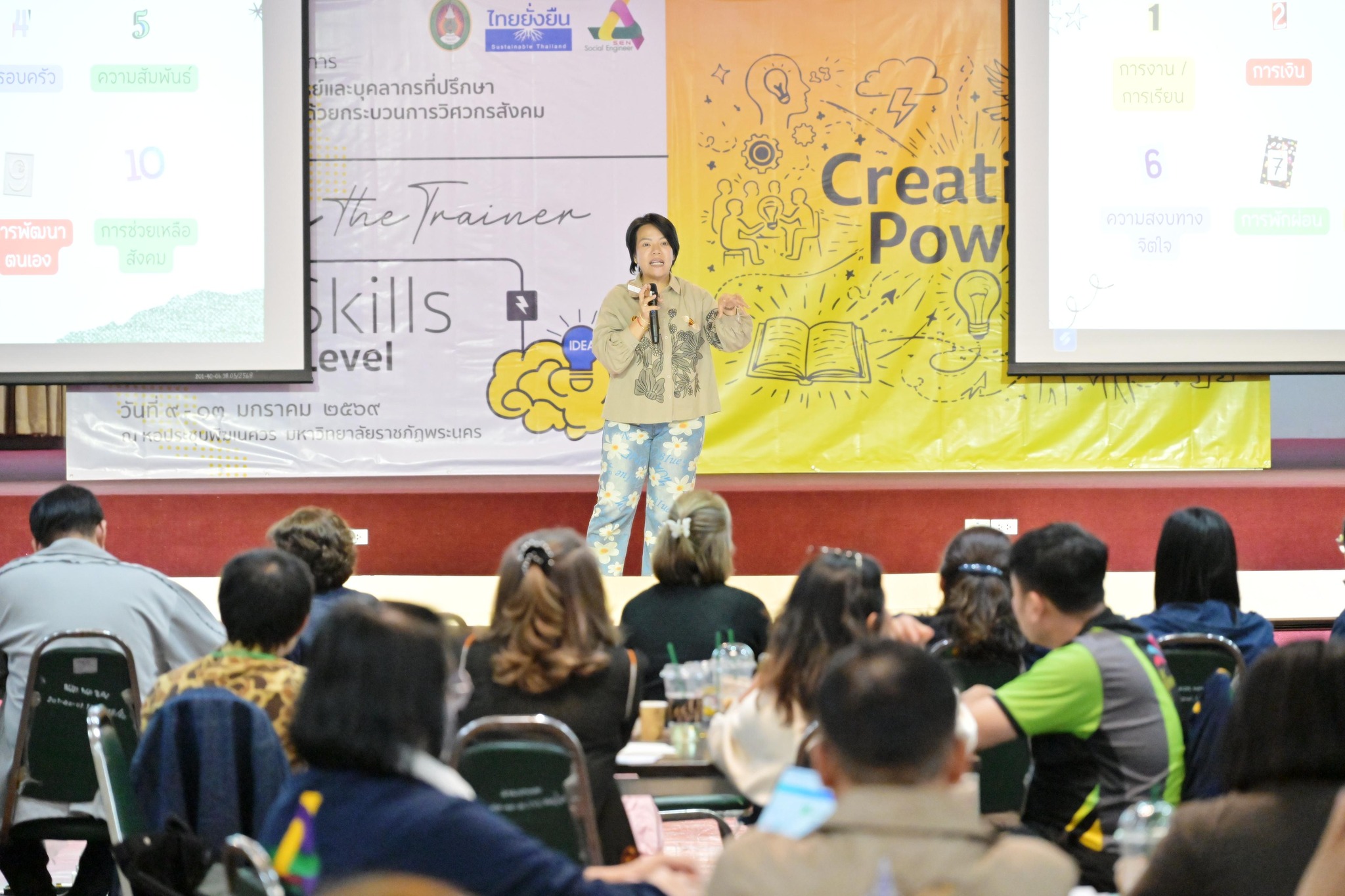 การจัดอบรมในครั้งนี้ มหาวิทยาลัยราชภัฏพระนครเป็นเจ้าภาพและเป็นศูนย์กลางการฝึกอบรม The Real Trainer ให้กับมหาวิทยาลัยราชภัฏทั้ง 38 แห่ง เพื่อเป็นการพัฒนา Upskill Reskill และประเมินทักษะบุคลากรและอาจารย์ของมหาวิทยาลัยราชภัฏทั่วประเทศให้สามารถเป็นวิทยากรด้านการพัฒนา Soft Skills ด้วยกระบวนการวิศวกรสังคม โดยการถ่ายทอดองค์ความรู้และประสบการณ์ขององค์กรสู่บุคลากร และนักศึกษาอย่างมืออาชีพ โดยได้รับเกียรติจาก ดร.นงรัตน์ อิสโร ที่ปรึกษาที่ประชุมอธิการบดีมหาวิทยาลัยราชภัฏ และประธานมูลนิธิไทยยั่งยืน พร้อมด้วย น.ส.ขนิษฐา หล่อลักษณ์ อ.สุวัชชัย แก้วทรัพย์ศักดิ์ สถาบัน BE Management Coach นายรัชชานนท์ วนิชสมบัติ ทีมผู้ก่อตั้ง Game Flexx นักออกแบบการเล่นและผู้เชี่ยวชาญการเล่าเรื่องผ่านเกม และน.ส.ประกายดาว พิมพา ทีมผู้ก่อตั้ง Game Flexx ผู้เชี่ยวชาญด้านการพัฒนามนุษย์ ร่วมเป็นวิทยากร ในหัวข้อ การโค้ช หัวข้อ ทักษะการใช้ Social Engineer Board Game หัวข้อ All Kind of Tools for Upgrading Social Engineer Skills หัวข้อ ทักษะการใช้ Powerful Questioning Skill หัวข้อ Criticize Feedback Skill หัวข้อ KM 5 เครื่องมือวิศวกรสังคม และหัวข้อ เครื่องมือการโค้ช โดยมีคณะผู้บริหาร คณาจารย์ และบุคลากรจากมหาวิทยาลัยราชภัฏทั่วประเทศ ร่วมกิจกรรมกว่า 80 คน