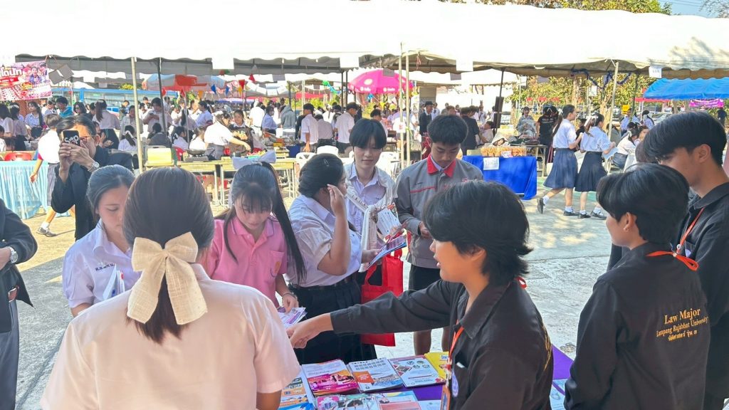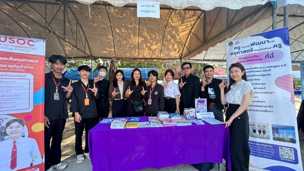 เมื่อวันที่ 13 กุมภาพันธ์ 2569 อ.อัจฉริยา ครุธาโรจน์ ผู้ช่วยอธิการบดีด้านวิเทศสัมพันธ์ พร้อมด้วย ผศ.ปวีณา งามประภาสม อาจารย์สังกัดสาขาวิชาการพัฒนาชุมชน ผศ.เกียรติสุดา โสดามรรค อาจารย์สังกัดสาขาวิชานิติศาสตร์ อ.ณธษา ตั้งชัยวรรณา อ.ณธษา ตั้งชัยวรรณา อาจารย์สังกัดสาขาวิชาภาษาจีน อ.ปฏิรูป สุภัทรดิลกกุล อาจารย์สังกัดสาขาวิชาดนตรีศึกษา คณะมนุษยศาสตร์และสังคมศาสตร์ และ อ.เกษตร วงศ์อุปราช หัวหน้างานประชาสัมพันธ์และสารสนเทศ คณะครุศาสตร์ ร่วมจัดนิทรรศการงานวันวิชาการ เปิดบ้านเตรียมอุดมศึกษาพัฒนาการเขลางค์นคร 2568 “สร้างโอกาส พัฒนาศักยภาพ สู่เป้าหมายของนักเรียน ด้านความเป็นเลิศทางวิชาการและคณะธรรม” ณ โรงเรียนเตรียมอุดมศึกษาพัฒนาการเขลางค์นคร อำเภอเมือง จังหวัดลำปาง