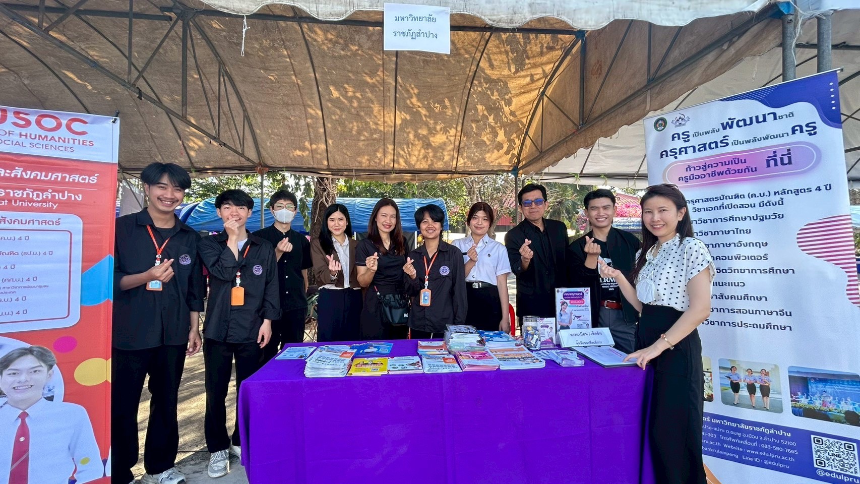 เมื่อวันที่ 13 กุมภาพันธ์ 2569 อ.อัจฉริยา ครุธาโรจน์ ผู้ช่วยอธิการบดีด้านวิเทศสัมพันธ์ พร้อมด้วย ผศ.ปวีณา งามประภาสม อาจารย์สังกัดสาขาวิชาการพัฒนาชุมชน ผศ.เกียรติสุดา โสดามรรค อาจารย์สังกัดสาขาวิชานิติศาสตร์ อ.ณธษา ตั้งชัยวรรณา อ.ณธษา ตั้งชัยวรรณา อาจารย์สังกัดสาขาวิชาภาษาจีน อ.ปฏิรูป สุภัทรดิลกกุล อาจารย์สังกัดสาขาวิชาดนตรีศึกษา คณะมนุษยศาสตร์และสังคมศาสตร์ และ อ.เกษตร วงศ์อุปราช หัวหน้างานประชาสัมพันธ์และสารสนเทศ คณะครุศาสตร์ ร่วมจัดนิทรรศการงานวันวิชาการ เปิดบ้านเตรียมอุดมศึกษาพัฒนาการเขลางค์นคร 2568 “สร้างโอกาส พัฒนาศักยภาพ สู่เป้าหมายของนักเรียน ด้านความเป็นเลิศทางวิชาการและคณะธรรม” ณ โรงเรียนเตรียมอุดมศึกษาพัฒนาการเขลางค์นคร อำเภอเมือง จังหวัดลำปาง
