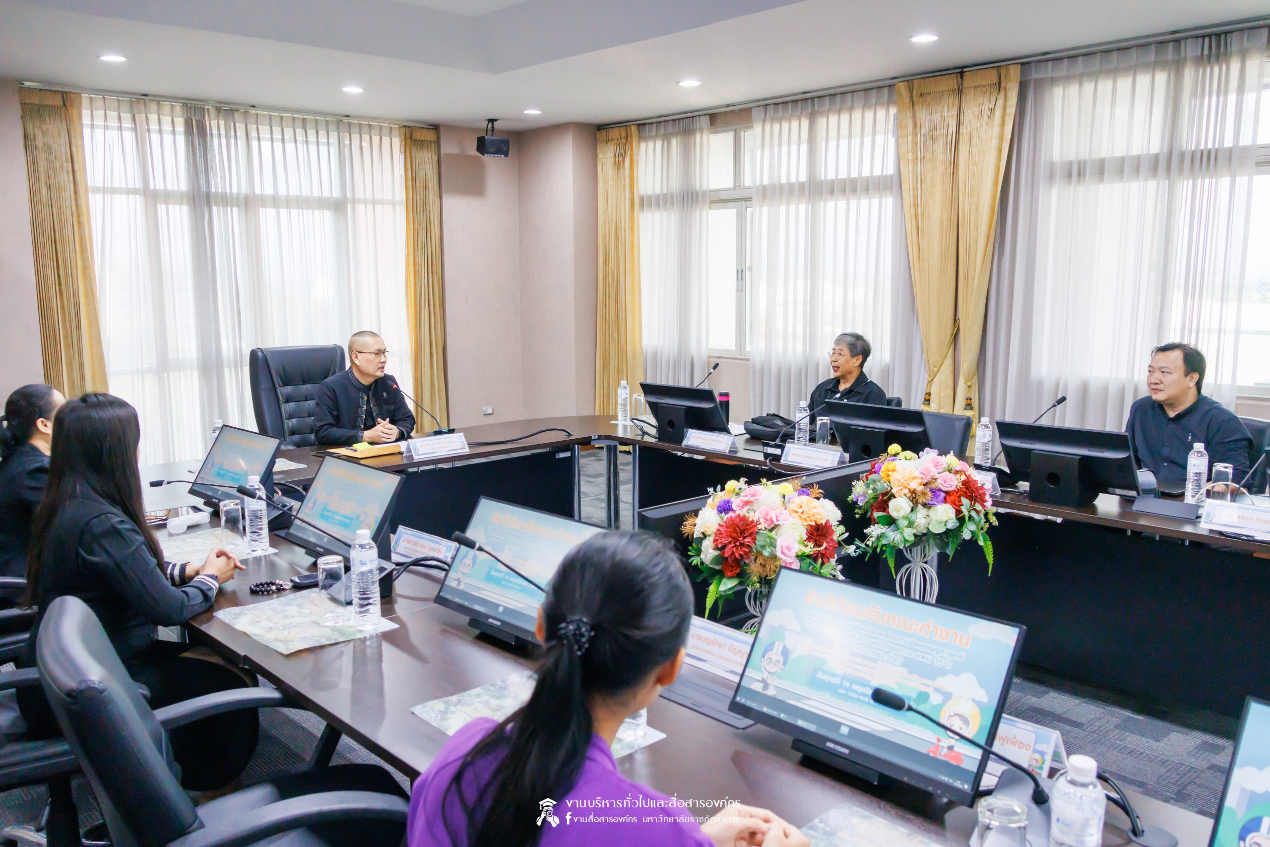 รศ.ดร.ปริเยศ สิทธิสรวง รองอธิการบดีฝ่ายบริหาร มหาวิทยาลัยราชภัฏลำปาง พร้อมด้วย รศ.วิไลลักษณ์ พรมเสน รองอธิการบดีฝ่ายวิจัยและวิชาการต่างประเทศ น.ส. ธิดารัตน์ ไชยยาสืบ รักษาการหัวหน้าสำนักงานผู้อำนวยการ สำนักศิลปะและวัฒนธรรม นางบุญรักษา ปัญญายืน นักวิชาการศึกษา ปฏิบัติการ สังกัดกองพัฒนานักศึกษา และนักศึกษามหาวิทยาลัยราชภัฏลำปาง ร่วมรับฟังการสร้างความเข้าใจ เครื่องมือและหารือแนวทางการเก็บรวมรวบข้อมูล “โครงการประเมินผลลัพธ์และผลกระทบเชิงเศรษฐศาสตร์ของแผนสร้างเสริมเข้าใจสุขภาวะแผน 17 ระหว่างปี 2563 – 2567” จาก อ.ดร.สิทธิณัฐ ประพุทธนิติสาร พร้อมด้วย ผศ.ดร.เก นันทะเสน รศ.ดร.วราภรณ์ นันทะเสน ดร.โสรักษ์ ดิษฐประยูร น.ส.สุรีรัตน์ จันทร และนายธีรภาพ ปัทมรังสรรค์ นักวิจัยโครงการ สังกัดศูนย์ศึกษาการใช้ที่ดินฯ คณะสังคมศาสตร์ มหาวิทยาลัยเชียงใหม่ เมื่อวันที่ 14 พฤศจิกายน 2568 ณ ห้องประชมุโอฬารฤทธิ์ ชั้น 10 อาคารโอฬาร โรจน์หิรัญ มหาวิทยาลัยราชภัฏลำปาง