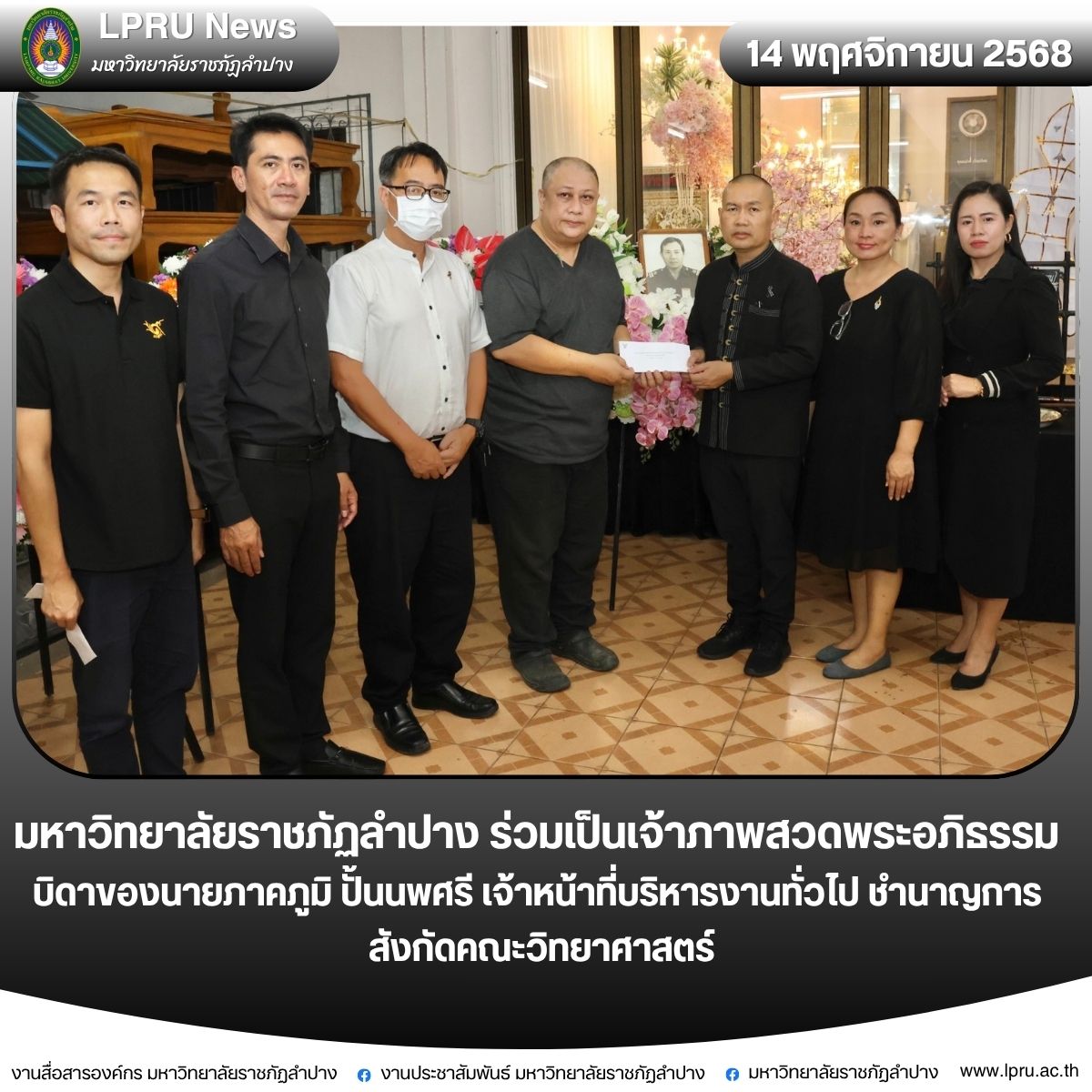 มร.ลป. ร่วมเป็นเจ้าภาพสวดพระอภิธรรม บิดาของนายภาคภูมิ ปั้นนพศรี เจ้าหน้าที่บริหารงานทั่วไป ชำนาญการ สังกัดคณะวิทยาศาสตร์
