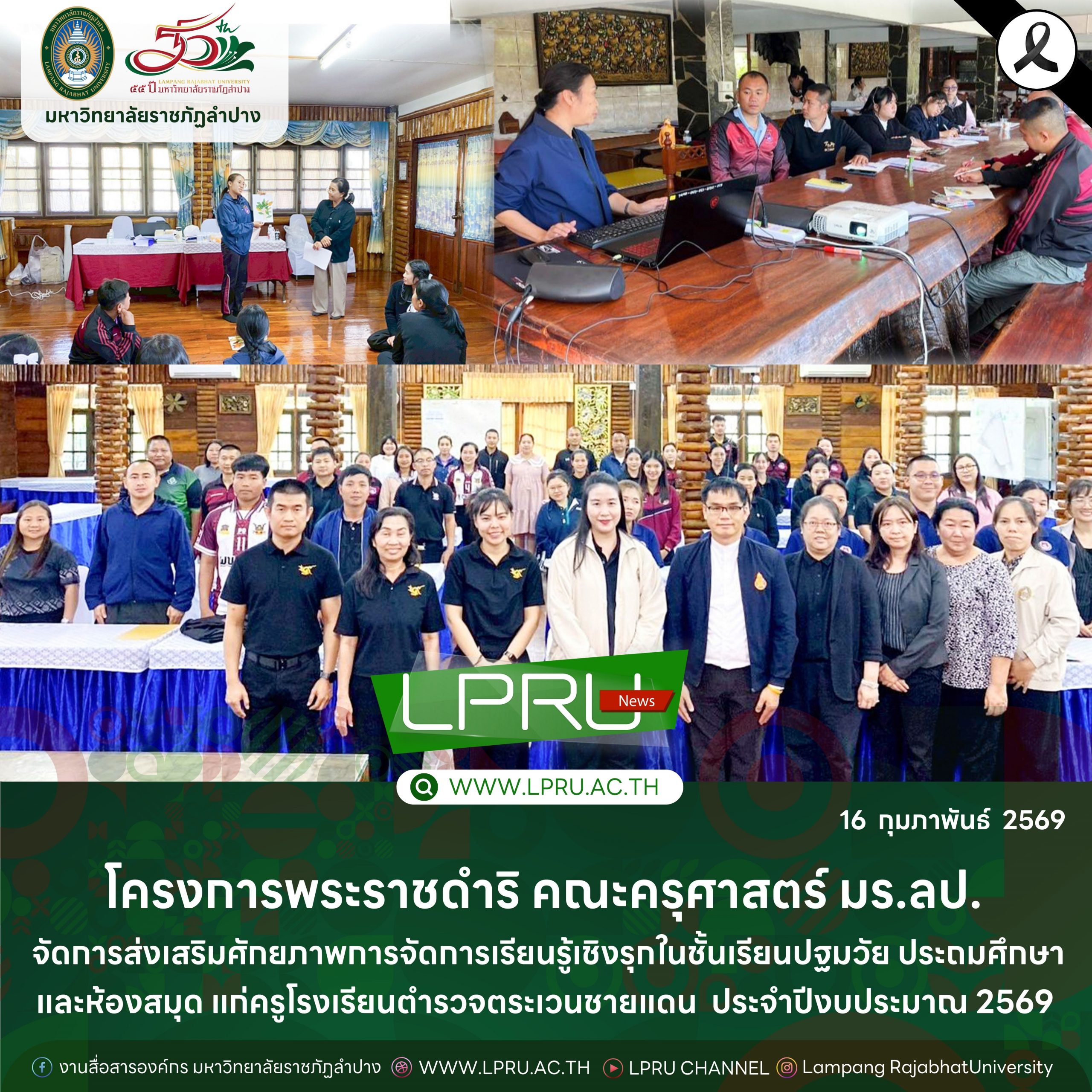 โครงการพระราชดำริ คณะครุศาสตร์ มร.ลป. จัดการส่งเสริมศักยภาพการจัดการเรียนรู้เชิงรุกในชั้นเรียนปฐมวัย ประถมศึกษา และห้องสมุด แก่ครูโรงเรียนตำรวจตระเวนชายแดน ประจำปีงบประมาณ 2569