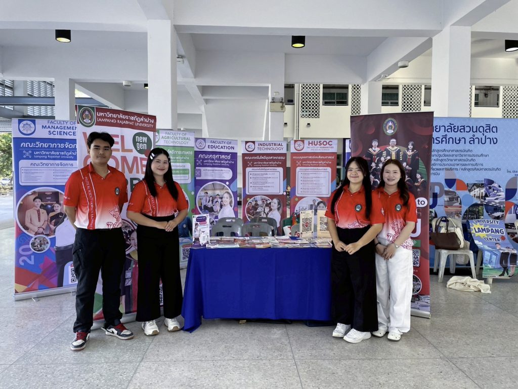 อ.เกษตร วงศ์อุปราช หัวหน้างานประชาสัมพันธ์และสารสนเทศ คณะครุศาสตร์ พร้อมด้วย ผศ.ดร.เหนือขวัญ บัวเผื่อน อาจารย์สังกัดสาขาวิชาภาษาต่างประเทศฯ อ.อรอุมา จีระกมล อาจารย์สังกัดสาขาวิชาการเมืองการปกครอง อ.สุวรรณี เครือพึ่ง อาจารย์สังกัดสาขาวิชาภาษาไทย คณะครุศาสตร์ อ.ศิญาพัฒน์ เสนจันทร์ฒิไชย อาจารย์สังกัดสาขาวิชาวิศวกรรมซอฟต์แวร์ และนักศึกษามหาวิทยาลัยราชภัฏลำปาง ร่วมจัดนิทรรศการกิจกรรม ACL Open House 2025 และประชาสัมพันธ์หลักสูตร การรับสมัครนักศึกษา ประจำปีการศึกษา 2569 เมื่อวันที่ 17 มกราคม 2569 ณ โรงเรียนอัสสัมชัญลำปาง อำเภอเมือง จังหวัดลำปาง