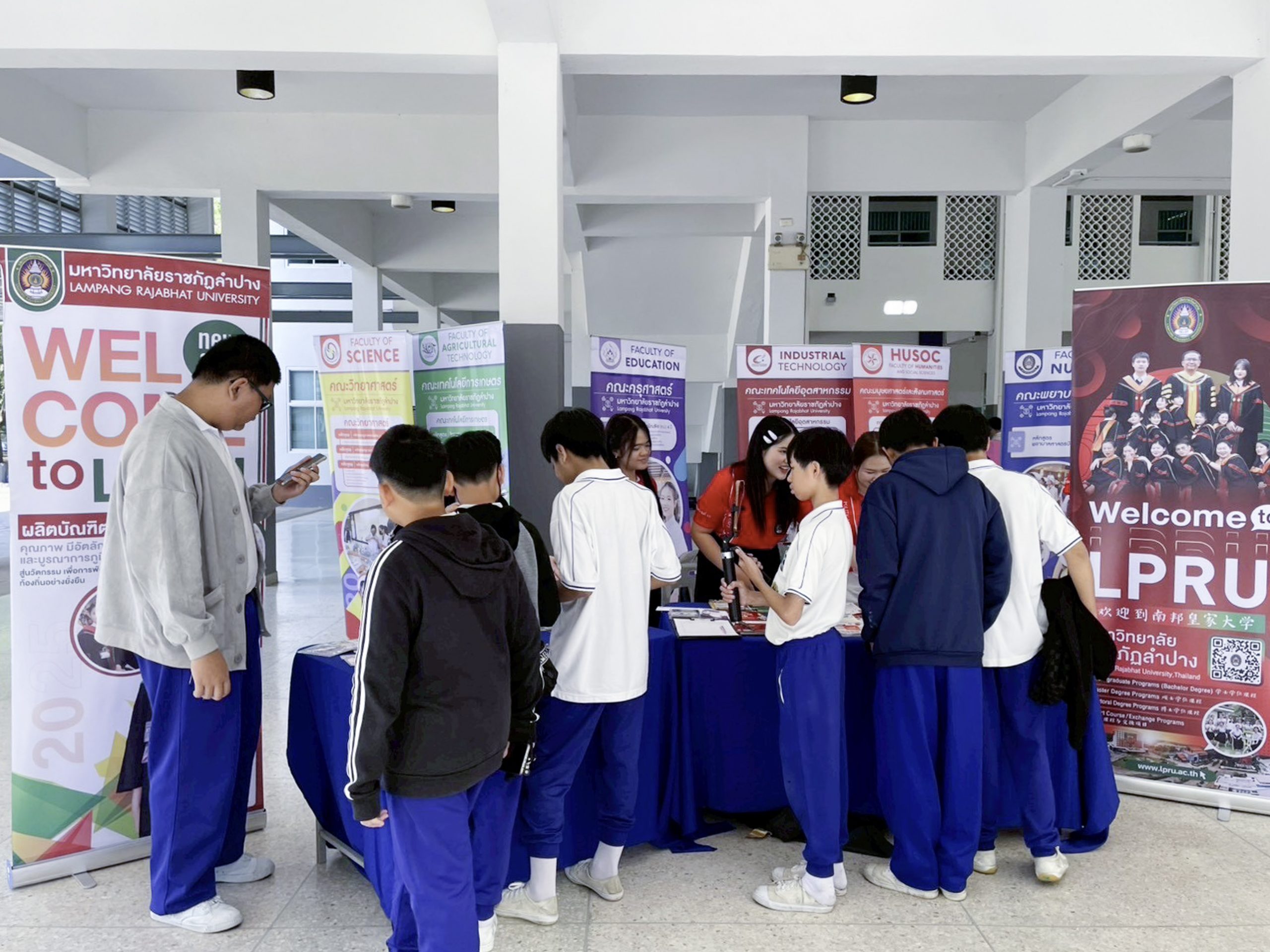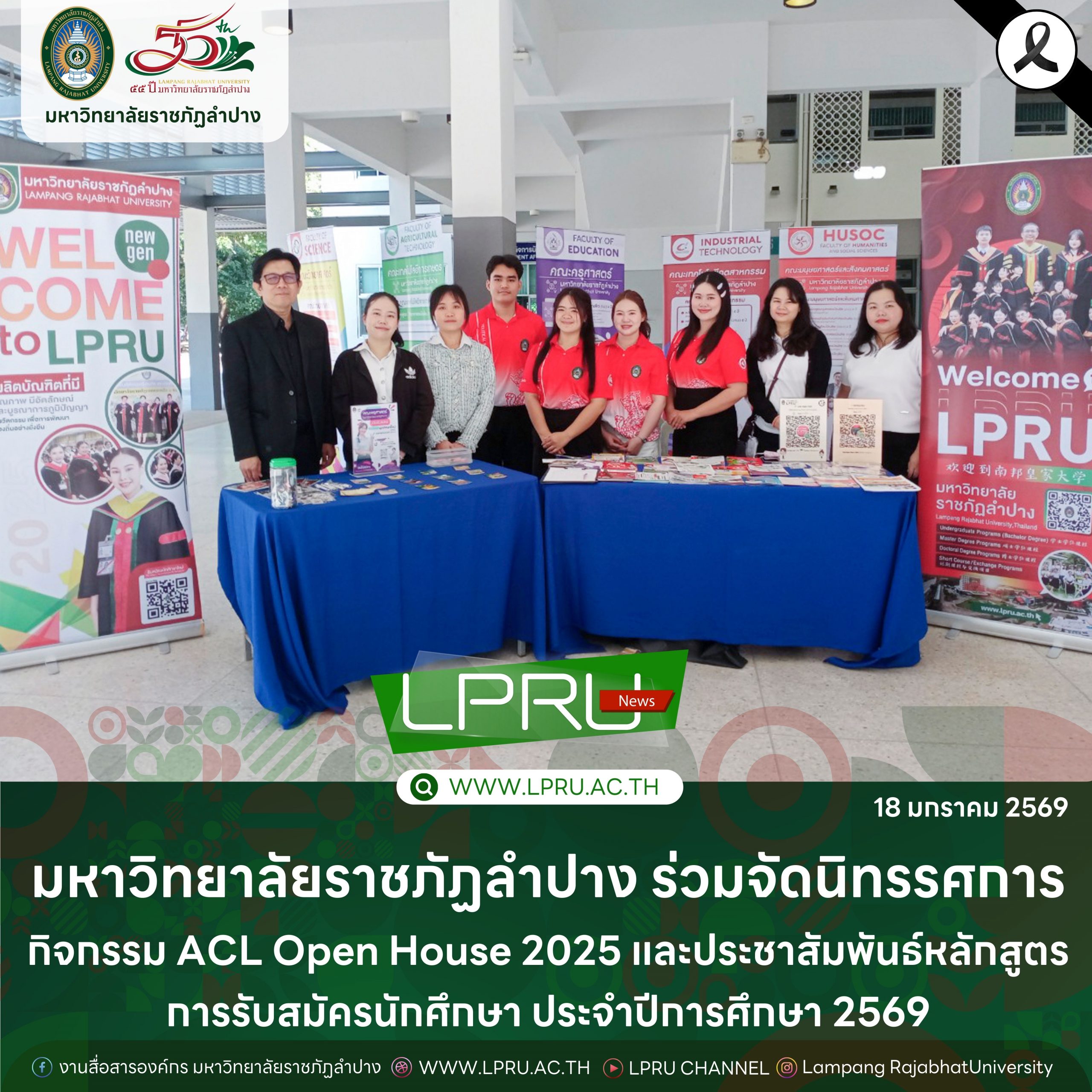 อ.เกษตร วงศ์อุปราช หัวหน้างานประชาสัมพันธ์และสารสนเทศ คณะครุศาสตร์ พร้อมด้วย ผศ.ดร.เหนือขวัญ บัวเผื่อน อาจารย์สังกัดสาขาวิชาภาษาต่างประเทศฯ อ.อรอุมา จีระกมล อาจารย์สังกัดสาขาวิชาการเมืองการปกครอง อ.สุวรรณี เครือพึ่ง อาจารย์สังกัดสาขาวิชาภาษาไทย คณะครุศาสตร์ อ.ศิญาพัฒน์ เสนจันทร์ฒิไชย อาจารย์สังกัดสาขาวิชาวิศวกรรมซอฟต์แวร์ และนักศึกษามหาวิทยาลัยราชภัฏลำปาง ร่วมจัดนิทรรศการกิจกรรม ACL Open House 2025 และประชาสัมพันธ์หลักสูตร การรับสมัครนักศึกษา ประจำปีการศึกษา 2569 เมื่อวันที่ 17 มกราคม 2569 ณ โรงเรียนอัสสัมชัญลำปาง อำเภอเมือง จังหวัดลำปาง