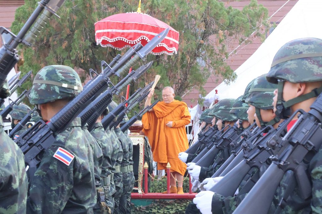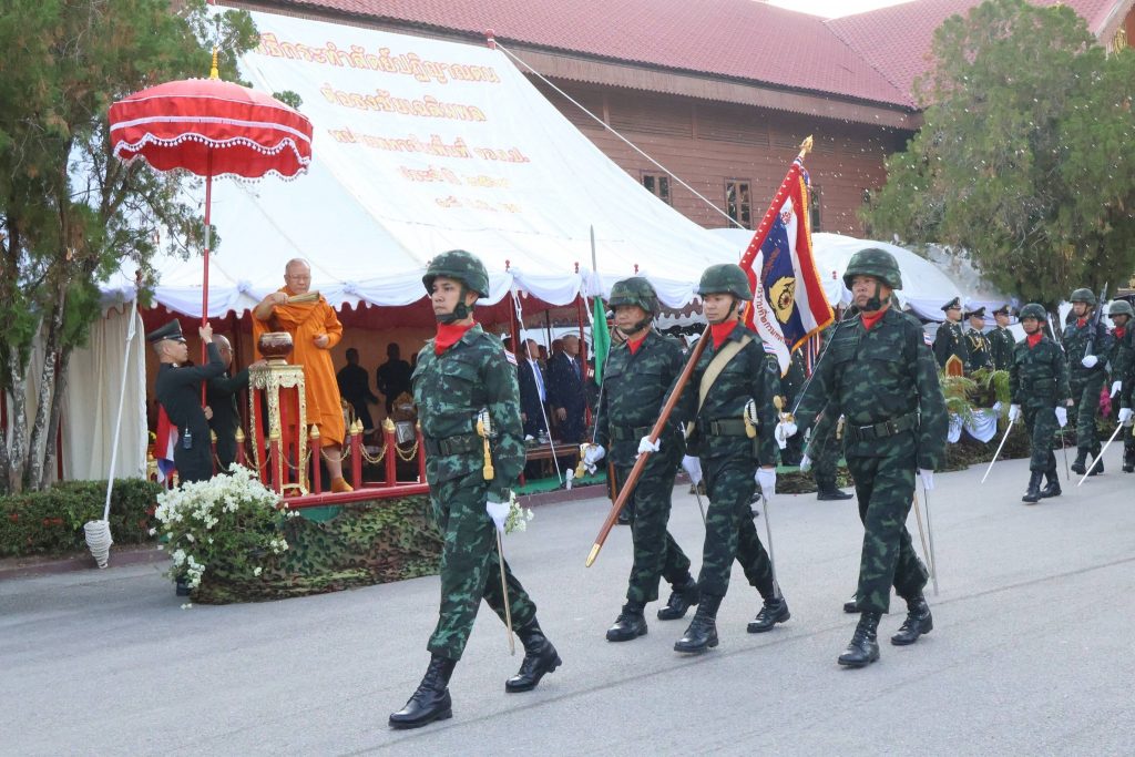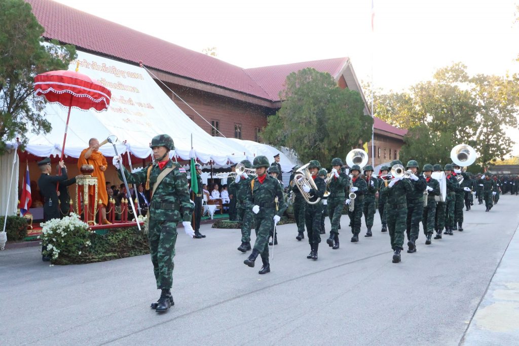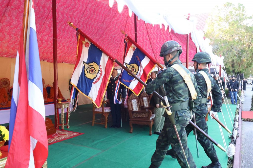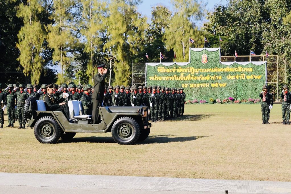 ในพิธีได้รับเมตตาธรรมจากพระจินดารัตนพร เจ้าคณะจังหวัดลำปาง เป็นประธานฝ่ายสงฆ์ประกอบพิธีทางศาสนา เพื่อความเป็นสิริมงคลแก่กำลังพลและผู้เข้าร่วมพิธี โดยผู้บัญชาการมณฑลทหารบกที่ 32 อ่านสาส์นโอวาทของผู้บัญชาการทหารสูงสุด เน้นย้ำถึงบทบาทหน้าที่ ความเสียสละ และอุดมการณ์ของกำลังพลกองทัพไทย พร้อมนำกำลังพลกล่าวถวายสัตย์ปฏิญาณตนต่อธงชัยเฉลิมพล เพื่อแสดงออกถึงความจงรักภักดีต่อชาติ ศาสนา พระมหากษัตริย์ และความมุ่งมั่นตั้งใจในการปฏิบัติหน้าที่พิทักษ์รักษาเอกราช อธิปไตย และความมั่นคงของประเทศชาติอย่างเต็มกำลังความสามารถ พร้อมกันนี้ได้มีการสวนสนามของกำลังพลจากหน่วยทหารในพื้นที่จังหวัดลำปาง แสดงถึงความพร้อมเพรียง ความมีระเบียบวินัย และความสามัคคี สร้างความสง่างาม ความประทับใจ และความภาคภูมิใจแก่ผู้เข้าร่วมพิธีเป็นอย่างยิ่ง