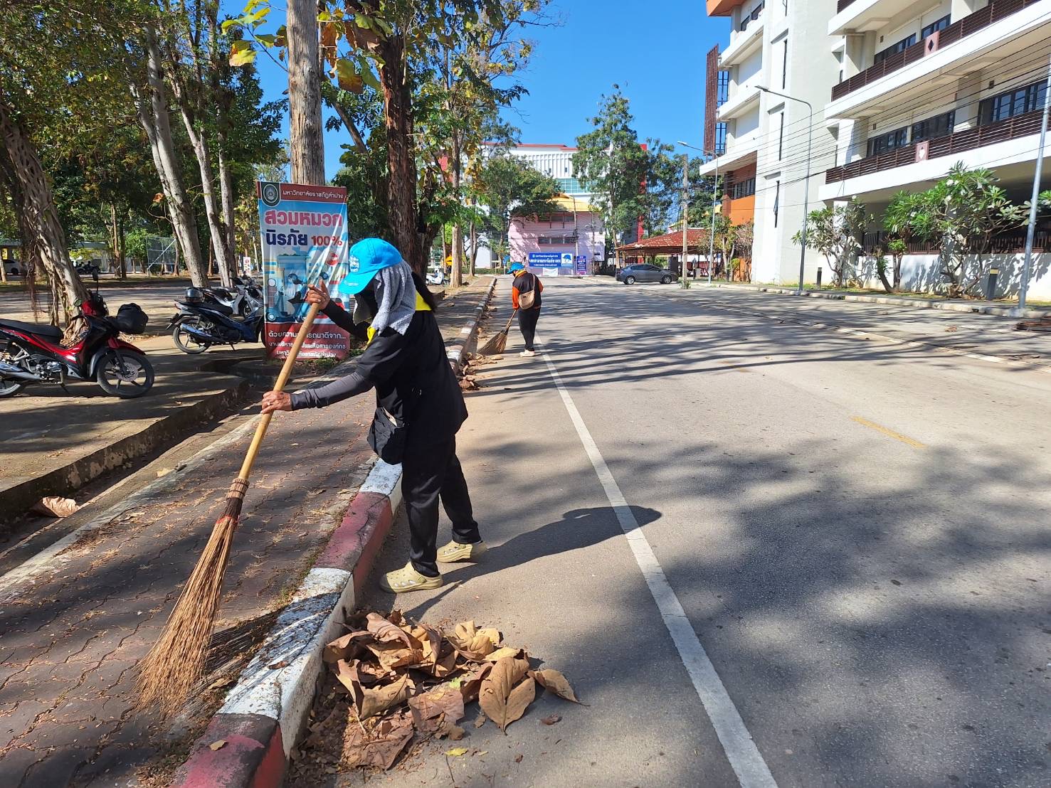 สมาชิกจิตอาสาสังกัดมหาวิทยาลัยราชภัฏลำปาง ได้ร่วมกันทำกิจกรรมจิตอาสา พัฒนาภูมิทัศน์ภายในมหาวิทยาลัย ทำความสะอาด จัดเก็บขยะ ใบไม้ คัดแยกขยะอย่างเป็นระเบียบ เมื่อวันที่ 19 มกราคม 2569 บริเวณประตูทางเข้าประตู 2 จนถึงถนนบริเวณหอพักหญิงลีลาวดี มหาวิทยาลัยราชภัฏลำปาง