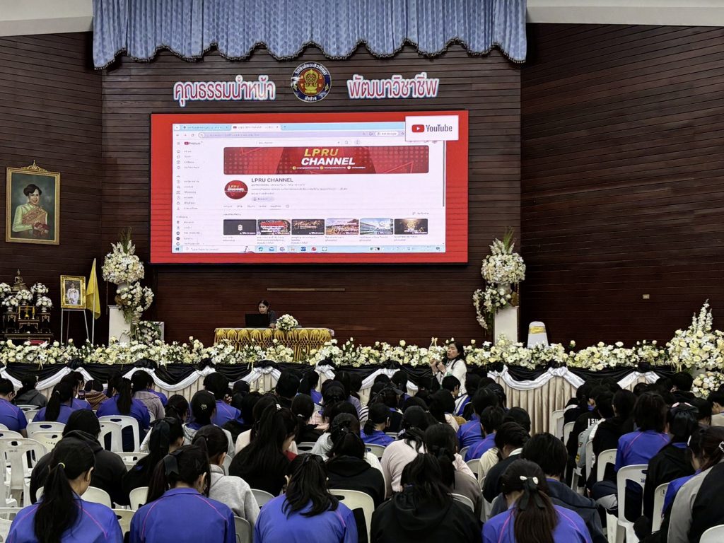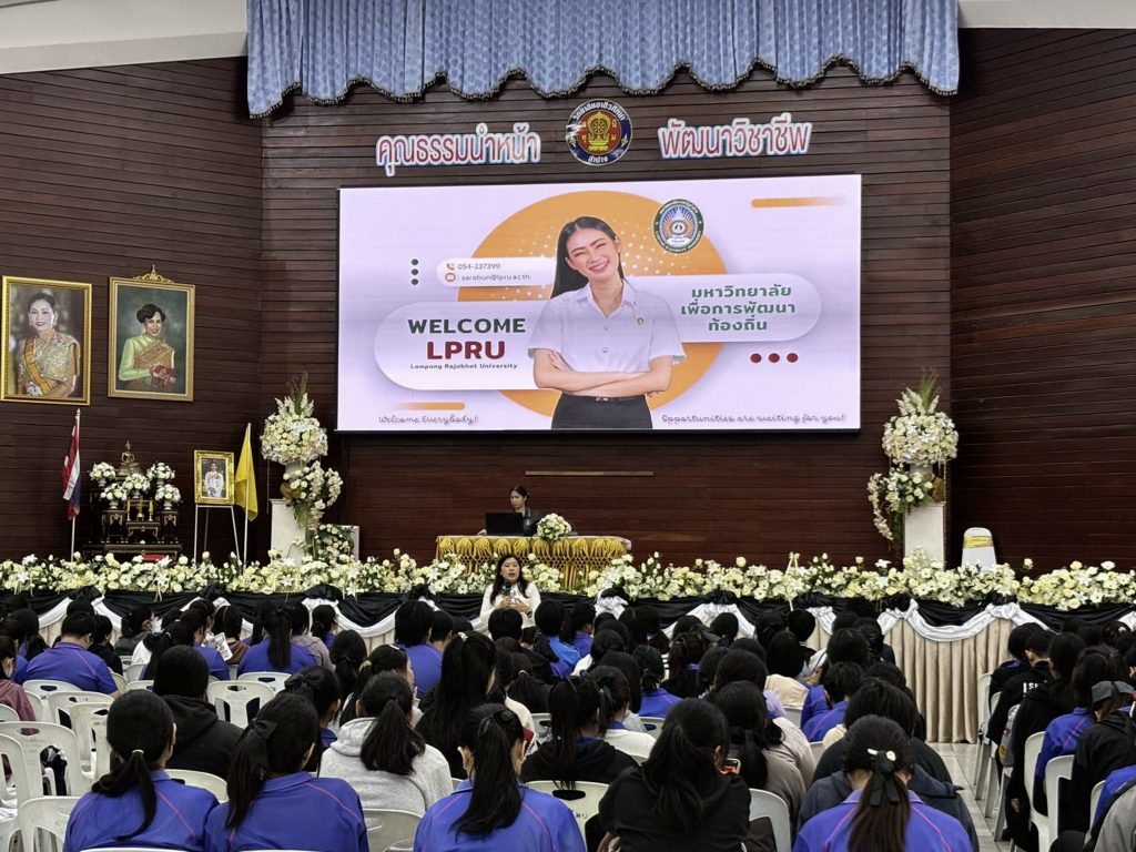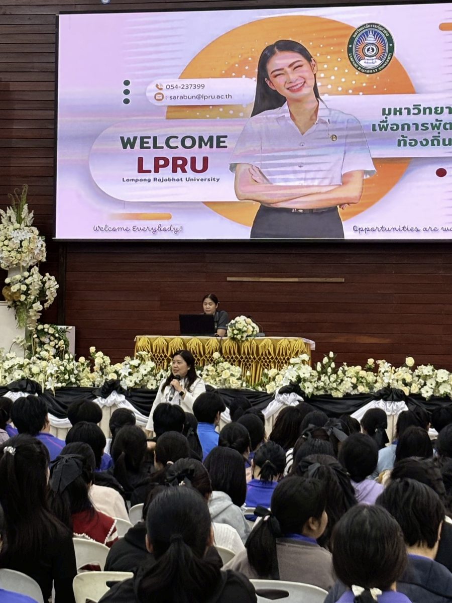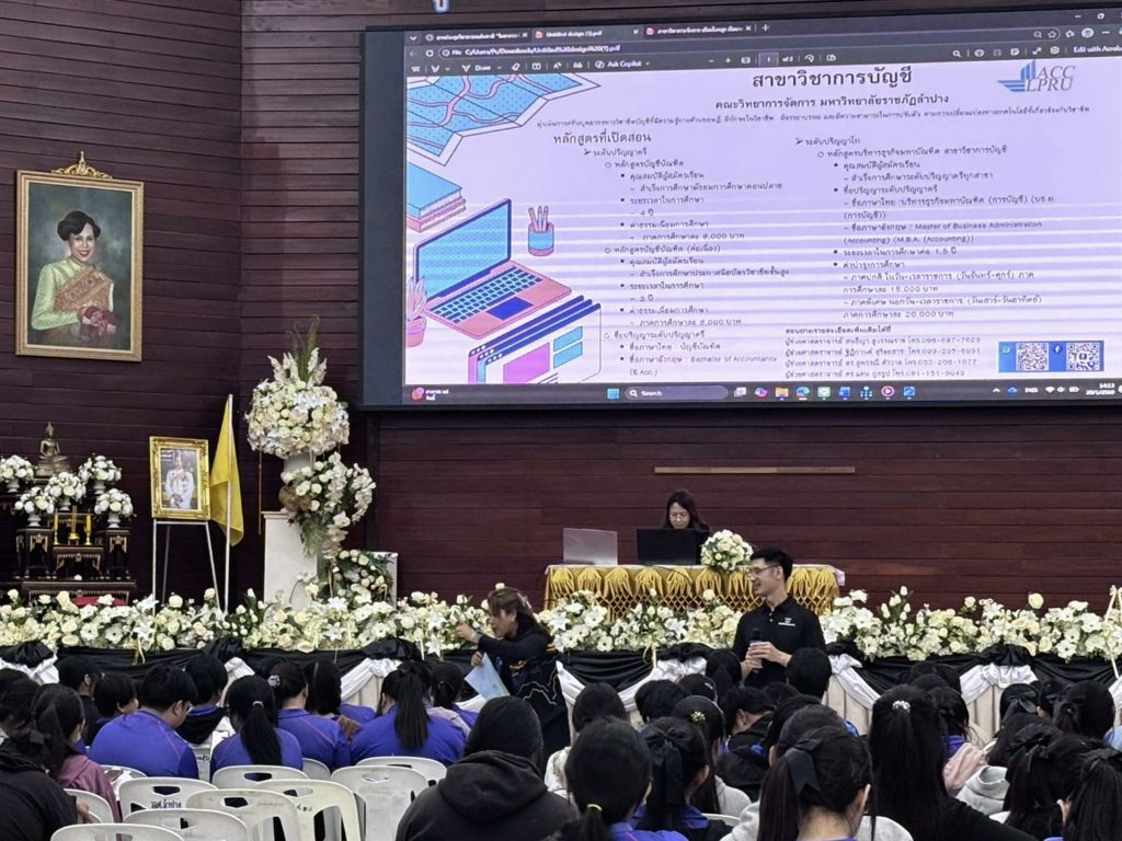 อ.อัจฉริยา ครุธาโรจน์ ผู้ช่วยอธิการบดีด้านวิเทศสัมพันธ์ มหาวิทยาลัยราชภัฏลำปาง พร้อมด้วย ผศ.ดร.อัจฉรา เมฆสุวรรณ ผศ.ดร.ขจรศักดิ์ วงศ์วิราช อาจารย์สังกัดสาขาวิชาการจัดการ ผศ.ดร.จารุวรรณ ลิมป์ไพบูลย์ อ.ออมทอง พัฒนพงษ์ อาจารย์สังกัดสาขาวิชาการจัดการธุรกิจดิจิทัล ผศ.ดร.แดน กุลรูป ผศ.ดร.จีราภรณ์ พงศ์พันธุ์พัฒนะ อาจารย์สังกัดสาขาวิชาการบัญชี คณะวิทยาการจัดการ บุคลากร และนักศึกษามหาวิทยาลัยราชภัฏลำปาง ร่วมประชาสัมพันธ์หลักสูตรการรับสมัครนักศึกษาใหม่ ระดับปริญญาตรี ปีการศึกษา 2569 ให้แก่ นักศึกษาระดับ ปวส. ในพิธีปัจฉิมนิเทศวิทยาลัยอาชีวศึกษาลำปาง เมื่อวันที่ 20 มกราคม 2569 ณ อาคารหอประชุมชั้น 2 วิทยาลัยอาชีวศึกษาลำปาง