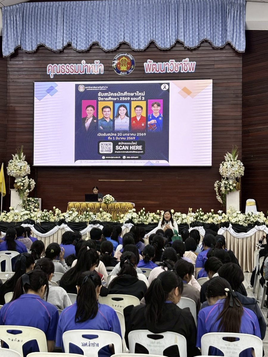 มร.ลป. ร่วมประชาสัมพันธ์หลักสูตรการรับสมัครนักศึกษาใหม่ ปีการศึกษา 2569 ในพิธีปัจฉิมนิเทศวิทยาลัยอาชีวศึกษาลำปาง