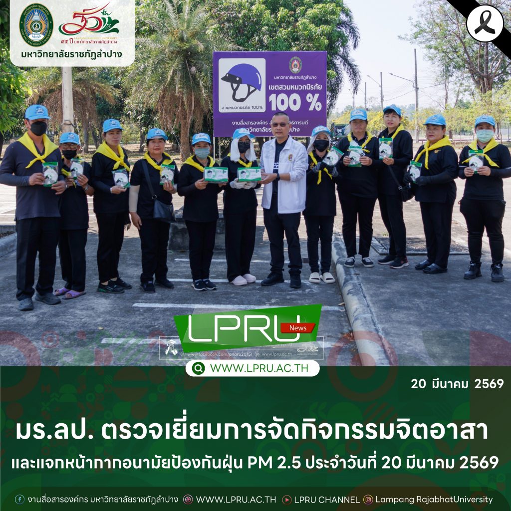 มร.ลป. ตรวจเยี่ยมการจัดกิจกรรมจิตอาสา และแจกหน้ากากอนามัยป้องกันฝุ่น PM 2.5 ประจำวันที่ 20 มีนาคม 2569