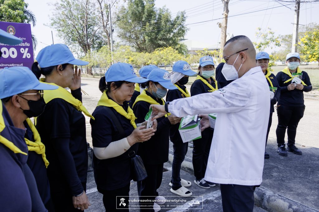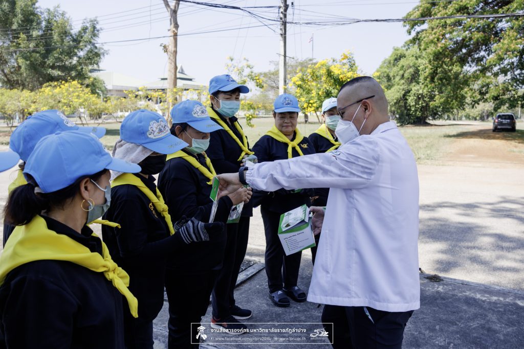การตรวจเยี่ยมในครั้งนี้ เพื่อส่งเสริมพร้อมแนะนำให้บุคลากรใช้หน้ากากอนามัย ป้องกันฝุ่น PM 2.5 ลดความเสี่ยงต่อสุขภาพ และป้องกันโรคระบบทางเดินหายใจ จากสภาพอากาศมลพิษปกคลุมพื้นที่เนื่องจากสถานการณ์ไฟป่า ภายในพื้นที่จังหวัดลำปาง โดยสมาชิกจิตอาสา สังกัดมหาวิทยาลัยราชภัฏลำปาง ได้ร่วมกิจกรรมจิตอาสาพัฒนาภูมิทัศน์ บริเวณถนนด้านหน้าสนามกีฬากลาง จนถึงถนนด้านหลังอาคารสำนักงานอธิการบดี และลานจอดรถข้างโรงยิมเนเซียม มหาวิทยาลัยราชภัฏลำปาง