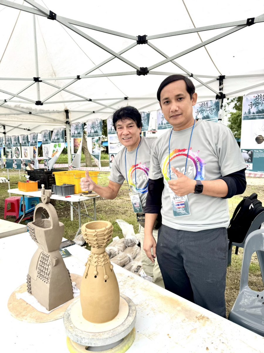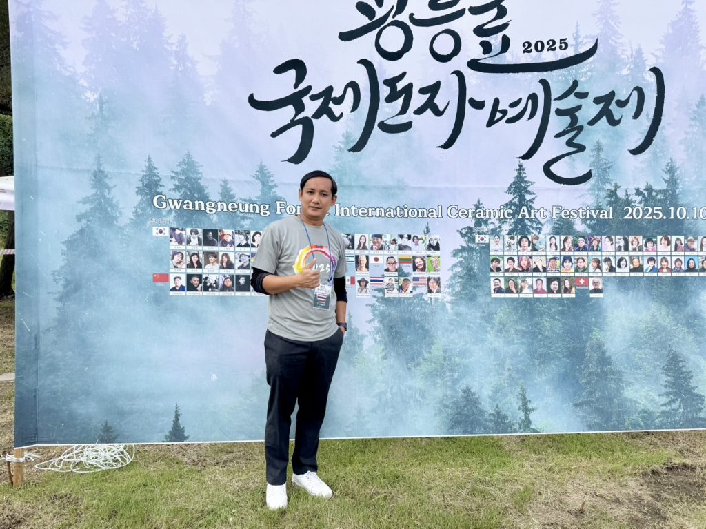 ผศ.เจษฎา ทองสุข ผู้อำนวยการสำนักศิลปะและวัฒนธรรม มหาวิทยาลัยราชภัฏลำปาง ร่วมอบรมเชิงปฏิบัติการและแสดงผลงานเครื่องปั้นดินเผาระดับนานาชาติ ในงาน 2025 Gwangneung Forest International Ceramic Art Festival. 2025 International Woodkiln and Raku Firing Workshop และ 2025 Namyangju International Art Festival เมื่อระหว่างวันที่ 9 – 18 ตุลาคม 2568 ณ เมืองนัมยางจู สาธารณรัฐเกาหลี