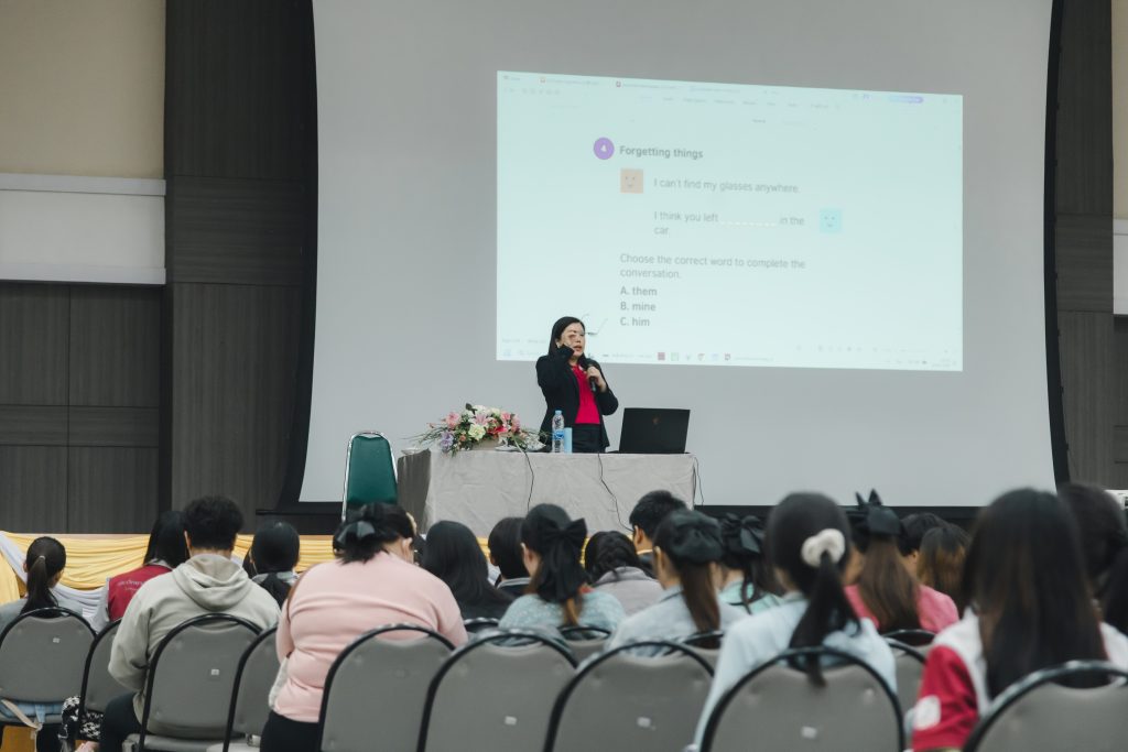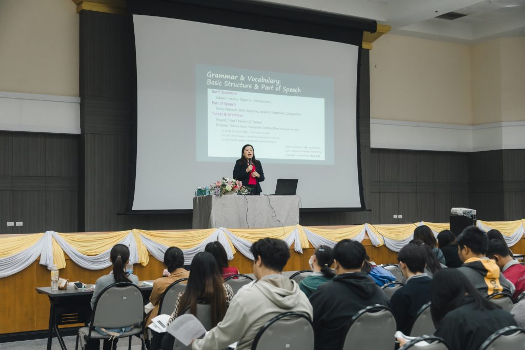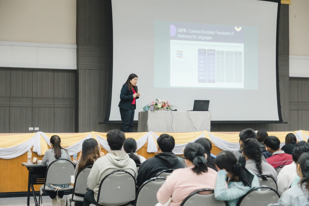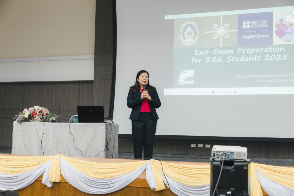 กิจกรรมในครั้งนี้จัดขึ้นเพื่อ เสริมสร้างทักษะภาษาอังกฤษในด้านการฟัง พูด อ่าน เขียน และเพื่อให้นักศึกษาสามารถพัฒนาทักษะภาษาอังกฤษของตนเอง ตามแนวทาง Common European Framework of Reference for Languages (CEFR) ให้เพิ่มสูงขึ้นจนถึงระดับ Upper Intermediate B2 โดยมี อ.อัจฉริยา ครุธาโรจน์ ผู้ช่วยอธิการบดีด้านวิเทศสัมพันธ์ เป็นวิทยากรบรรยาย ซึ่งมีนักศึกษาหลักสูตรครุศาสตรบัณฑิต ชั้นปีที่ 3 สาขาวิชาภาษาอังกฤษ นักศึกษาหลักสูตรครุศาสตรบัณฑิต ชั้นปีที่ 4 สาขาวิชาการศึกษาปฐมวัย สาขาวิชาภาษาไทย สาขาวิชาคอมพิวเตอร์ สาขาวิชาจิตวิทยาการศึกษาและการแนะแนว สาขาวิชาวิทย์ทั่วไป และสาขาวิชาคณิตศาสตร์ คณะวิทยาศาสตร์ เข้าร่วมกิจกรรมกว่า 200 คน ซึ่งจะมีกำหนดการอบรมในรุ่นที่ 2 วันที่ 21 ตุลาคม 2568 ต่อไป