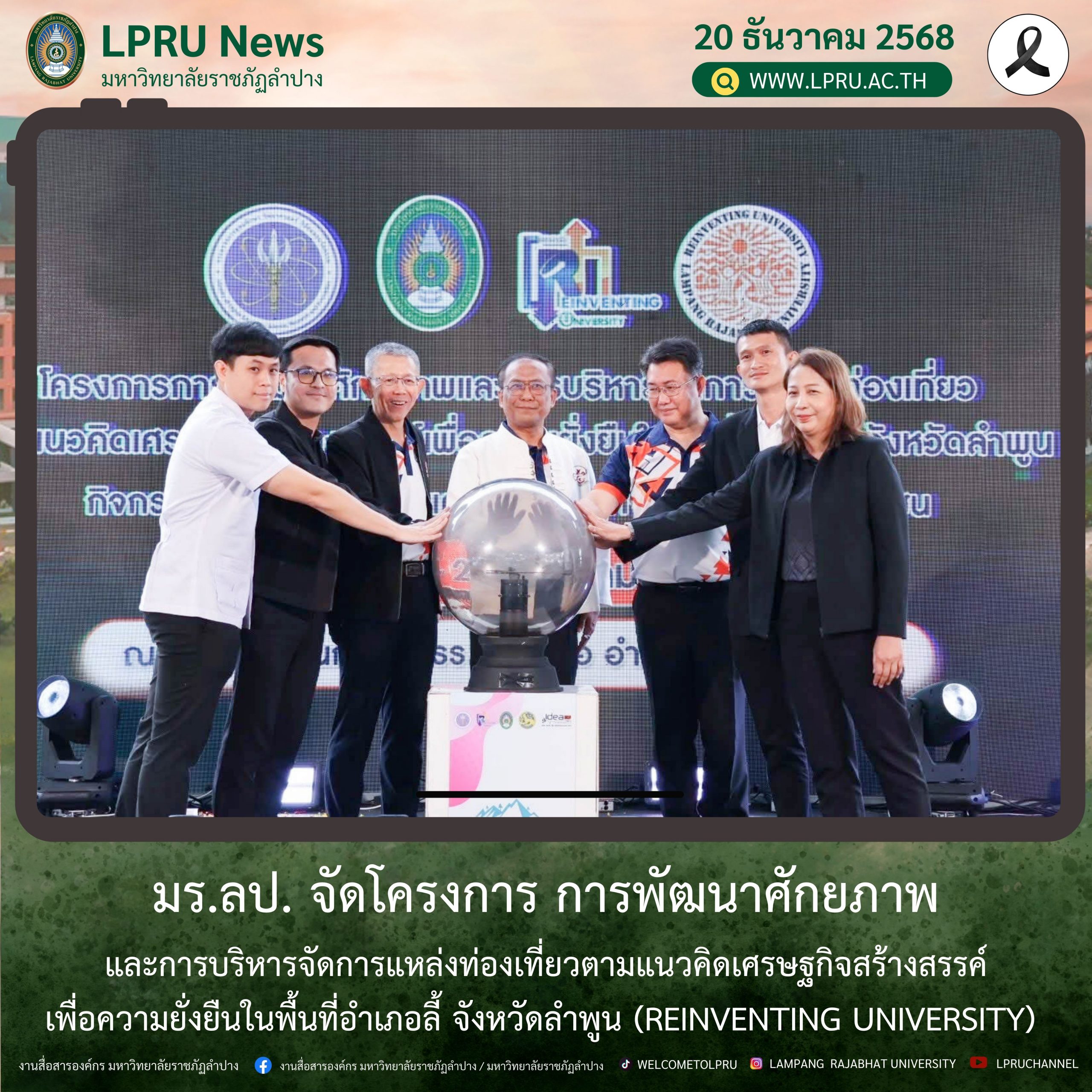 มร.ลป. จัดโครงการ “การพัฒนาศักยภาพและการบริหารจัดการแหล่งท่องเที่ยวตามแนวคิดเศรษฐกิจสร้างสรรค์เพื่อความยั่งยืนในพื้นที่อำเภอลี้ จังหวัดลำพูน” (Reinventing University)