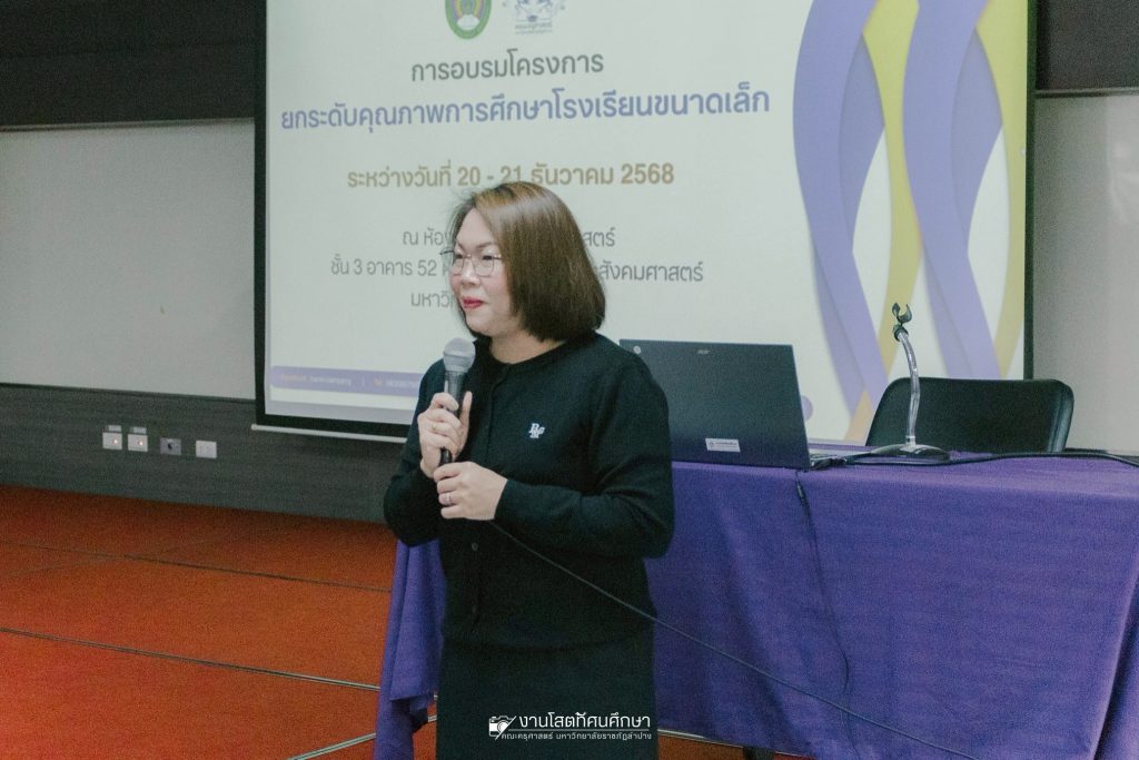ผศ.ดร.ปณตนนท์ เถียรประภากุล ผู้ช่วยคณบดีฝ่ายพัฒนาการศึกษา คณะครุศาสตร์ มหาวิทยาลัยราชภัฏลำปาง ให้การต้อนรับผู้บริหารสถานศึกษาและครูผู้สอนจากจังหวัดลำปางและจังหวัดลำพูน ในการจัดอบรมโครงการ “ยกระดับคุณภาพการศึกษาโรงเรียนขนาดเล็ก” ระหว่างวันที่ 20–21 ธันวาคม 2568 ณ ห้องประชุมประสิทธิ์ศาสตร์ ชั้น 3 และห้องประชุมวิทยาบัณฑิต ชั้น 4 อาคาร 52 คณะมนุษยศาสตร์และสังคมศาสตร์ มหาวิทยาลัยราชภัฏลำปาง