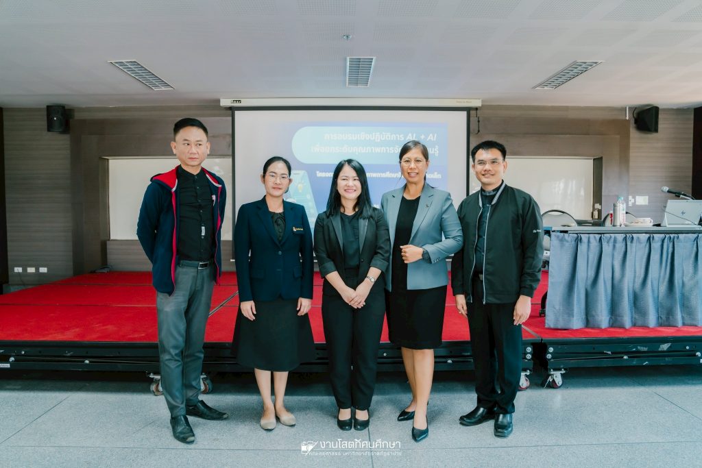 ในการนี้ ได้รับเกียรติจาก ดร.สุดาภรณ์ สืบสุติน ศึกษานิเทศก์ชำนาญการ สพม.ลำปาง ลำพูน และคณะ เป็นวิทยากรบรรยายในหัวข้อการอบรมรวมสำหรับผู้บริหารและครู เรื่อง “AI เพื่อประสิทธิภาพการบริหารและการจัดการเรียนรู้โรงเรียนขนาดเล็ก” พร้อมทั้งจัดการอบรมแยกกลุ่ม โดยกลุ่มผู้บริหารสถานศึกษาในหัวข้อ “การบริหารจัดการคุณภาพการศึกษาโดยใช้นวัตกรรมเป็นฐาน” และกลุ่มครูผู้สอนในหัวข้อ “AL+AI เพื่อยกระดับคุณภาพการจัดการเรียนรู้” เพื่อเสริมสร้างสมรรถนะและขับเคลื่อนการพัฒนาคุณภาพการศึกษาอย่างยั่งยืน