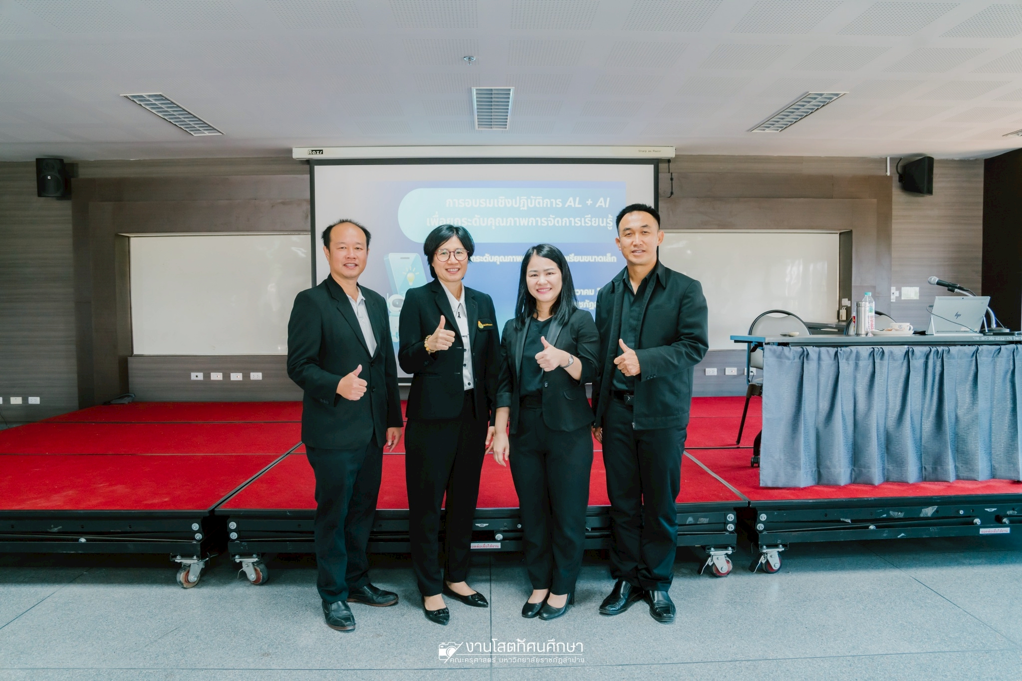 ในการนี้ ได้รับเกียรติจาก ดร.สุดาภรณ์ สืบสุติน ศึกษานิเทศก์ชำนาญการ สพม.ลำปาง ลำพูน และคณะ เป็นวิทยากรบรรยายในหัวข้อการอบรมรวมสำหรับผู้บริหารและครู เรื่อง “AI เพื่อประสิทธิภาพการบริหารและการจัดการเรียนรู้โรงเรียนขนาดเล็ก” พร้อมทั้งจัดการอบรมแยกกลุ่ม โดยกลุ่มผู้บริหารสถานศึกษาในหัวข้อ “การบริหารจัดการคุณภาพการศึกษาโดยใช้นวัตกรรมเป็นฐาน” และกลุ่มครูผู้สอนในหัวข้อ “AL+AI เพื่อยกระดับคุณภาพการจัดการเรียนรู้” เพื่อเสริมสร้างสมรรถนะและขับเคลื่อนการพัฒนาคุณภาพการศึกษาอย่างยั่งยืน