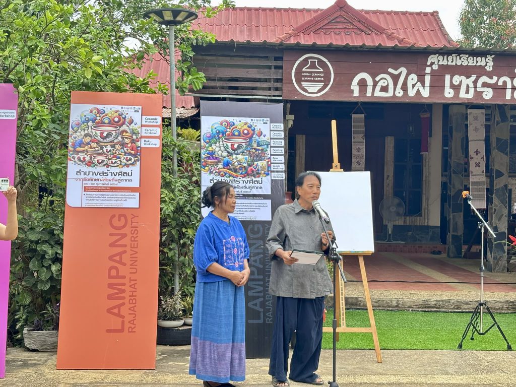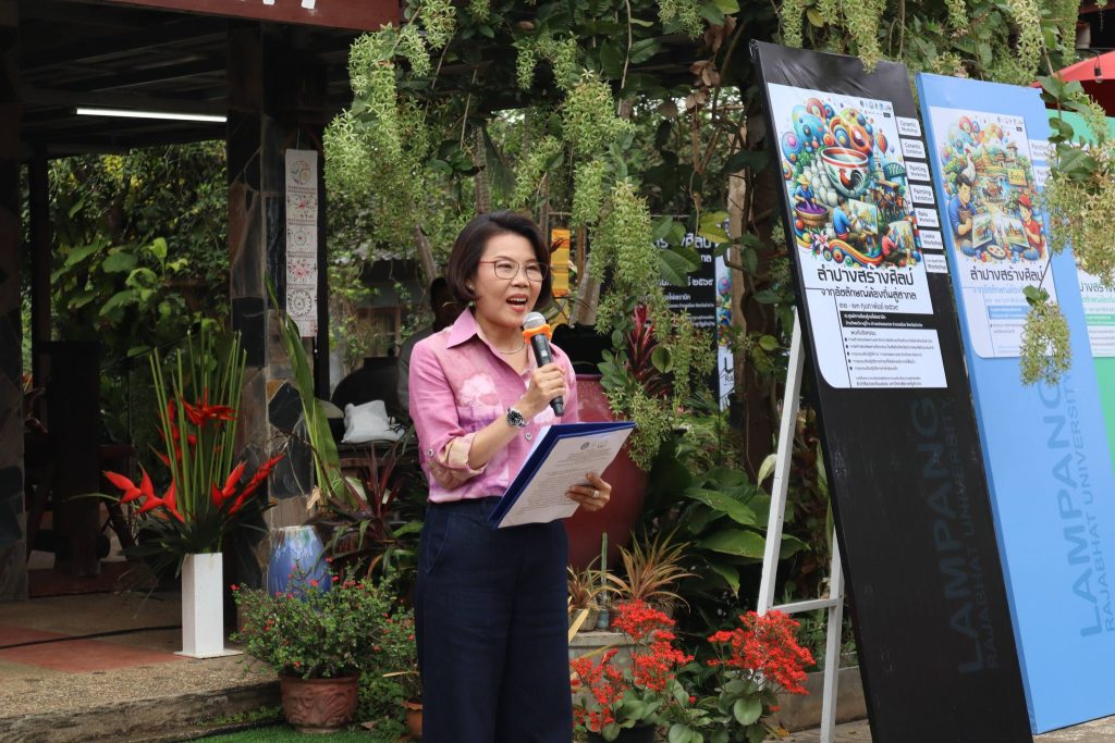 เมื่อวันที่ 22 กุมภาพันธ์ 2569 สำนักศิลปะและวัฒนธรรม มหาวิทยาลัยราชภัฏลำปาง จัดกิจกรรมอบรมเชิงปฏิบัติการ “ลำปางสร้างศิลป์จากอัตลักษณ์ท้องถิ่นสู่สากล” ณ ศูนย์เรียนรู้กอไผ่เซรามิก บ้านวังแคว้ง ตำบลปงแสนทอง อำเภอเมือง จังหวัดลำปาง โดยได้รับเกียรติจาก น.ส.ตวงรัตน์ โล่ห์สุนทร นายกองค์การบริหารส่วนจังหวัดลำปาง เป็นประธานพิธีเปิด นายพศิน ทาฟู ผู้ก่อตั้งศูนย์เรียนรู้กอไผ่เซรามิก กล่าวต้อนรับ ซึ่งมีผู้สนใจเข้าร่วมกิจกรรมอบรมกว่า 200 คน