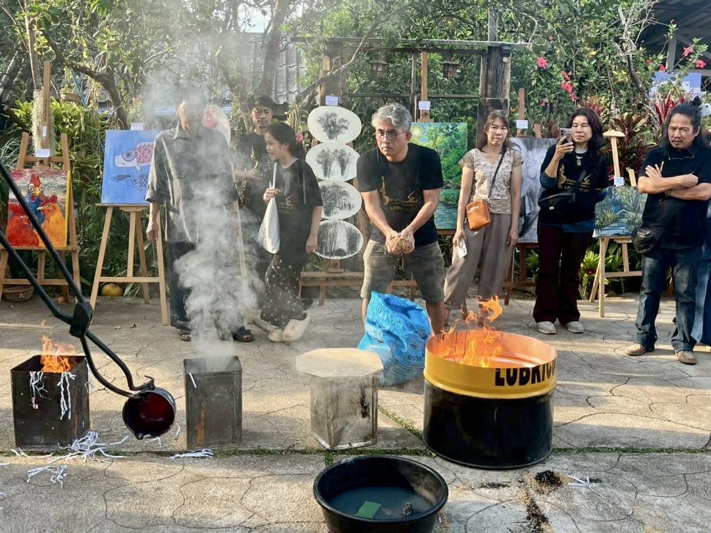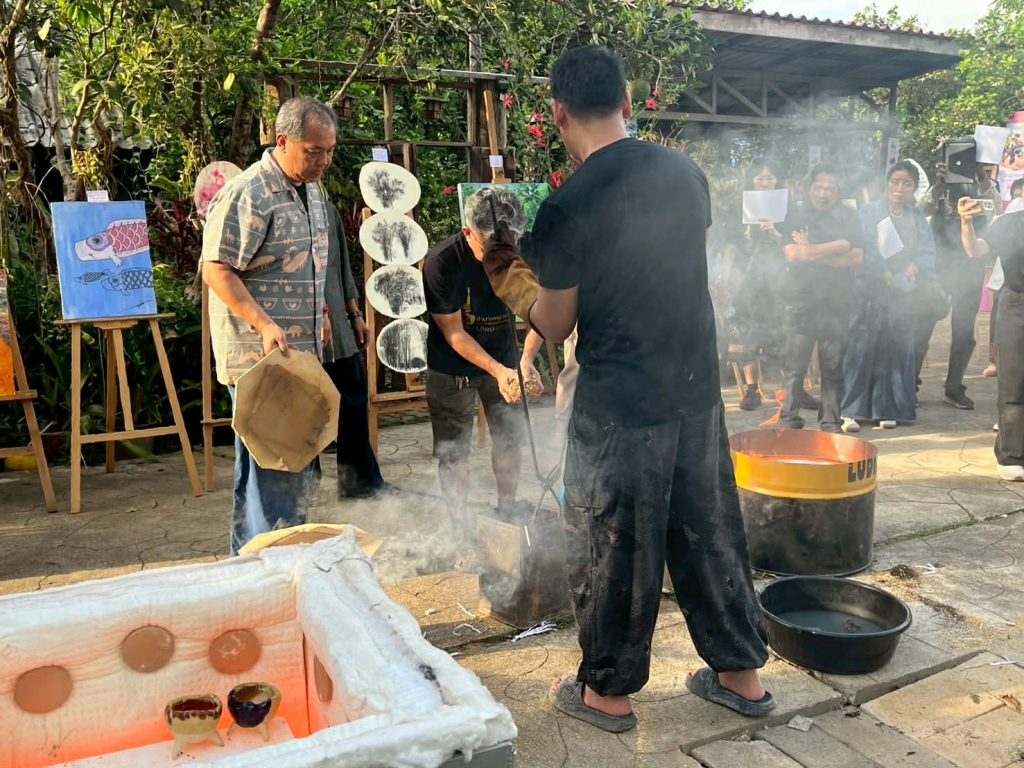 3. การเผาผลงานเซรามิกด้วยเทคนิครากุ ซึ่งเป็นเทคนิคการเผาไฟแรงสูงแบบฉับพลันที่สร้างเอฟเฟกต์เฉพาะตัว ช่วยเพิ่มเอกลักษณ์และความเป็นสากล ให้กับงานเซรามิกของชุมชน