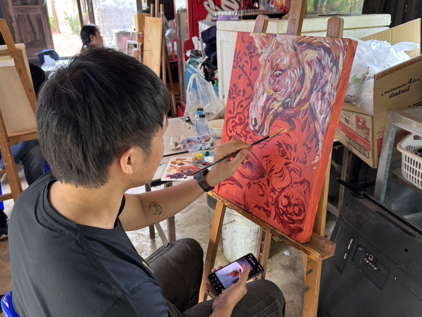 2. การสร้างสรรค์ผลงานจิตรกรรม ถ่ายทอดเทคนิคเรื่องราวชุมชนลงบนผืนผ้าใบ โดยศิลปินจังหวัดลำปาง และศิลปินระดับชาติ