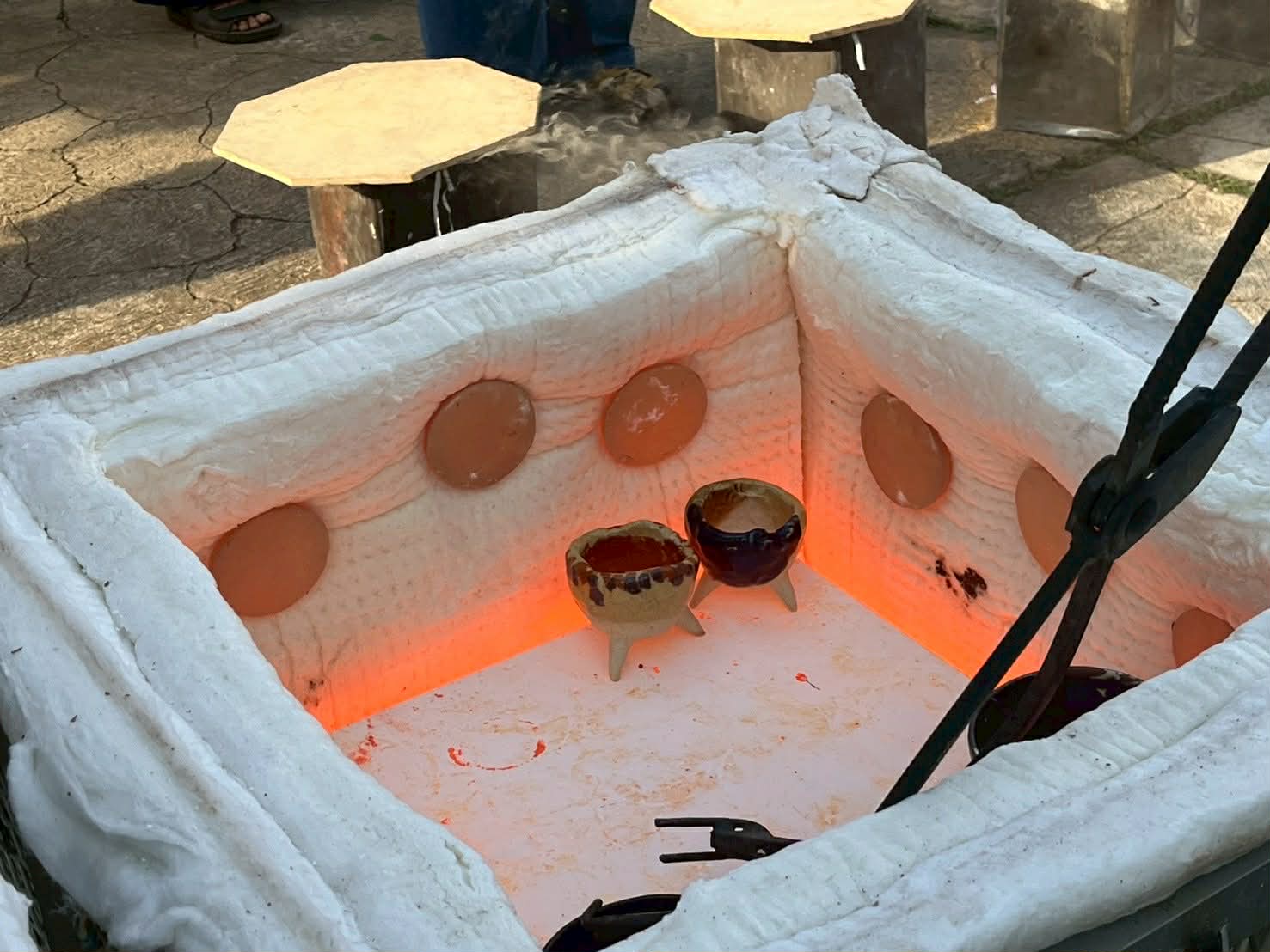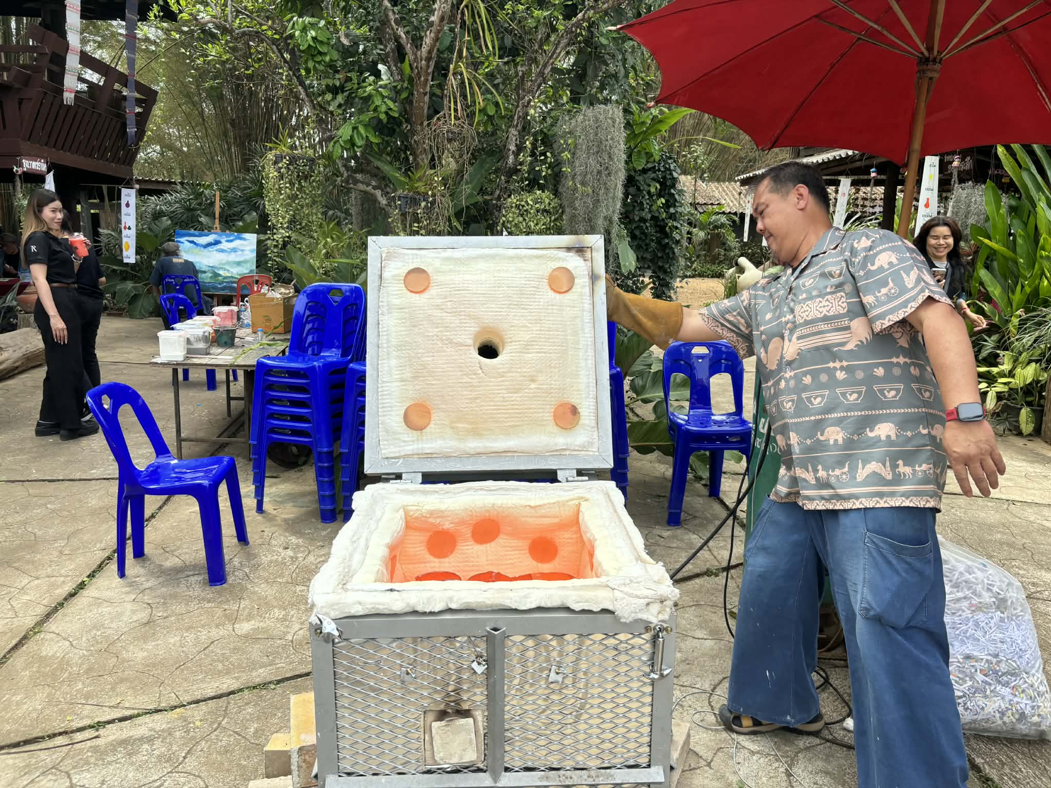 3. การเผาผลงานเซรามิกด้วยเทคนิครากุ ซึ่งเป็นเทคนิคการเผาไฟแรงสูงแบบฉับพลันที่สร้างเอฟเฟกต์เฉพาะตัว ช่วยเพิ่มเอกลักษณ์และความเป็นสากล ให้กับงานเซรามิกของชุมชน