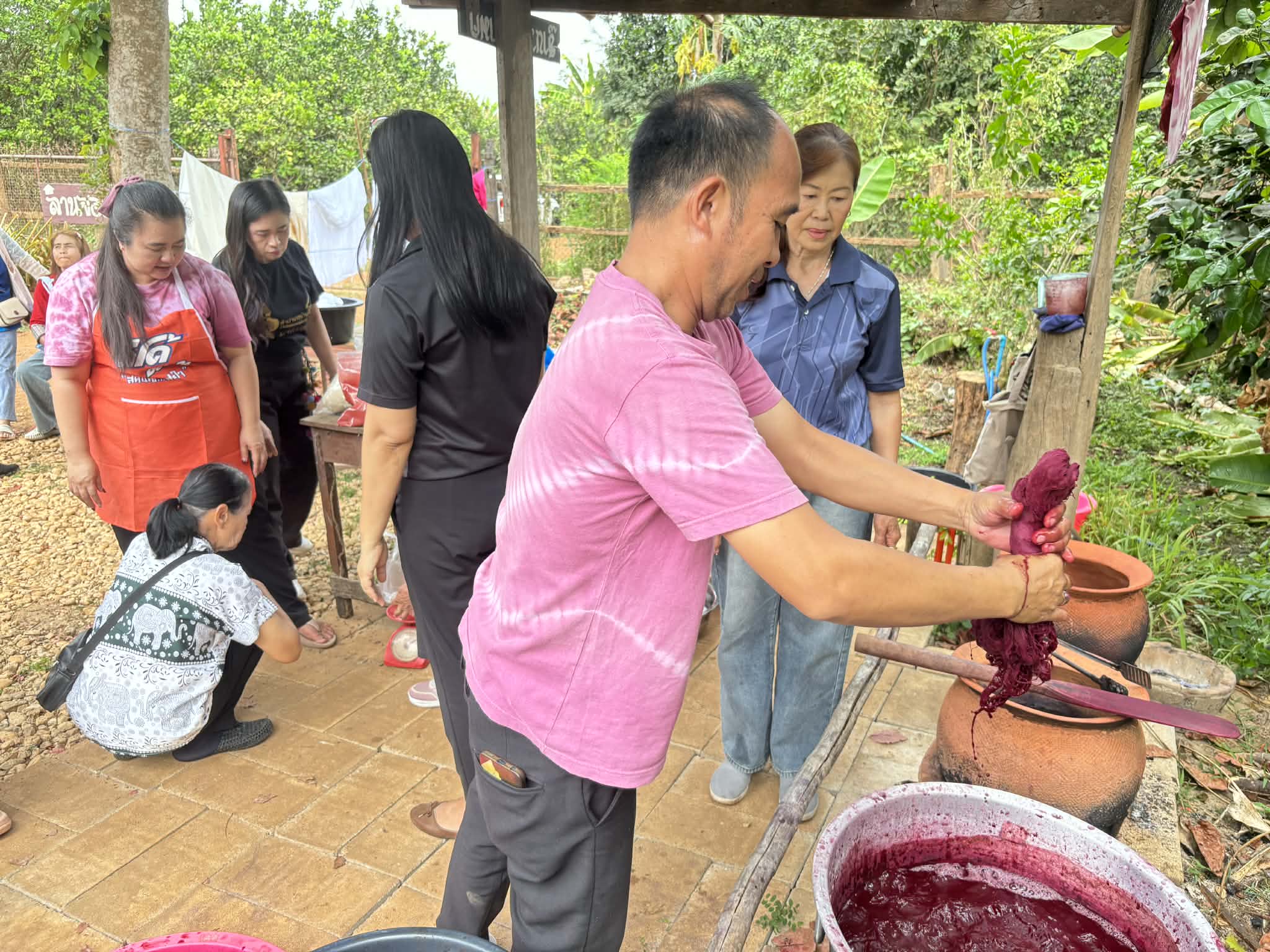 5. การทำผ้าย้อมครั่ง การฟื้นฟูและพัฒนาเทคนิคการย้อมสีธรรมชาติ ที่เป็นภูมิปัญญาดั้งเดิม ให้ตอบโจทย์ตลาดแฟชั่นร่วมสมัย
