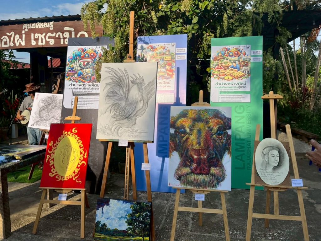 นิทรรศการแสดงผลงานในครั้งนี้ เป็นการแสดงผลงานจากการอบรมเชิงปฏิบัติการ “ลำปางสร้างศิลป์จากอัตลักษณ์ท้องถิ่นสู่สากล” เมื่อวันที่ 22 – 23 กุมภาพันธ์ 2569 ประกอบด้วย ผลงานการสร้างสรรค์เซรามิกจากอัตลักษณ์ท้องถิ่น โดยศิลปินจังหวัดลำปาง และจังหวัดภาคเหนือ ผลงานจิตรกรรม ถ่ายทอดเทคนิคเรื่องราวชุมชนลงบนผืนผ้าใบ โดยศิลปินจังหวัดลำปาง และศิลปินระดับชาติ ผลงานการเผาผลงานเซรามิกด้วยเทคนิครากุ ซึ่งเป็นเทคนิคการเผาไฟแรงสูงแบบฉับพลันที่สร้างเอฟเฟกต์เฉพาะตัว จากศิลปินผู้เชี่ยวชาญ ผลิตภัณฑ์คุกกี้อัตลักษณ์ลำปางไส้ส้มโอ แยมส้มโอ และเปลือกส้มโอเชื่อม และผลิตภัณฑ์ผ้าย้อมครั่ง ซึ่งถือว่าเป็นการส่งเสริมให้ชุมชนเป็นแหล่งท่องเที่ยวเชิงสร้างสรรค์ในอนาคต อย่างยั่งยืน