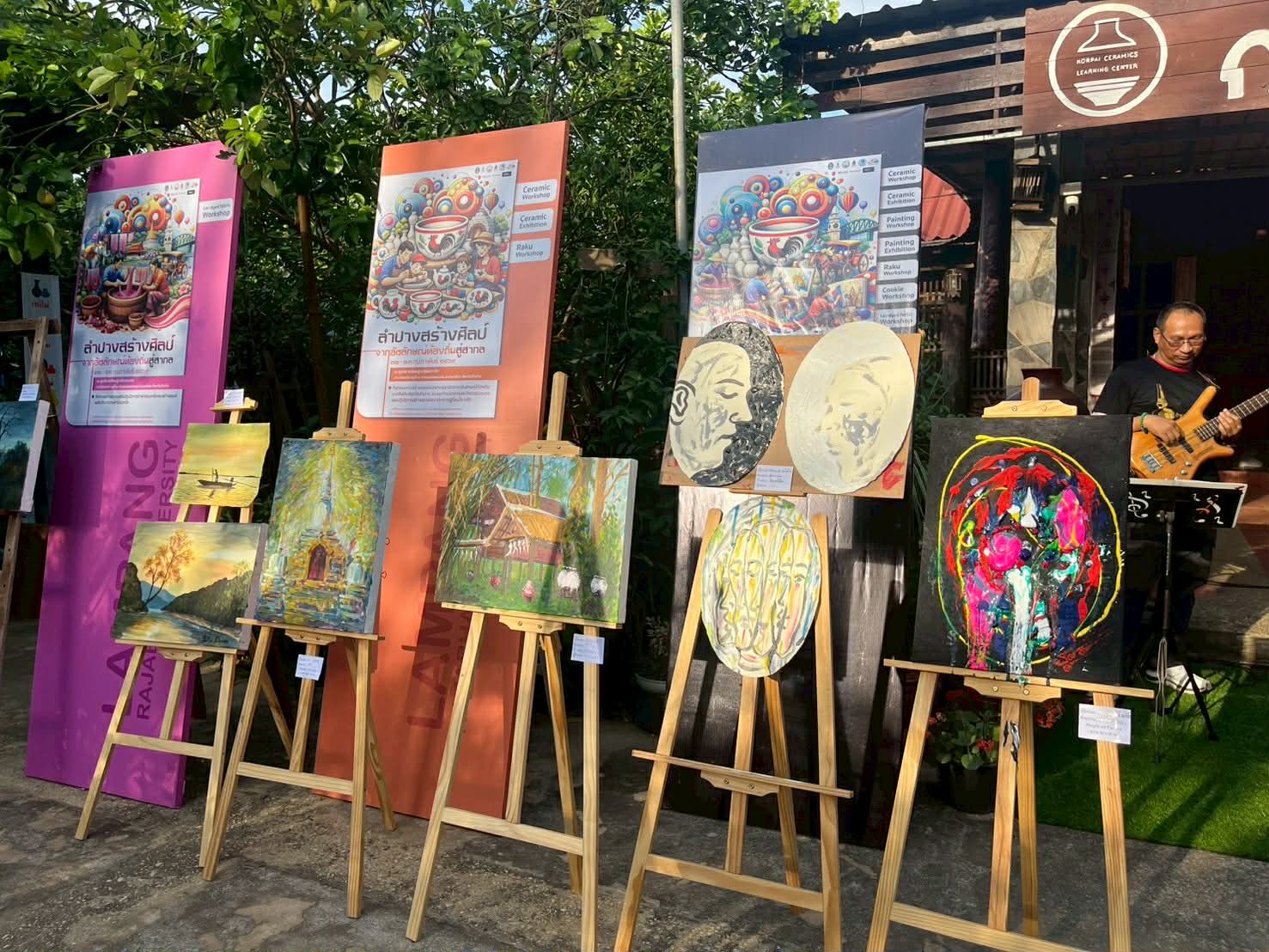 นิทรรศการแสดงผลงานในครั้งนี้ เป็นการแสดงผลงานจากการอบรมเชิงปฏิบัติการ “ลำปางสร้างศิลป์จากอัตลักษณ์ท้องถิ่นสู่สากล” เมื่อวันที่ 22 – 23 กุมภาพันธ์ 2569 ประกอบด้วย ผลงานการสร้างสรรค์เซรามิกจากอัตลักษณ์ท้องถิ่น โดยศิลปินจังหวัดลำปาง และจังหวัดภาคเหนือ ผลงานจิตรกรรม ถ่ายทอดเทคนิคเรื่องราวชุมชนลงบนผืนผ้าใบ โดยศิลปินจังหวัดลำปาง และศิลปินระดับชาติ ผลงานการเผาผลงานเซรามิกด้วยเทคนิครากุ ซึ่งเป็นเทคนิคการเผาไฟแรงสูงแบบฉับพลันที่สร้างเอฟเฟกต์เฉพาะตัว จากศิลปินผู้เชี่ยวชาญ ผลิตภัณฑ์คุกกี้อัตลักษณ์ลำปางไส้ส้มโอ แยมส้มโอ และเปลือกส้มโอเชื่อม และผลิตภัณฑ์ผ้าย้อมครั่ง ซึ่งถือว่าเป็นการส่งเสริมให้ชุมชนเป็นแหล่งท่องเที่ยวเชิงสร้างสรรค์ในอนาคต อย่างยั่งยืน