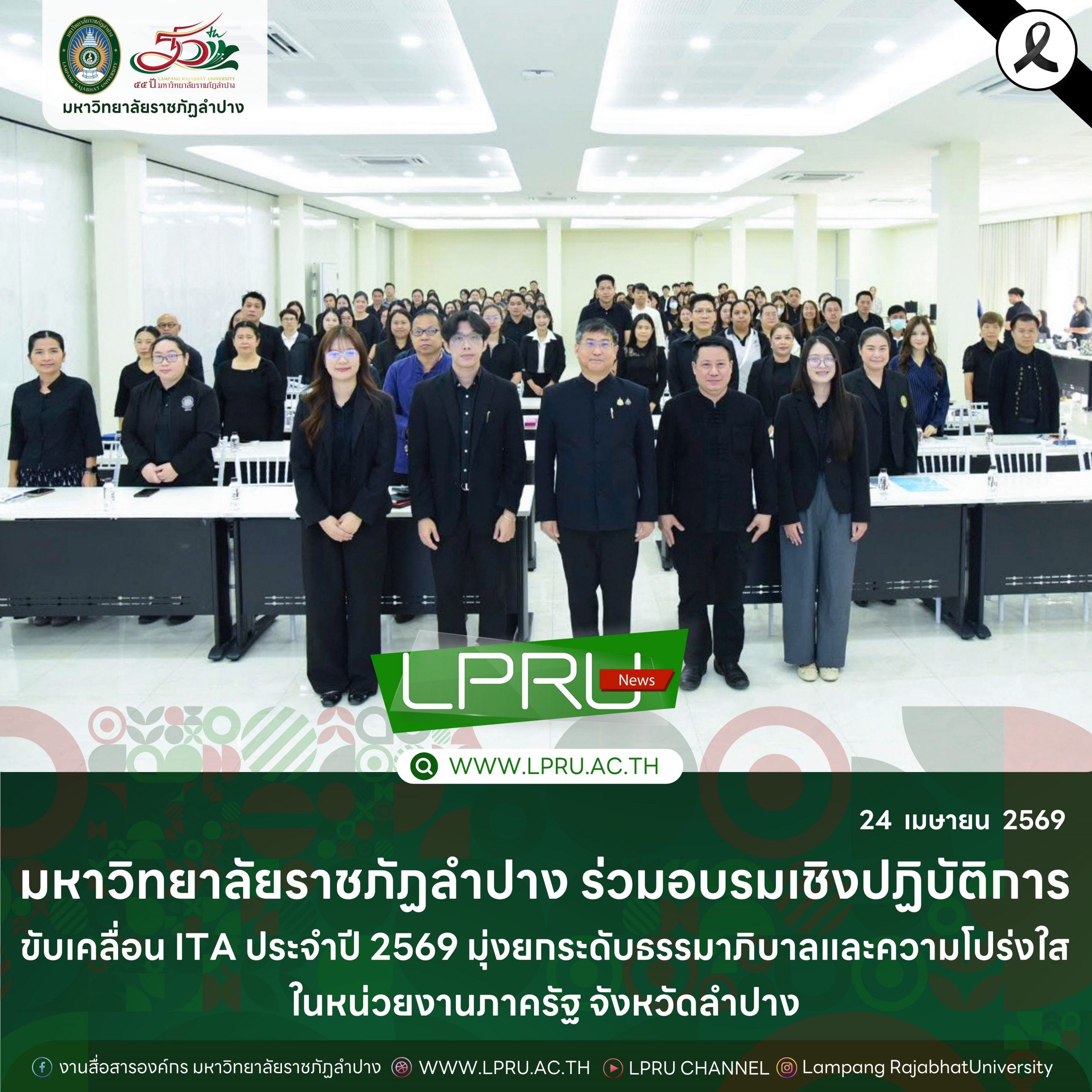มร.ลป. ร่วมอบรมเชิงปฏิบัติการขับเคลื่อน ITA ประจำปี 2569 มุ่งยกระดับธรรมาภิบาลและความโปร่งใสในหน่วยงานภาครัฐ จังหวัดลำปาง