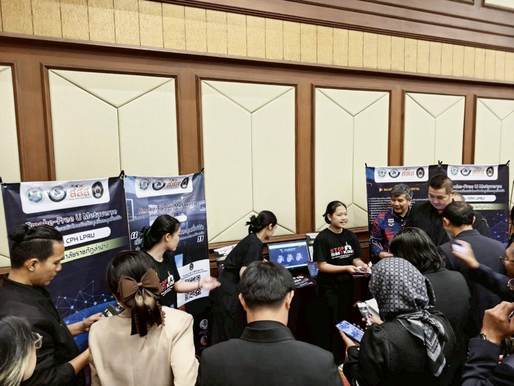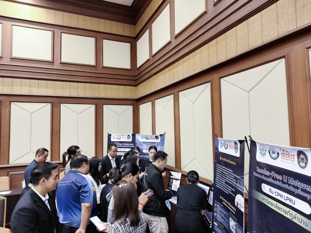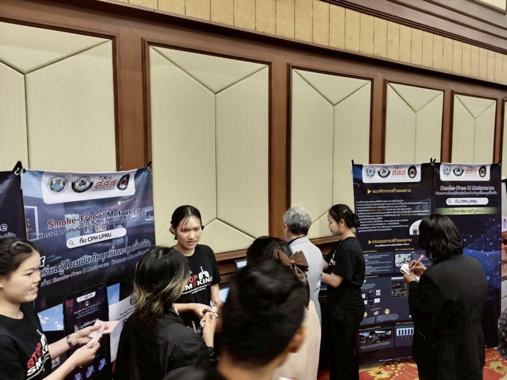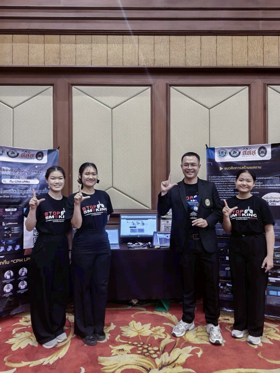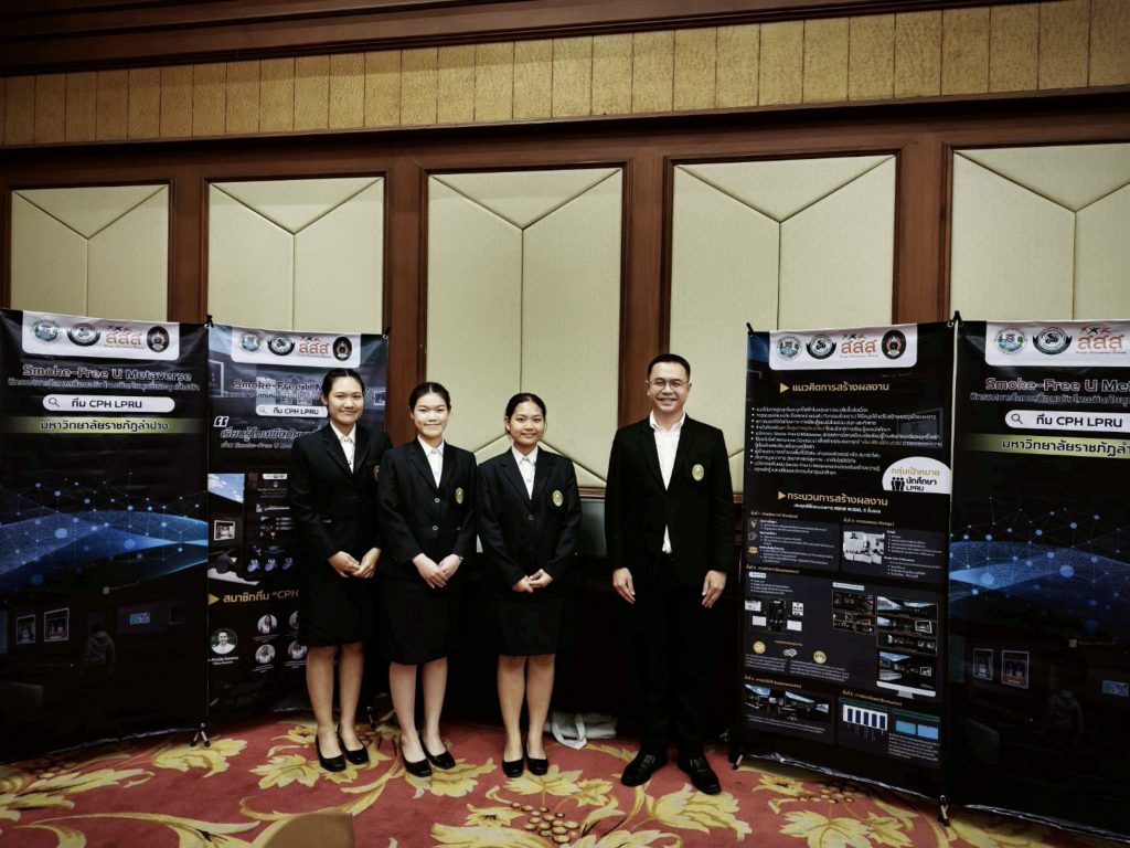 อ.ภัทรนัย ไชยพรม รองคณบดีคณะวิทยาศาสตร์ อาจารย์สังกัดสาขาวิชาสาธารณสุขชุมชน และที่ปรึกษาโครงการฯ ได้นำตัวแทนนักศึกษาทีม CPH LPRU ได้แก่ น.ส.ธวัลพร ปู่เสาร์ น.ส.บุษกร ศรีวิชัย และน.ส.สุภัชชา ก้อนจันต๊ะ นักศึกษาชั้นปีที่ 3 สาขาวิชาสาธารณสุขชุมชน คณะวิทยาศาสตร์ มหาวิทยาลัยราชภัฏลำปาง เข้ารับโล่ประกาศเกียรติคุณรางวัลระดับสาม ประเภทนวัตกรรมต้นแบบ (Prototype) จากผลงานเรื่อง “Smoke-Free U Metaverse: นิทรรศการโลกเสมือนจริงโทษพิษภัยบุหรี่และบุหรี่ไฟฟ้า” โดยมีสมาชิกที่ร่วมจัดทำโครงการประกอบด้วย น.ส. จันทกานต์ เงินอนันต์บุญ น.ส.กัญญารัตน์ จริยา น.ส.พัชรินทร์ จรัลพรเลิศสิน นักศึกษาชั้นปีที่ 3 น.ส.กรรณิการ์ วรรณคร และ น.ส.สุทธิลักษณ์ เต่าทอง นักศึกษาชั้นปีที่ 2 สาขาวิชาสาธารณสุขชุมชน คณะวิทยาศาสตร์ ได้รับเกียรติจาก ศ.เกียรติคุณ พญ.สมศรี เผ่าสวัสดิ์ นายกแพทยสภา เป็นประธานมอบรางวัล เมื่อวันที่ 23 กุมภาพันธ์ 2569 ภายในงานมหกรรมวิชาการฟ้าใส 2569 ณ อาคารเฉลิมพระบารมี 50 ปี แพทยสมาคมแห่งประเทศไทยฯ