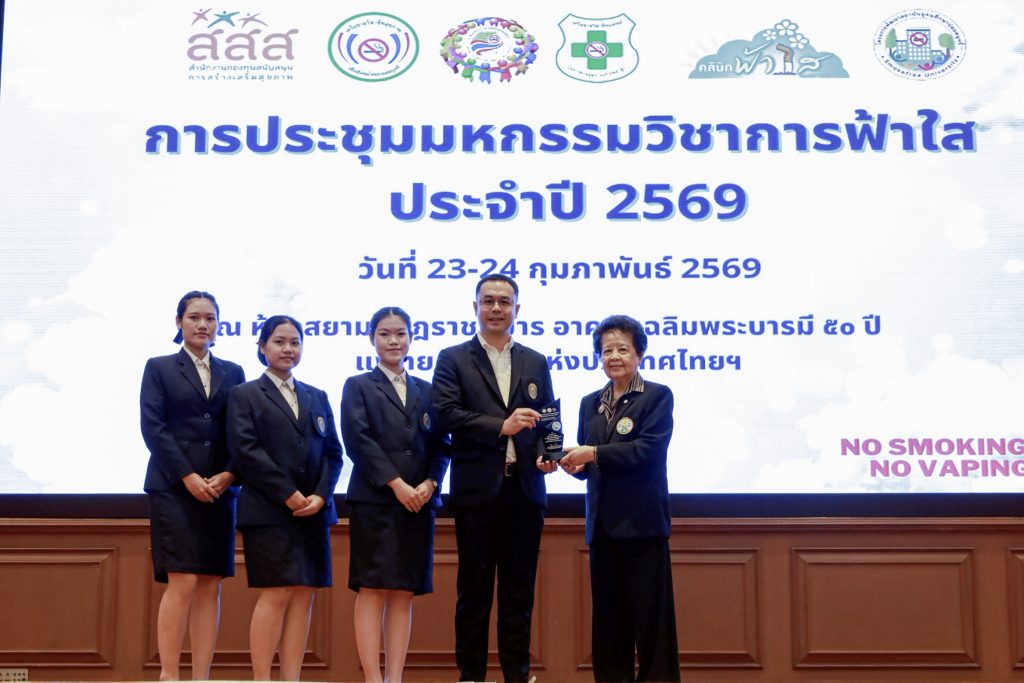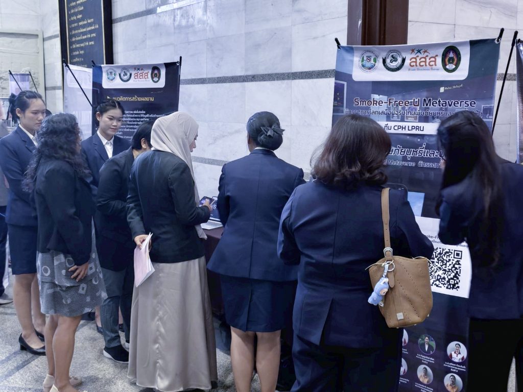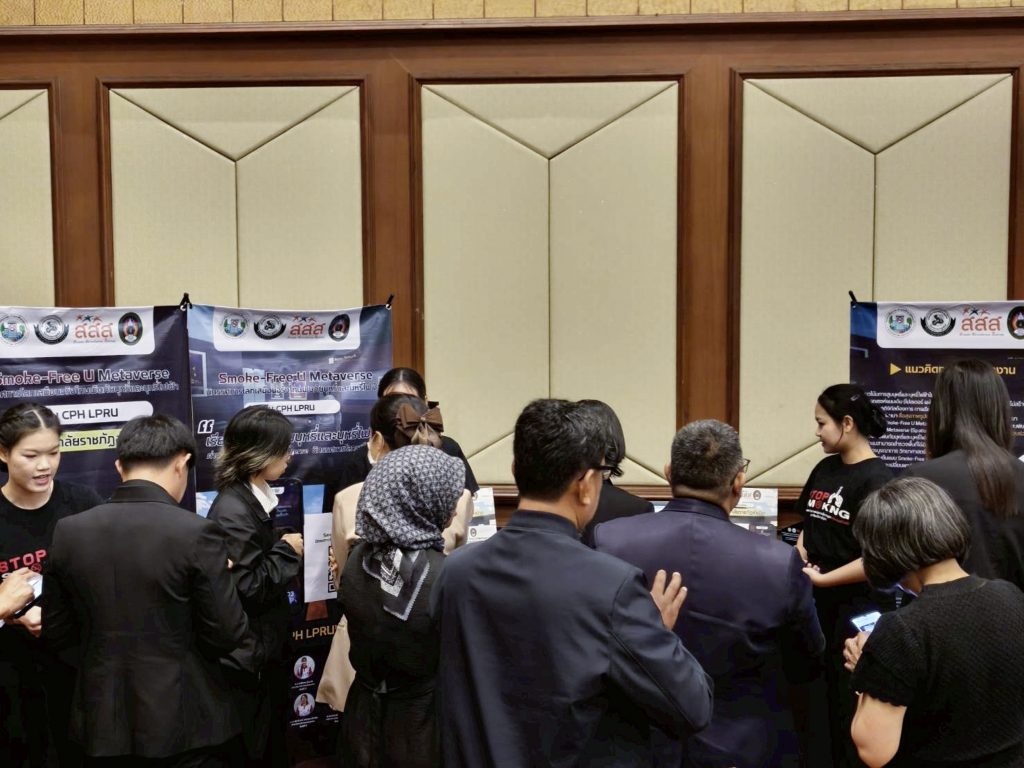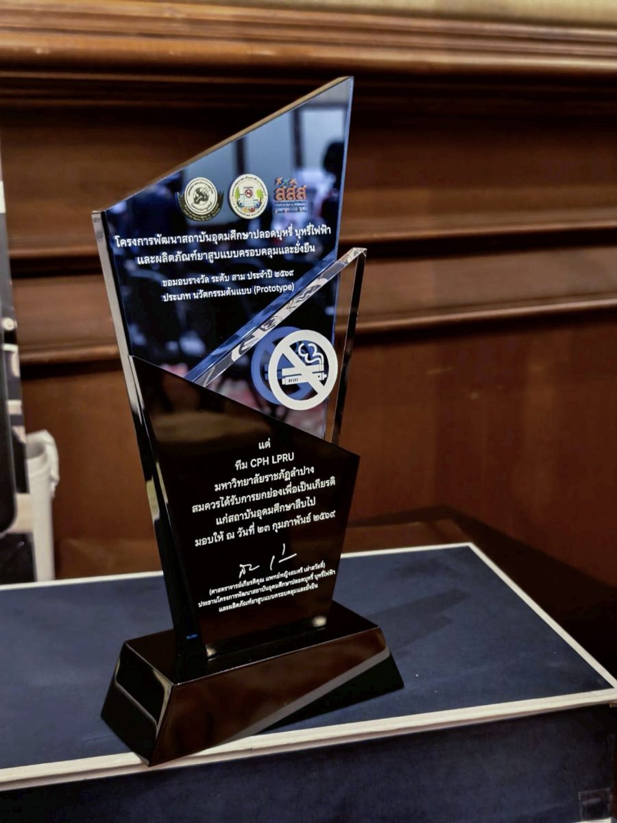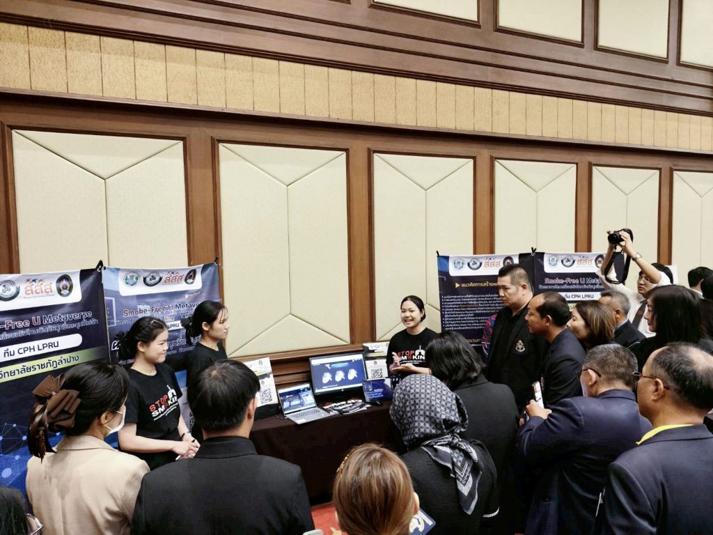 อ.ภัทรนัย ไชยพรม รองคณบดีคณะวิทยาศาสตร์ อาจารย์สังกัดสาขาวิชาสาธารณสุขชุมชน และที่ปรึกษาโครงการฯ ได้นำตัวแทนนักศึกษาทีม CPH LPRU ได้แก่ น.ส.ธวัลพร ปู่เสาร์ น.ส.บุษกร ศรีวิชัย และน.ส.สุภัชชา ก้อนจันต๊ะ นักศึกษาชั้นปีที่ 3 สาขาวิชาสาธารณสุขชุมชน คณะวิทยาศาสตร์ มหาวิทยาลัยราชภัฏลำปาง เข้ารับโล่ประกาศเกียรติคุณรางวัลระดับสาม ประเภทนวัตกรรมต้นแบบ (Prototype) จากผลงานเรื่อง “Smoke-Free U Metaverse: นิทรรศการโลกเสมือนจริงโทษพิษภัยบุหรี่และบุหรี่ไฟฟ้า” โดยมีสมาชิกที่ร่วมจัดทำโครงการประกอบด้วย น.ส. จันทกานต์ เงินอนันต์บุญ น.ส.กัญญารัตน์ จริยา น.ส.พัชรินทร์ จรัลพรเลิศสิน นักศึกษาชั้นปีที่ 3 น.ส.กรรณิการ์ วรรณคร และ น.ส.สุทธิลักษณ์ เต่าทอง นักศึกษาชั้นปีที่ 2 สาขาวิชาสาธารณสุขชุมชน คณะวิทยาศาสตร์ ได้รับเกียรติจาก ศ.เกียรติคุณ พญ.สมศรี เผ่าสวัสดิ์ นายกแพทยสภา เป็นประธานมอบรางวัล เมื่อวันที่ 23 กุมภาพันธ์ 2569 ภายในงานมหกรรมวิชาการฟ้าใส 2569 ณ อาคารเฉลิมพระบารมี 50 ปี แพทยสมาคมแห่งประเทศไทยฯ