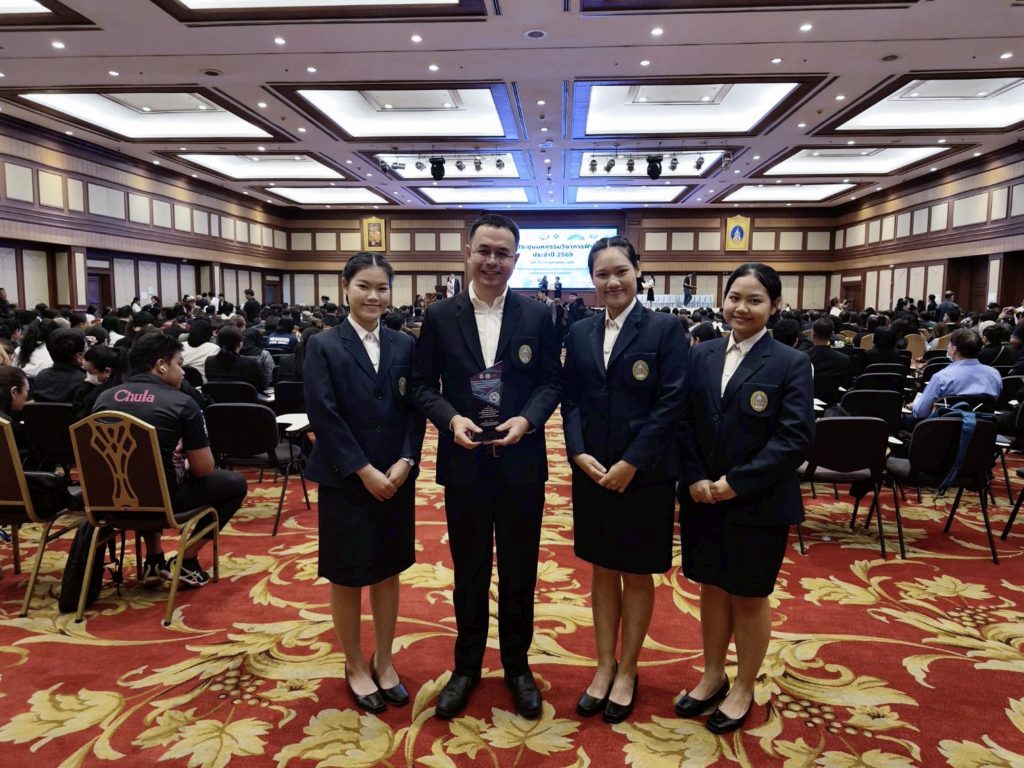 นศ. คณะวิทยาศาสตร์ มร.ลป. รับโล่ประกาศเกียรติคุณรางวัลระดับสาม ประเภทนวัตกรรมต้นแบบ (Prototype) จากผลงานเรื่อง “Smoke-Free U Metaverse : นิทรรศการโลกเสมือนจริงโทษพิษภัยบุหรี่และบุหรี่ไฟฟ้า”