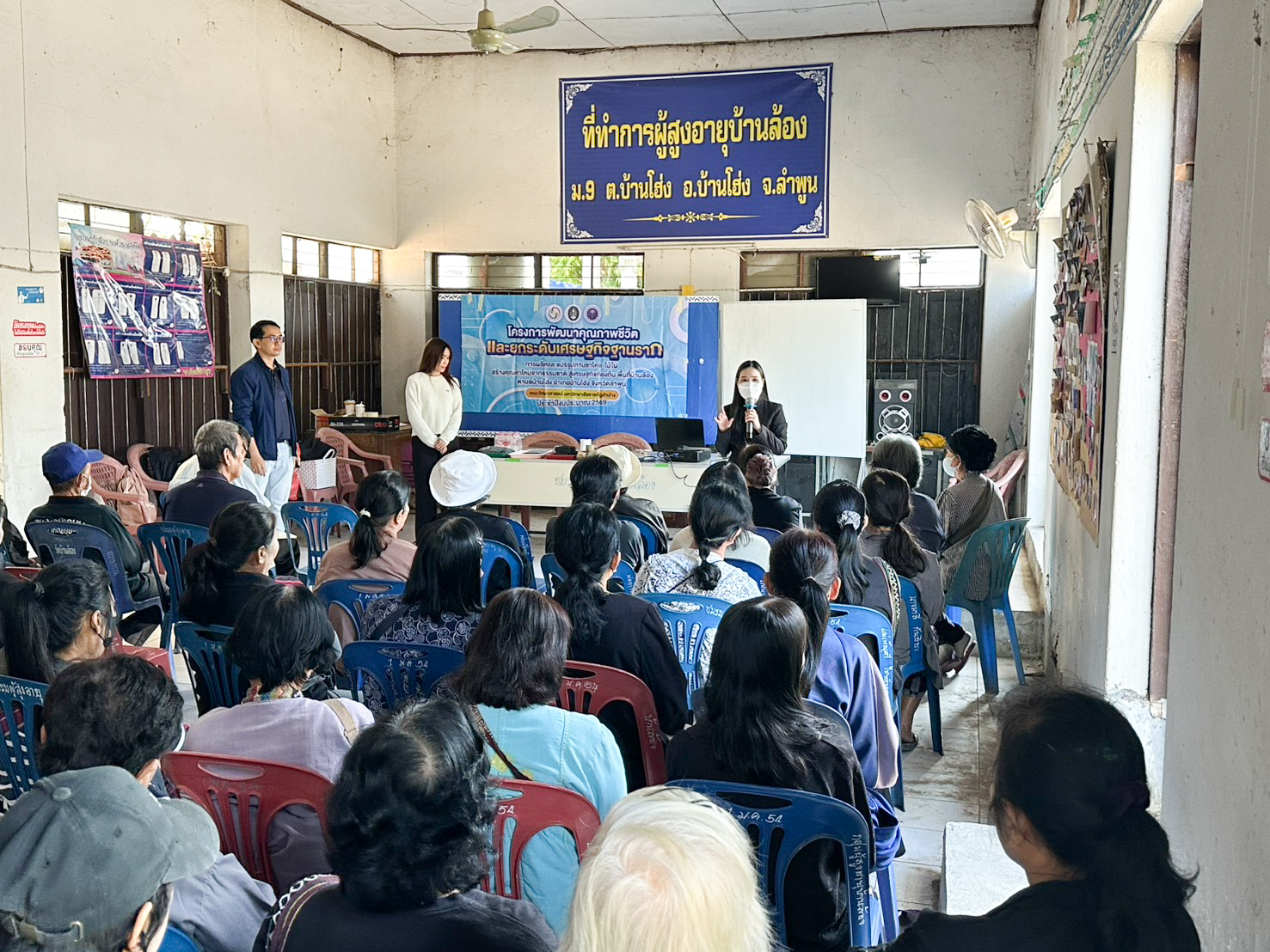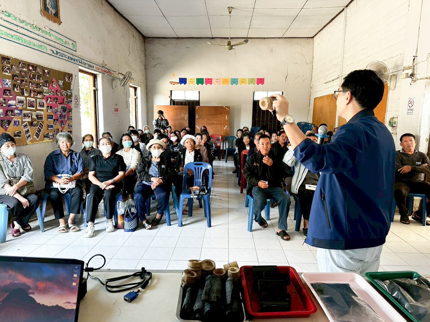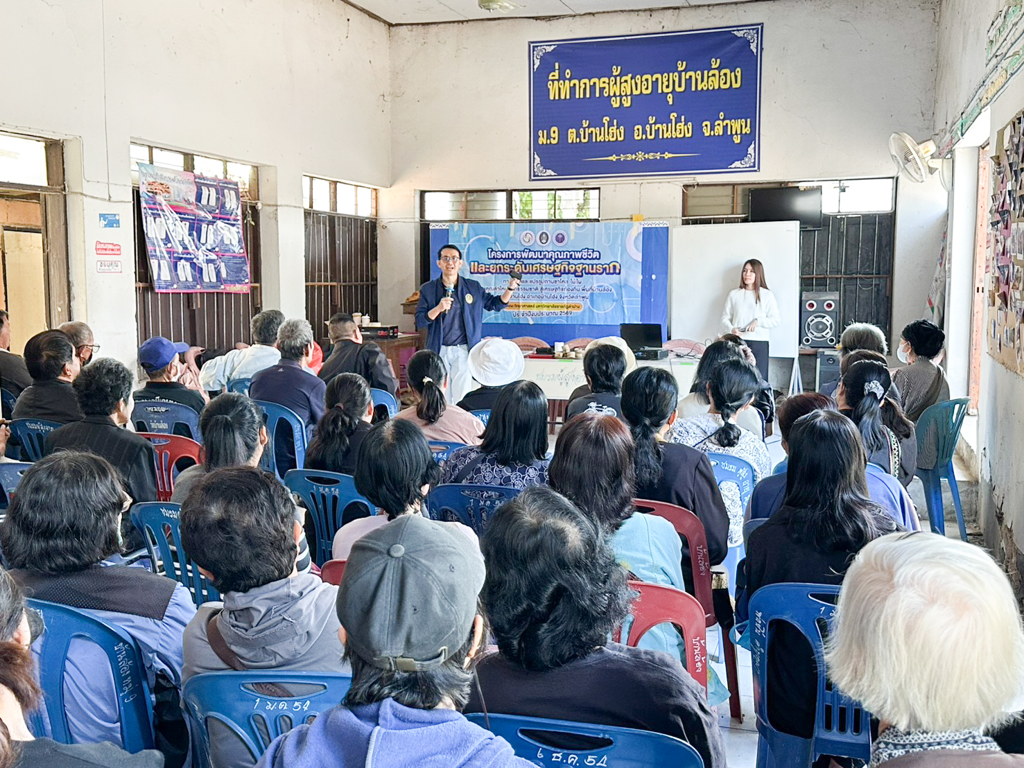 ผศ.ชัชชฎาภร พิศมร อาจารย์สังกัดสาขาวิชาสาธารณสุข คณะวิทยาศาสตร์ มหาวิทยาลัยราชภัฏลำปาง ผู้รับผิดชอบโครงการ จัดโครงการพัฒนาคุณภาพชีวิตและยกระดับเศรษฐกิจฐานราก : การผลิตและแปรรูปถ่านชาโคลไม้ไผ่สร้างคุณค่าใหม่จากธรรมชาติ สู่เศรษฐกิจท้องถิ่น พื้นที่บ้านล้อง ตําบลบ้านโฮ่ง อําเภอบ้านโฮ่ง จังหวัดลําพูน เมื่อวันที่ 21 พฤศจิกายน 2568 ณ ลานเอนกประสงค์บ้านล้อง ตำบลบ้านโฮ่ง อำเภอบ้านโฮ่ง จังหวัดลำพูน
