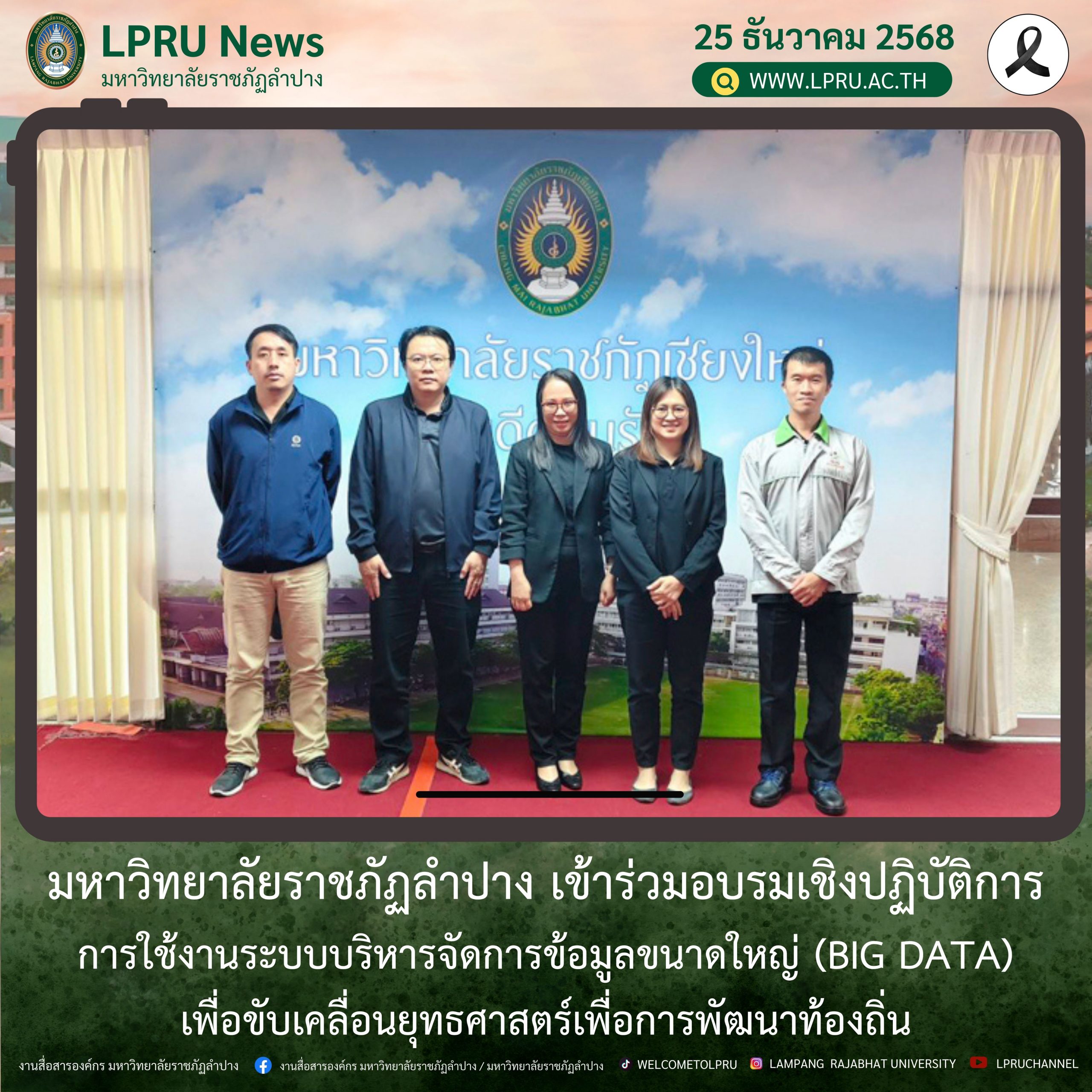 มหาวิทยาลัยราชภัฏลำปางเข้าร่วมอบรมเชิงปฏิบัติการการใช้งานระบบบริหารจัดการข้อมูลขนาดใหญ่ (Big Data)เพื่อขับเคลื่อนยุทธศาสตร์เพื่อการพัฒนาท้องถิ่น