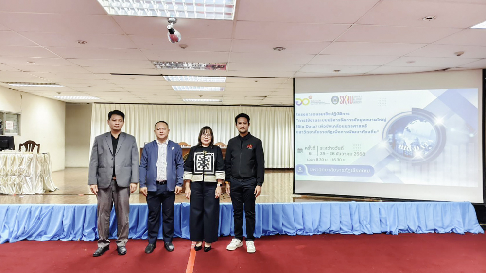 เมื่อวันที่ 25-26 ธันวาคม 2568 ผศ.นราธิป วงษ์ปัน รองผู้อำนวยการสำนักวิทยบริการและเทคโนโลยีสารสนเทศ พร้อมด้วย ผศ.อัญธิชา รุ่งแสง ผู้อำนวยการสำนักคลังหน่วยกิต นายวันเฉลิม จีบุญมี นักวิชาการคอมพิวเตอร์ชำนาญการ นางรังสินี วิงวอน นักวิเคราะห์นโยบายและแผน และนายประวิทย์ ย่านเจริญกิจ นักวิชาการคอมพิวเตอร์ เข้าร่วมอบรมเชิงปฏิบัติการการใช้งานระบบบริหารจัดการข้อมูลขนาดใหญ่ (Big Data) เพื่อขับเคลื่อนยุทธศาสตร์มหาวิทยาลัยราชภัฏเพื่อการพัฒนาท้องถิ่น ครั้งที่ 6 ณ ห้องประชุมเอื้องคำ ชั้น 3 อาคาร 27 มหาวิทยาลัยราชภัฏเชียงใหม่ ในการนี้ รศ.ดร.ชาตรี มณีโกศล อธิการบดีมหาวิทยาลัยราชภัฏเชียงใหม่ ได้มอบหมายให้ ผศ.เกษรา ปัญญา รองอธิการบดี เป็นประธานในพิธีเปิด